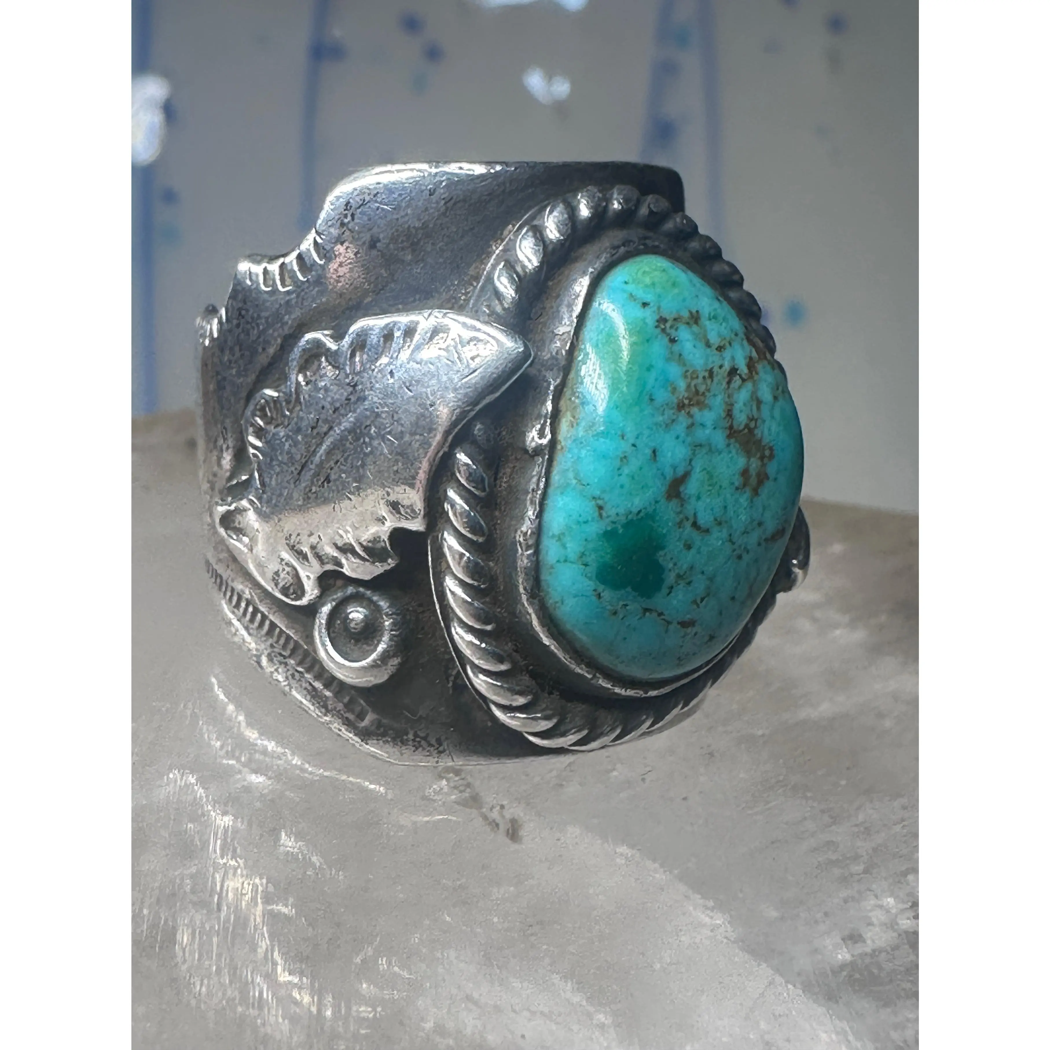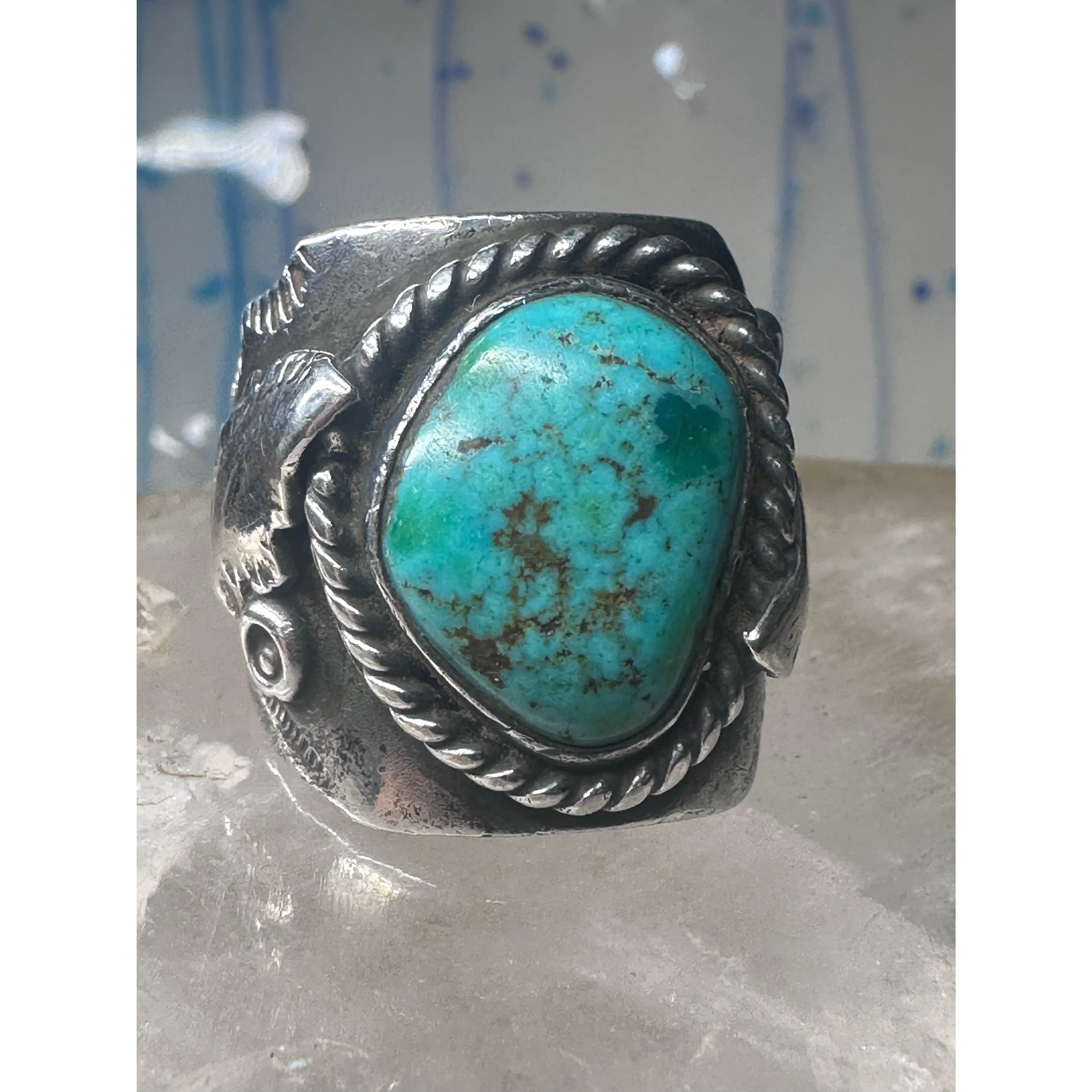 Turquoise ring long Navajo feathers band sterling silver women girls