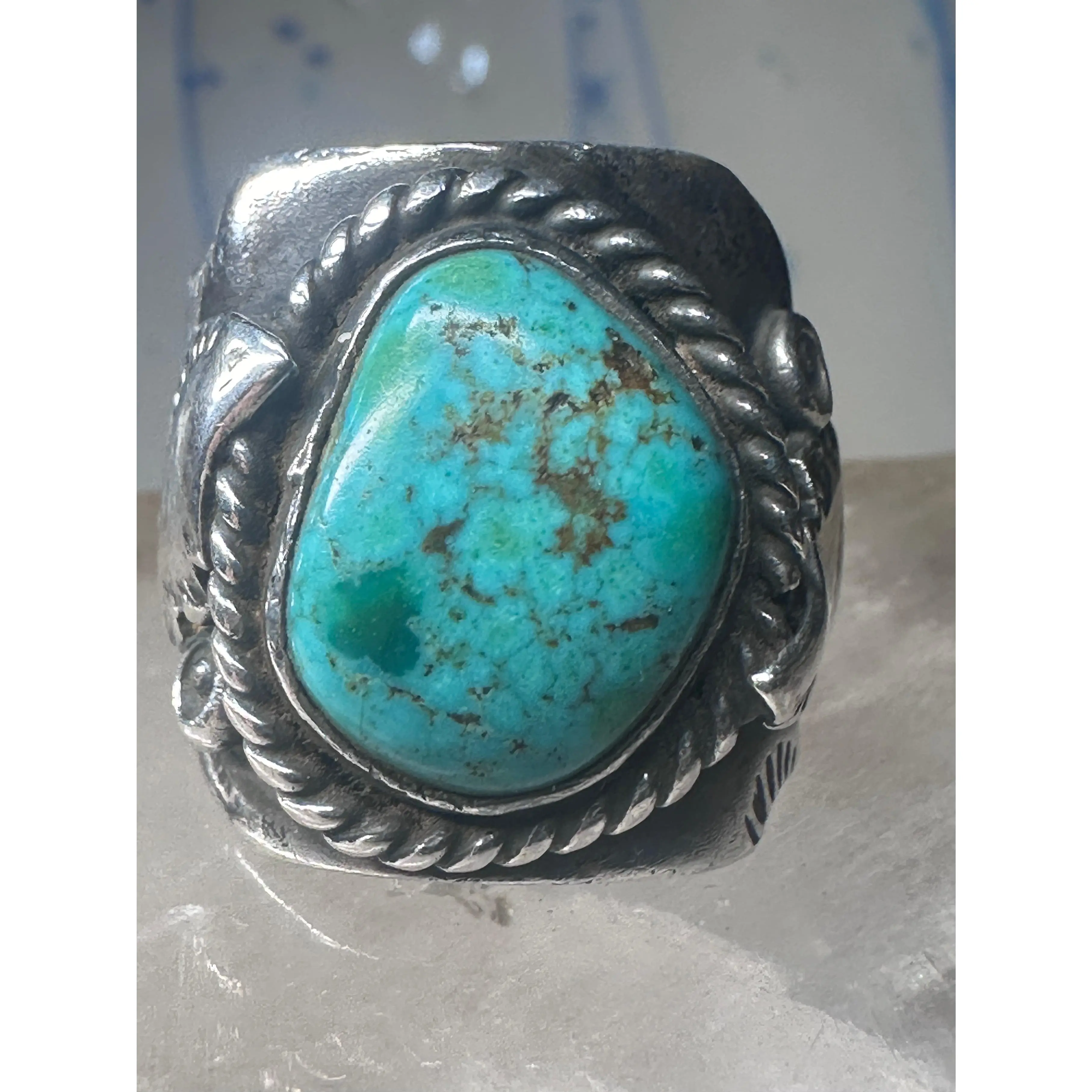 Navajo ring Turquoise cigar band leaves size 9 sterling silver women men
