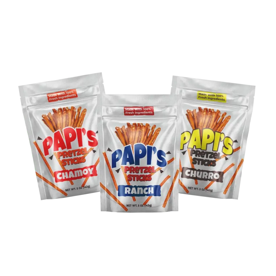 Explore the ultimate snacking adventure with Papi’s Pretzels Variety Pack! Each pack contains a delightful mix of our most popular flavors—zesty Chamoy, sweet Churro, and bold Ranch. Whether you're craving something sweet, spicy, or savory, this variety pack has something to please every palate. Perfect for parties, family gatherings, or just keeping your snack drawer stocked with exciting options.