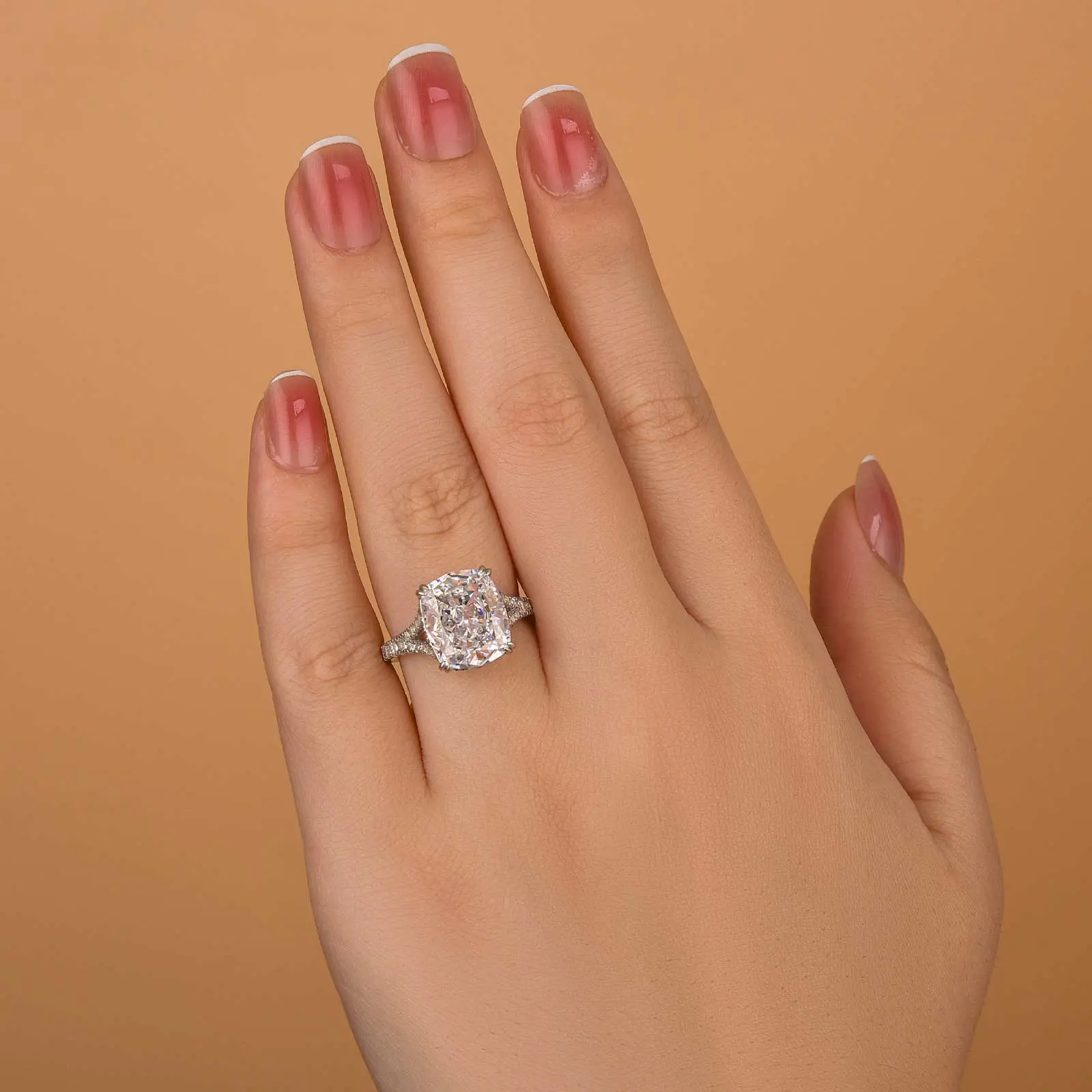 RODIFFY 5.0CT Excellent Split Shank Crushed Ice Cushion Cut Engagement Ring for Women,5A Cubic Zirconia 925 Sterling Silver Wedding Ring