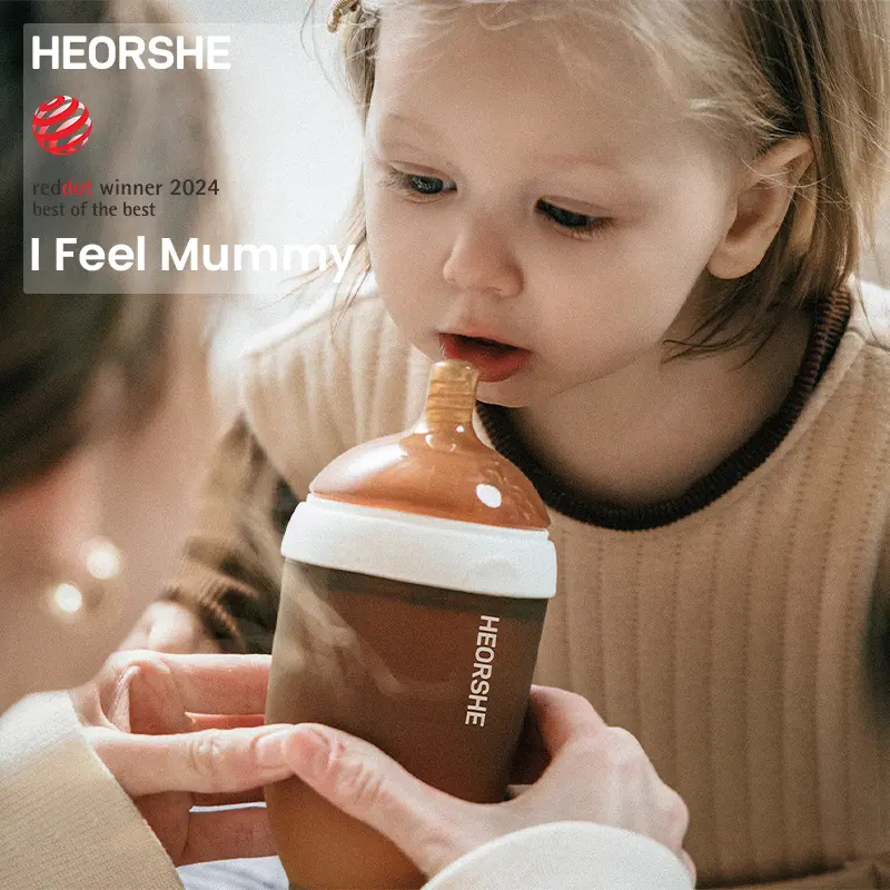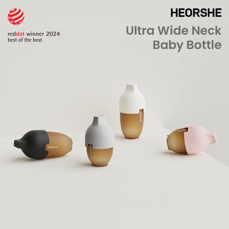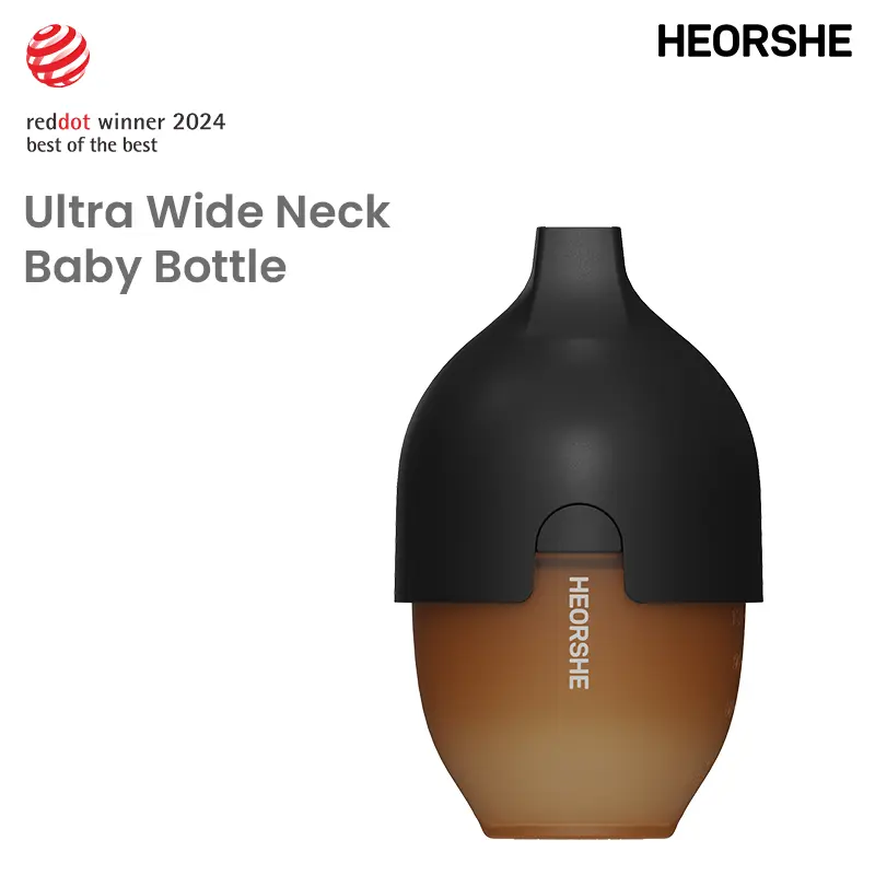 HEORSHE Reddot winner best of the best Innovative Anti-Choke Wide Neck Baby Feeding Bottle feeder, boottleBPA-Free Silicone Nipple for Natural Feel,Easy-Clean Design, Safe & Durable for Infants,6+ Months(240ml)