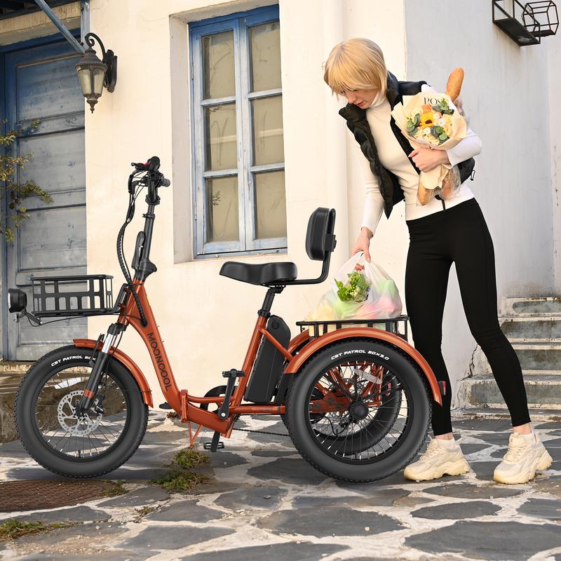 MOONCOOL Electric Tricycle for Adults, 750W 48V Folding Electric Trike Peak Power 1100W, 3 Wheels Electric Bicycle, Aluminum Frame Electric Tricycle with Large Basket and Removable Battery