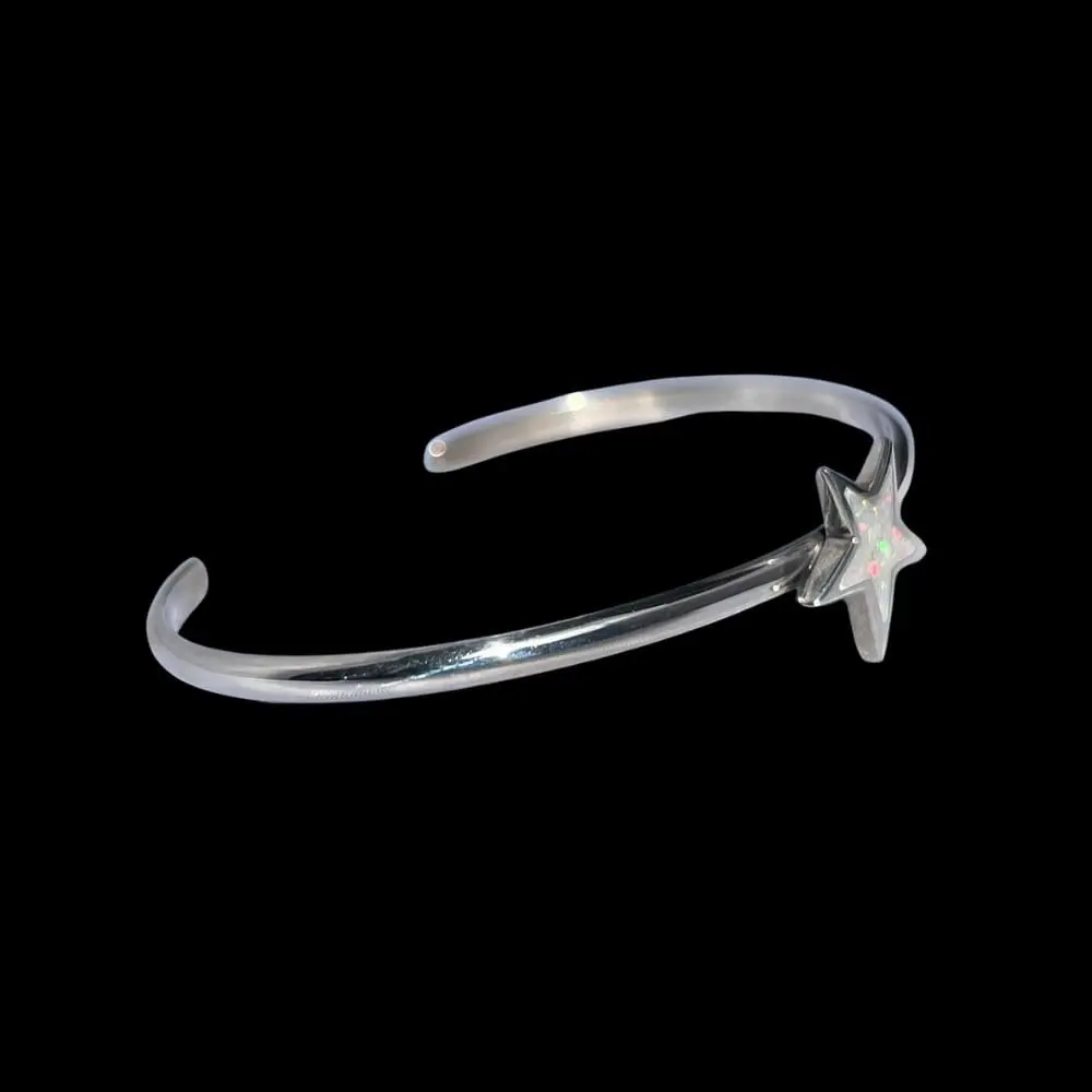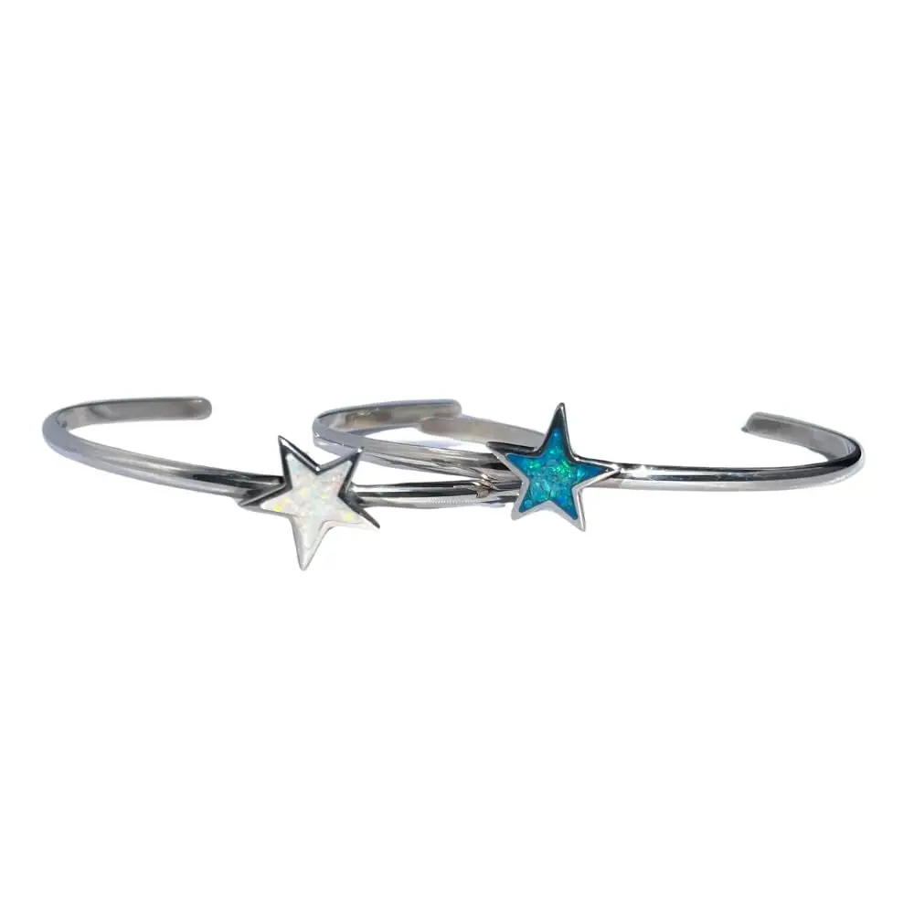 Sterling Silver Cuff Bracelet with Blue or White Opal Star