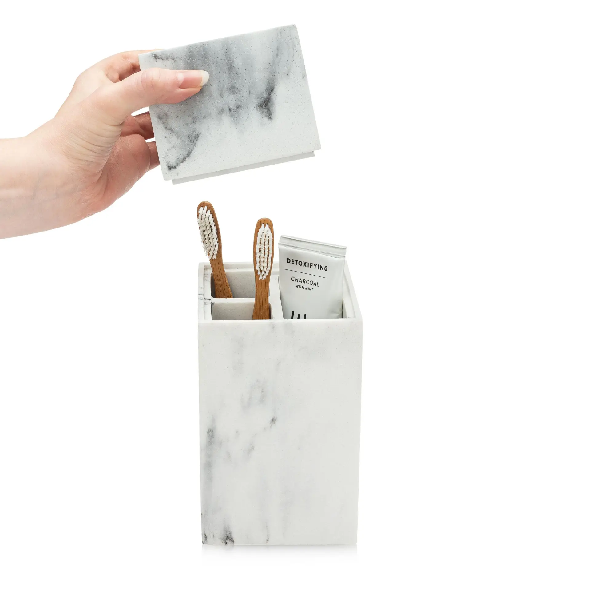 ·Design: This toothbrush holder is part of the Essentra Home Blanc collection. It has an elegant marble-like finish.