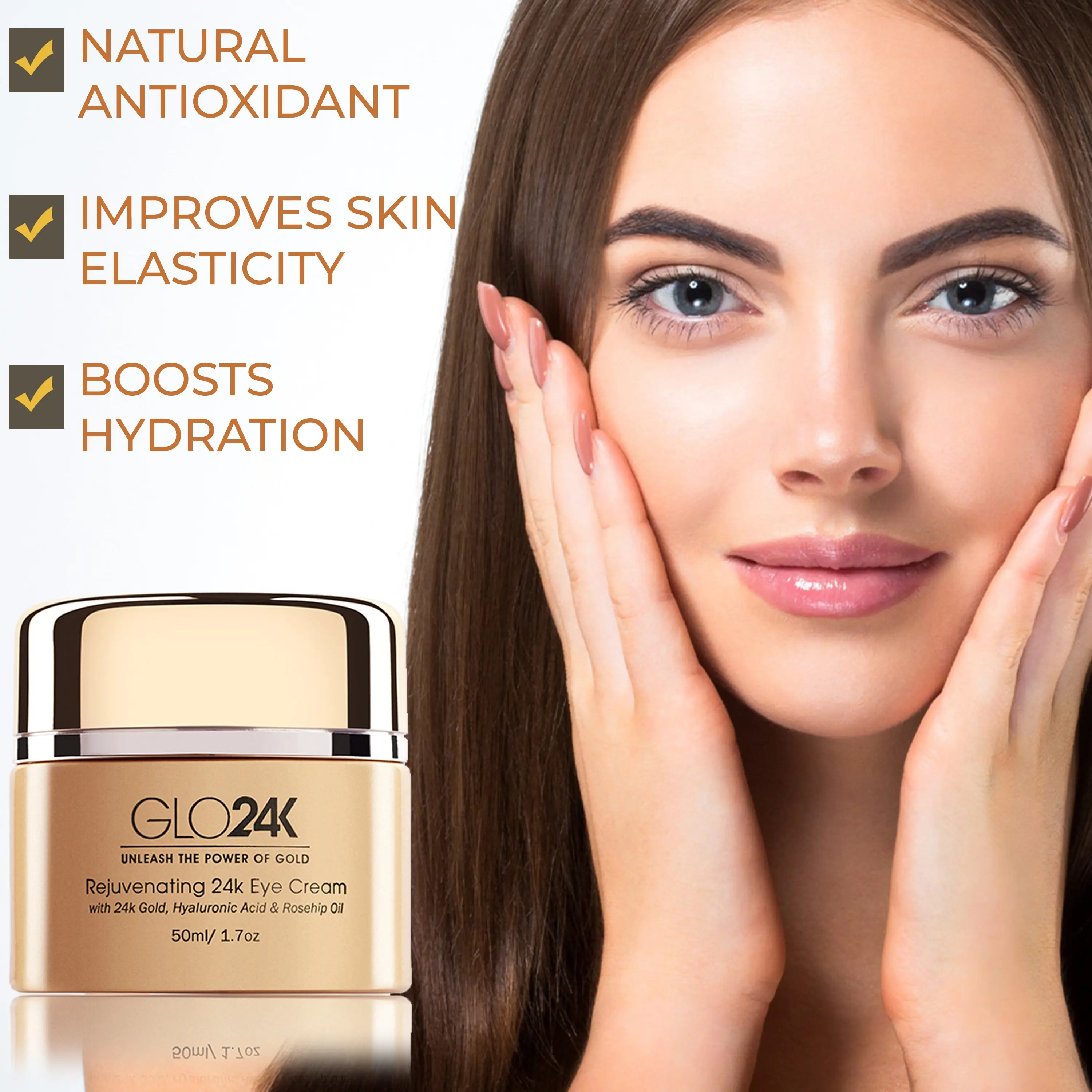 GLO24K Rejuvenating 24K Eye Cream with 24g Gold Hyaluronic Acid & Rosehip Oil for Hydrating Comfort Firms Texture Restores Glow