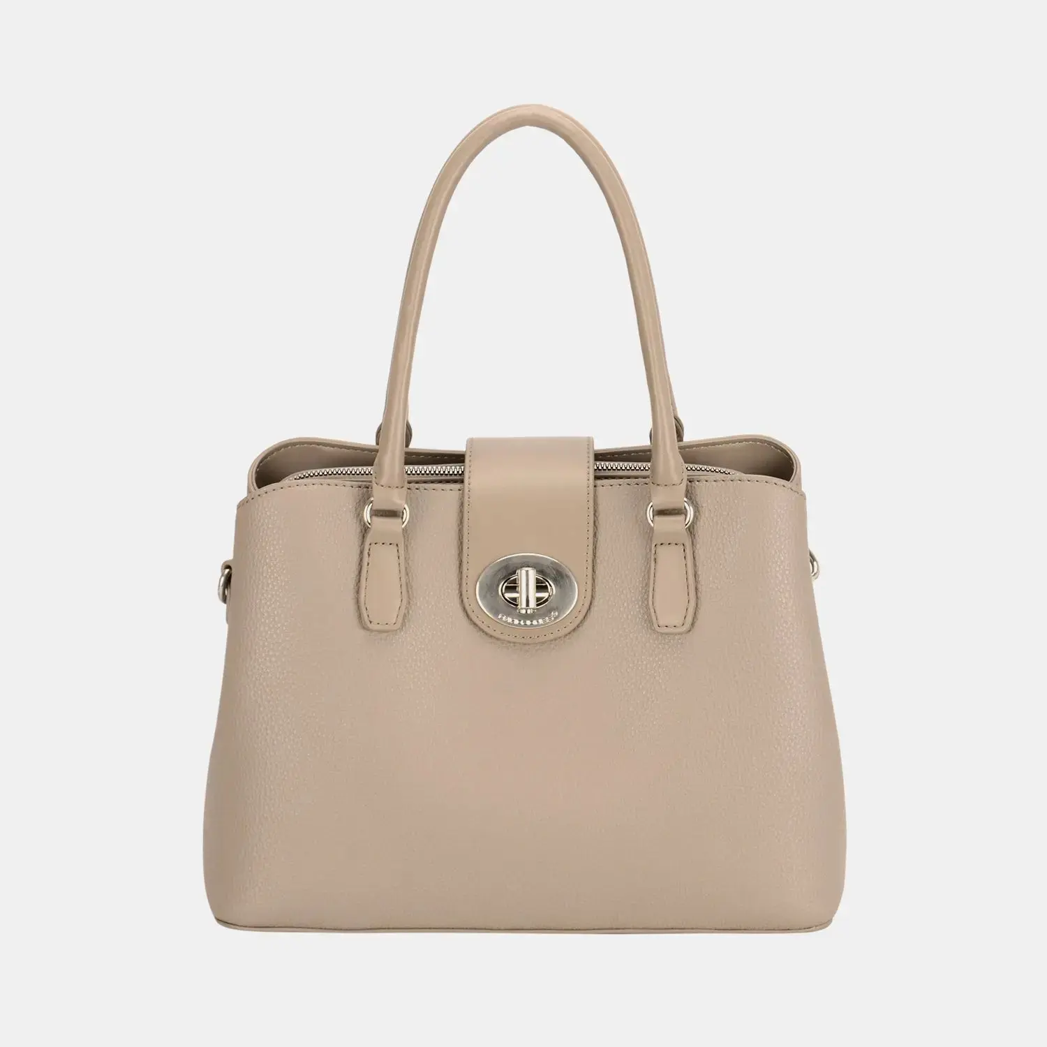 Whether for work or leisure, the David Jones PU Leather Twist-Lock Tote Bag is a stylish and practical choice for any occasion.