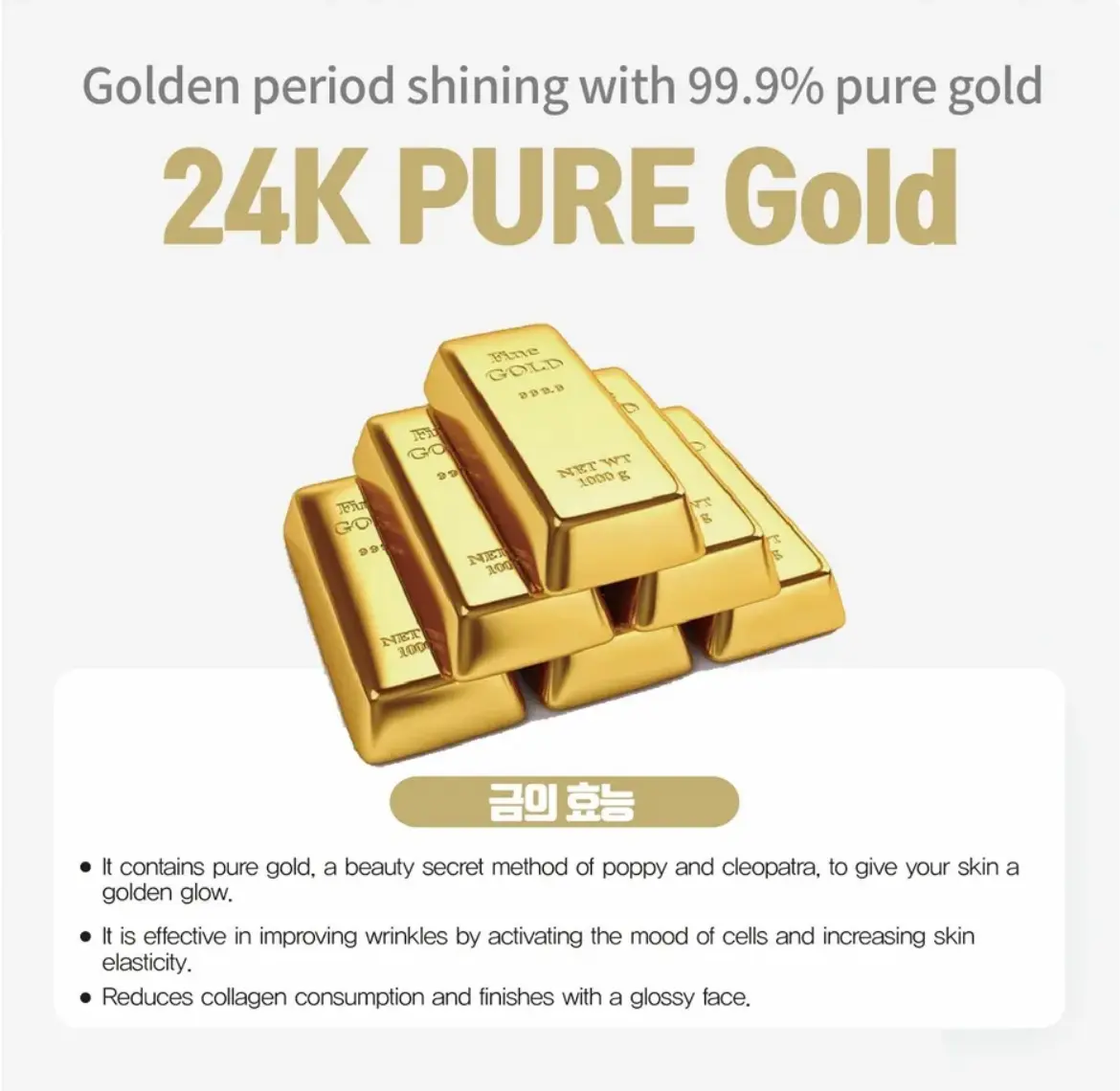 ·Anti-Wrinkle: Target fine lines and wrinkles with the rejuvenating properties of pure gold.
