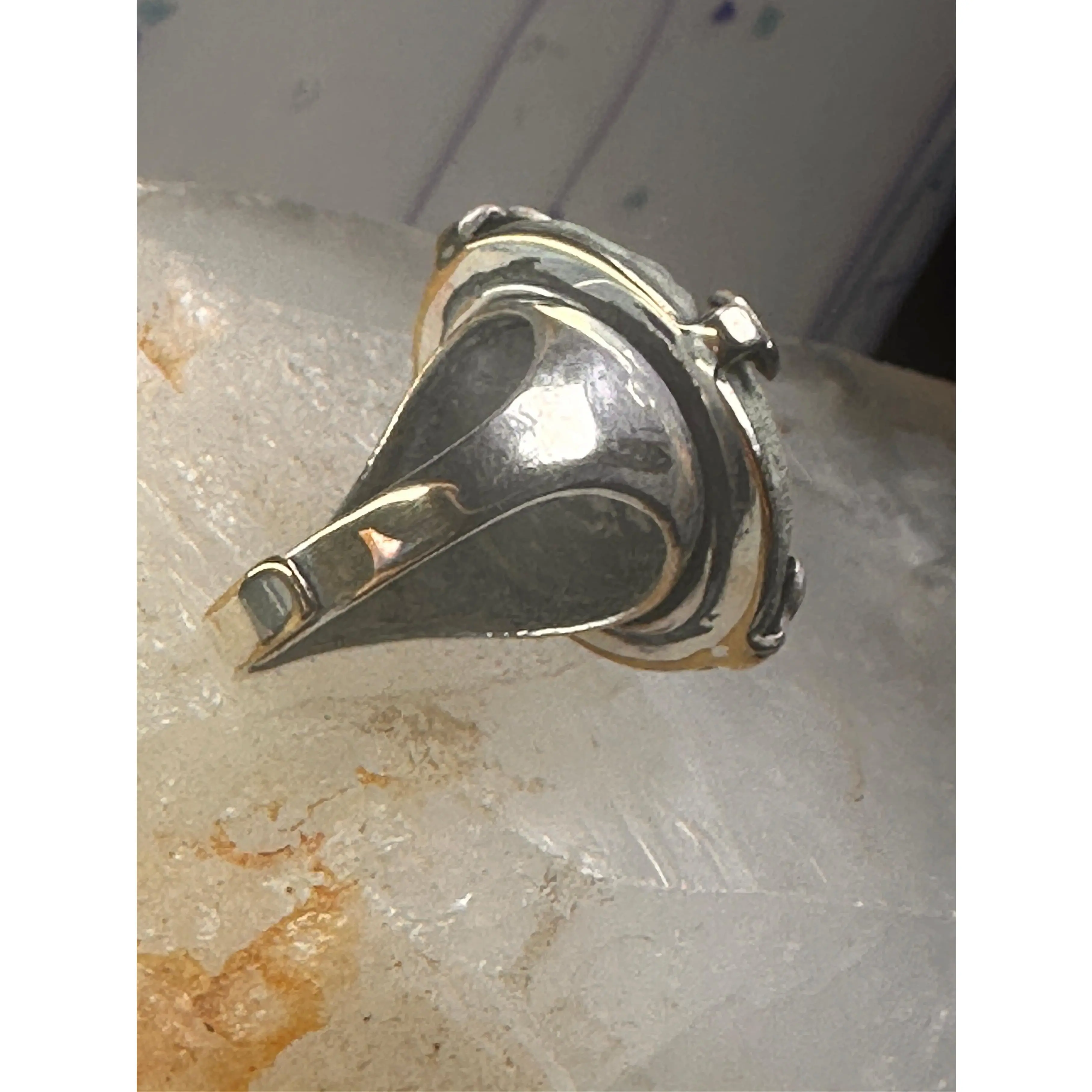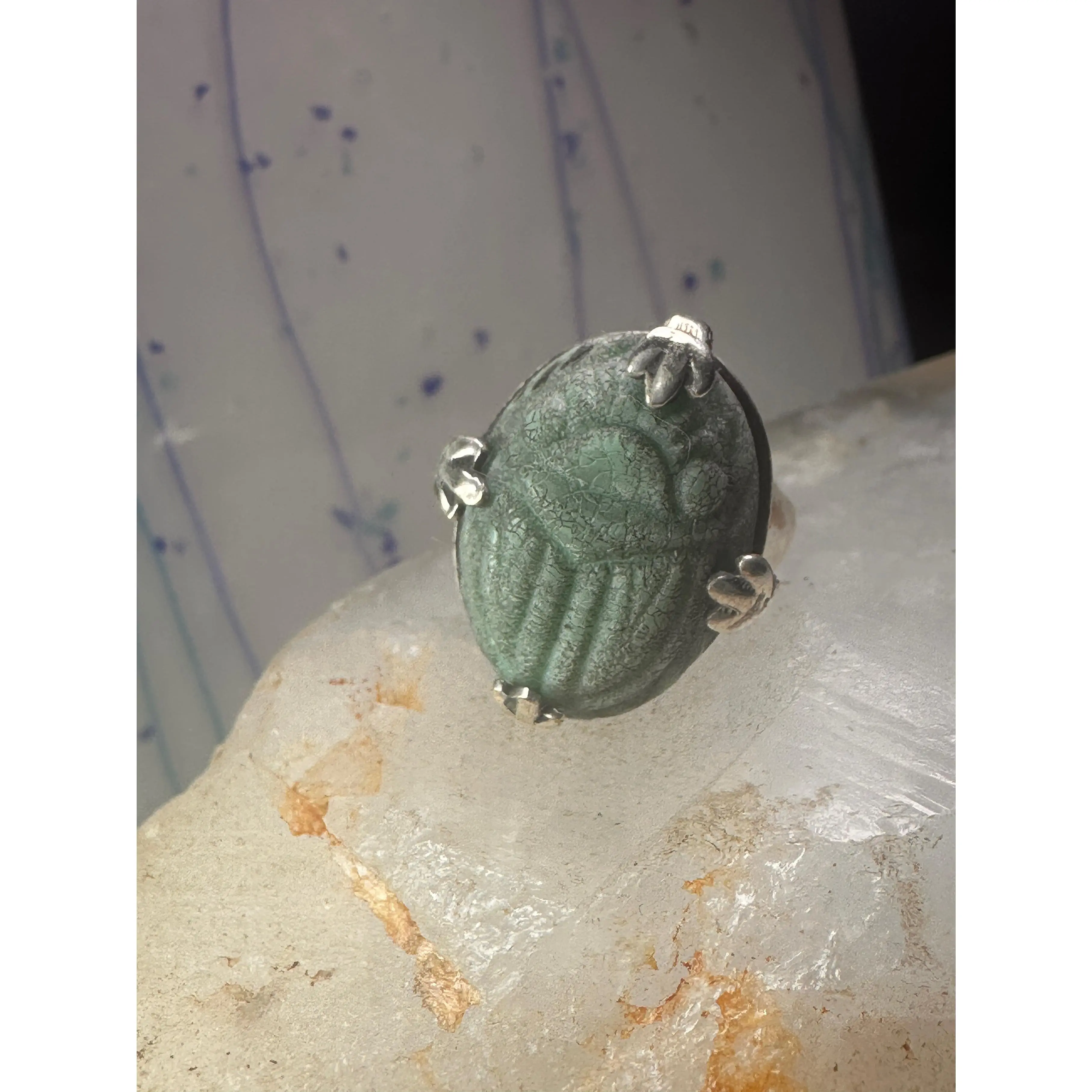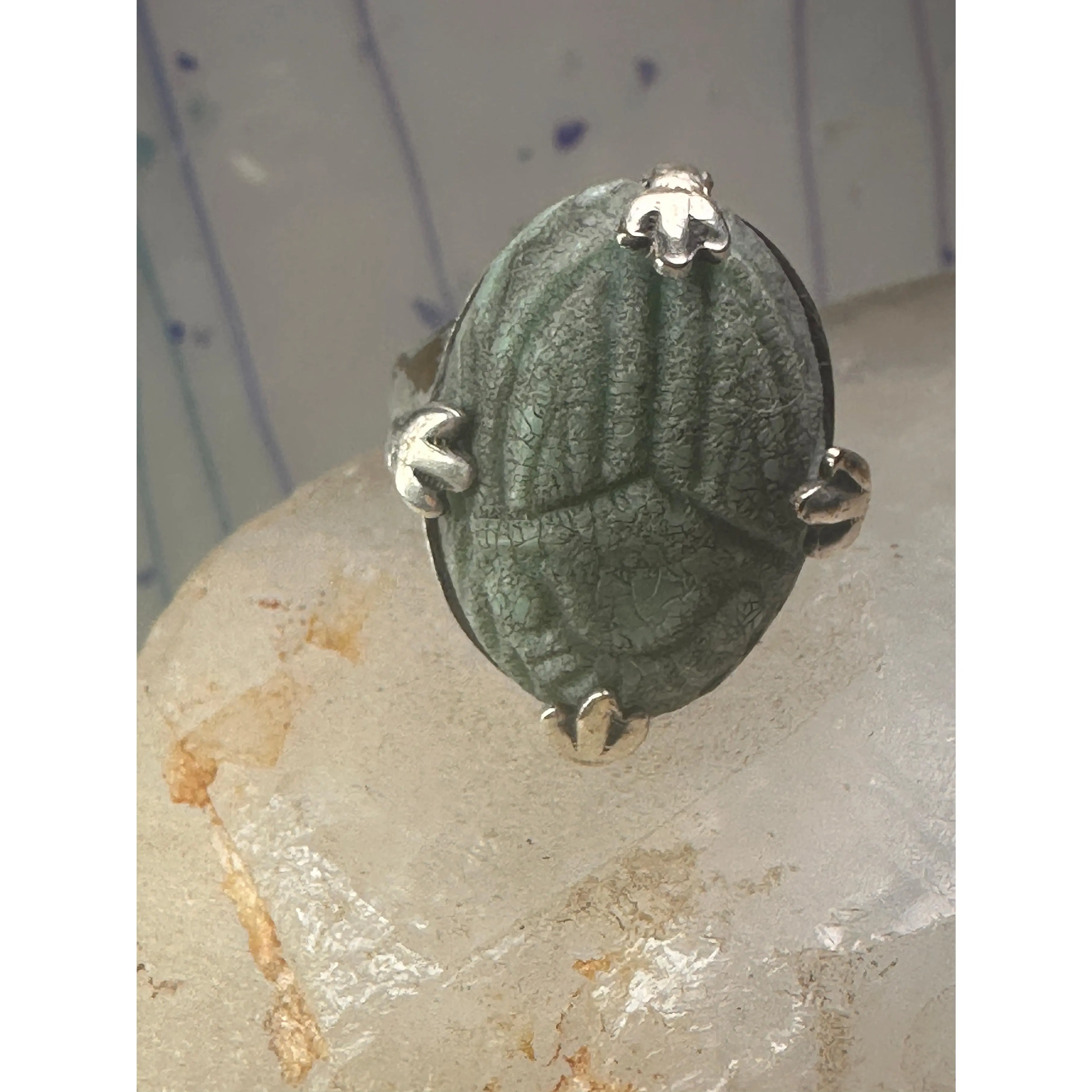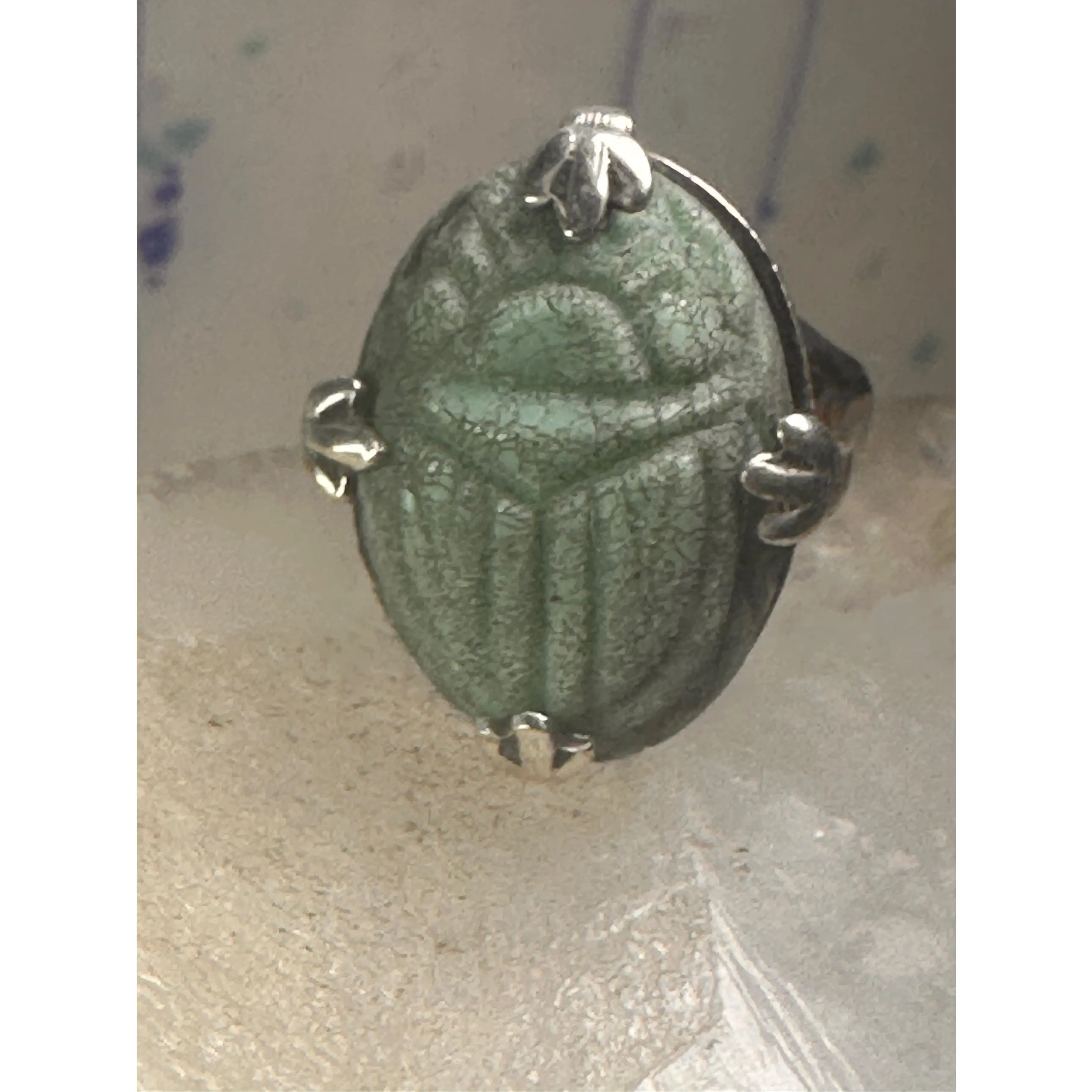 Scarab ring carved stone adjustable size 8.75 sterling silver women