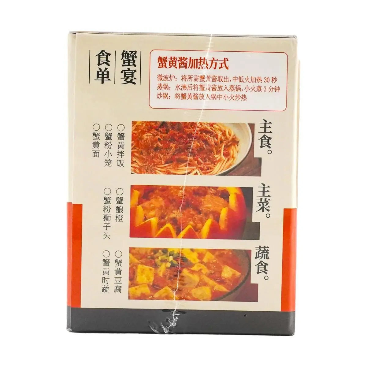 ·Can be used to create:Main Dishes: Crab roe mixed noodles or rice, crab roe fried rice, crab roe fried noodles.Hot Dishes: Stuffed crab oranges, crab roe meatballs, crab roe with seasonal vegetables.Soups: Crab roe tofu soup, steamed egg with crab roe, crab roe seafood congee.Pastries: Crab roe soup dumplings, crab roe dumplings, crab roe baguette.