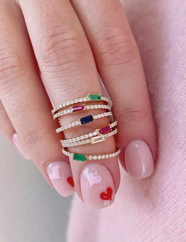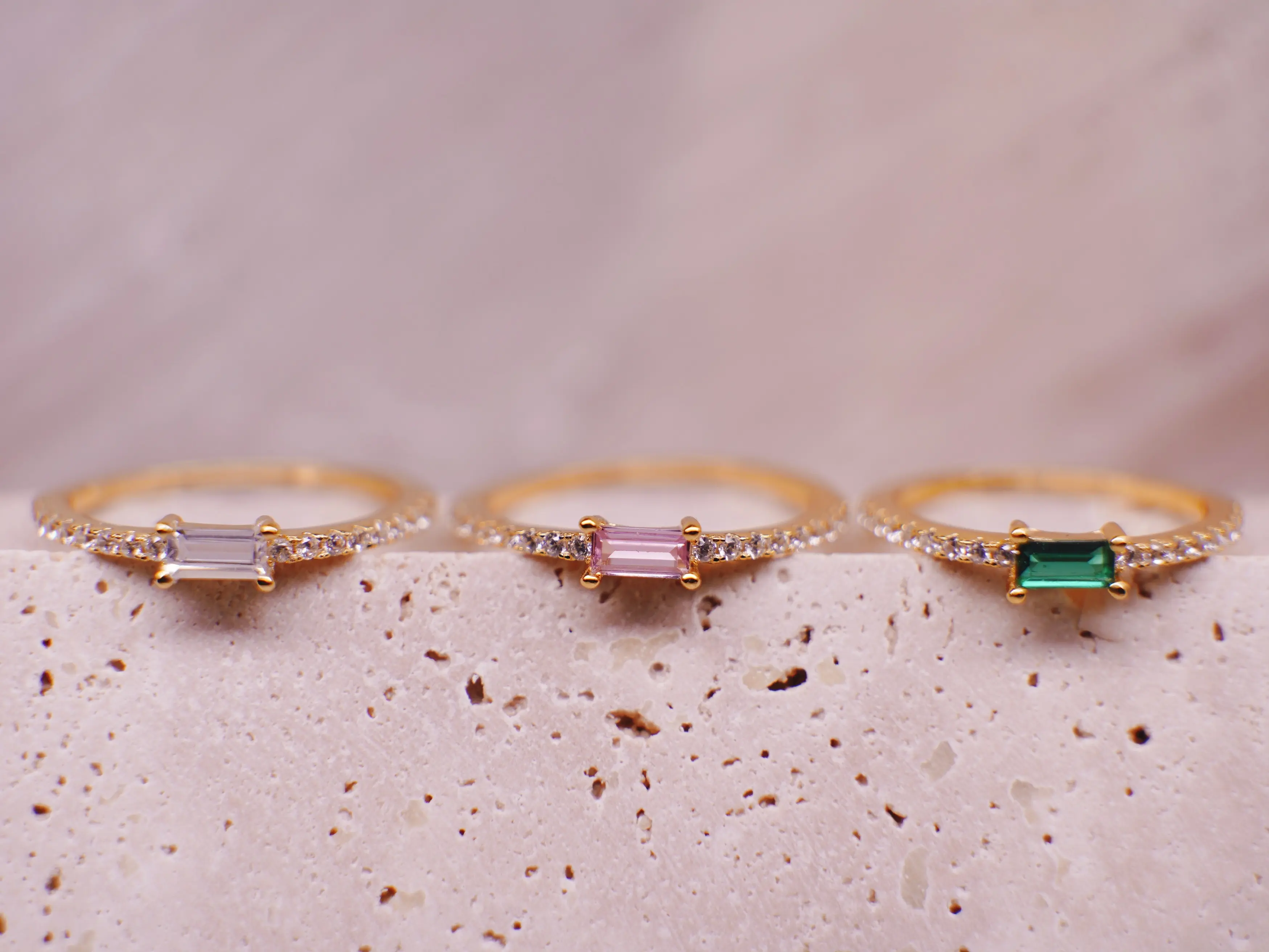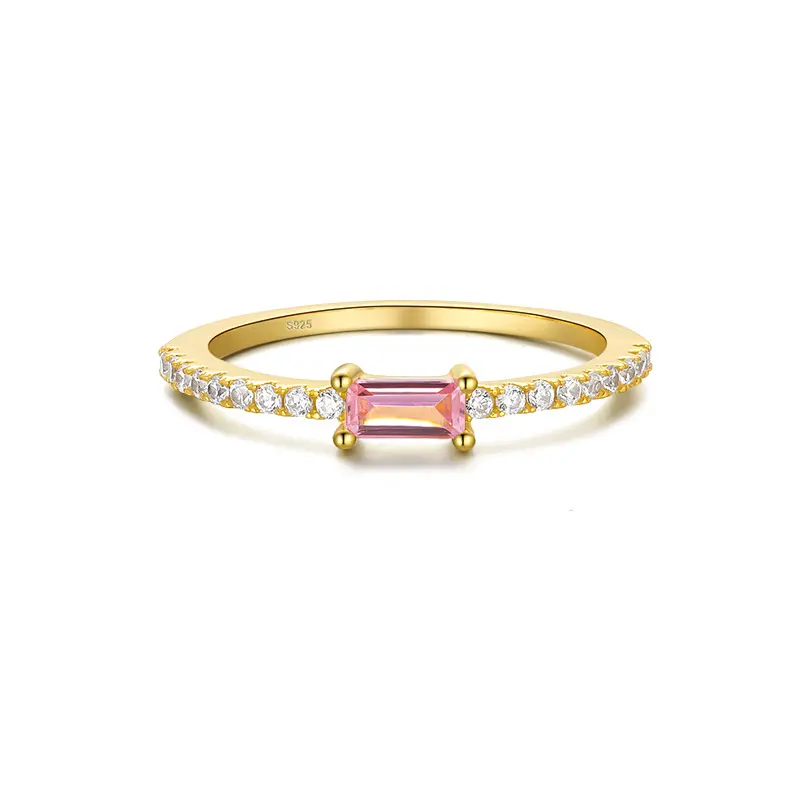 18K Gold Plated 925 Silver Baguette Stone Rings, (Barbie Pink)