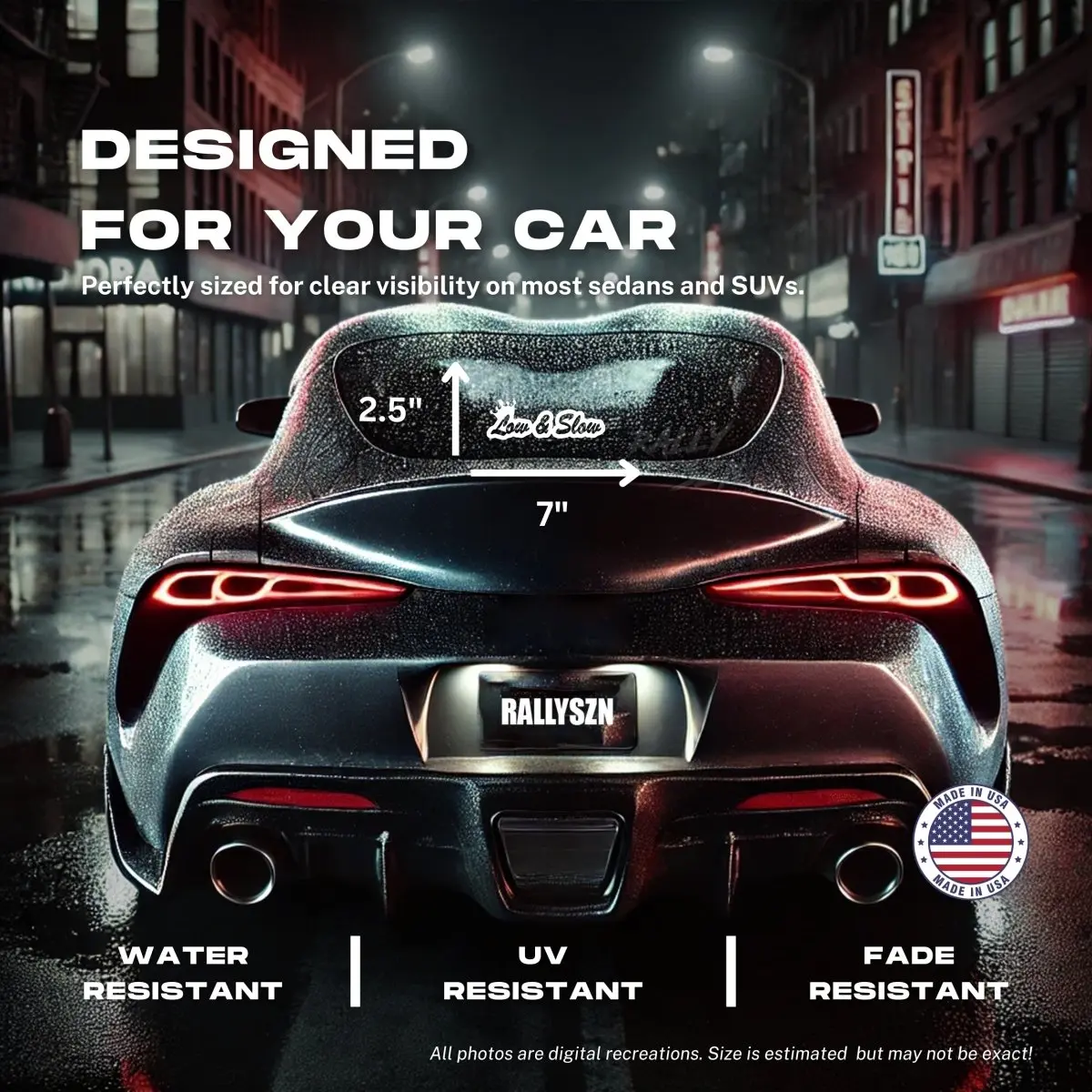 Low and Slow Vinyl Decal Sticker made from high-quality Oracal 651 vinyl, rated to last 5+ years outdoors with proper installation. Includes a prep pad and easy-to-follow installation instructions. Proudly made in the USA.