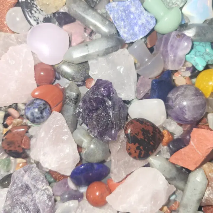 Crystal chips are a great way to add variety to your crystal collection. They can be used for various purposes such as cleansing, energy work, and meditation. Tumbles are a great way to enhance the healing properties of crystals. They can be used for energy work, meditation, and as a decorative piece. Mini spheres are a great way to add variety to your crystal collection. They can be used for various purposes such as energy work, meditation, and as a decorative piece. Carvings are a great way to add a unique and artistic touch to your crystal collection. They can be used for energy work, meditation, and as a decorative piece. Mini points are a great way to add variety to your crystal collection. They can be used for various purposes such as energy work, meditation, and as a decorative piece.