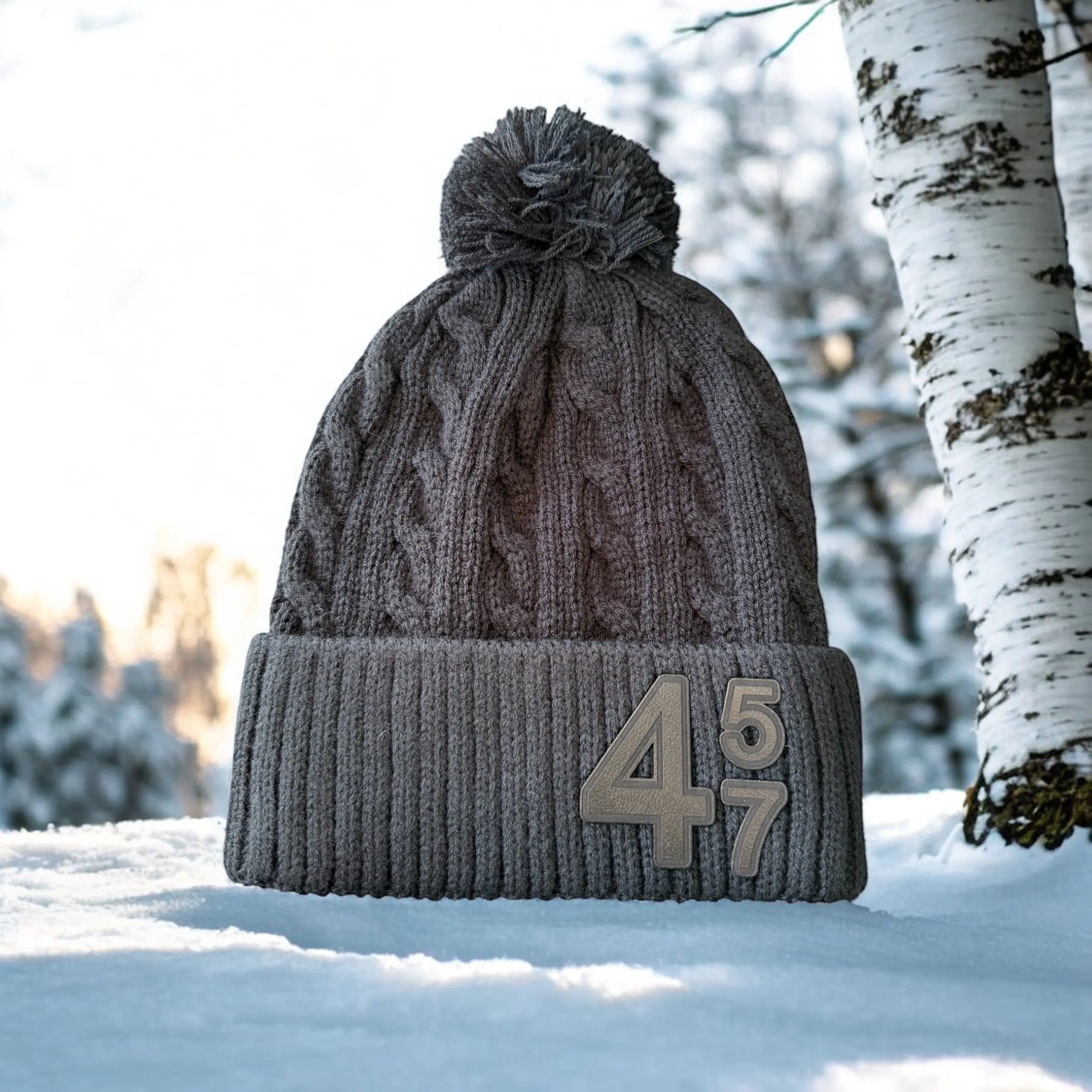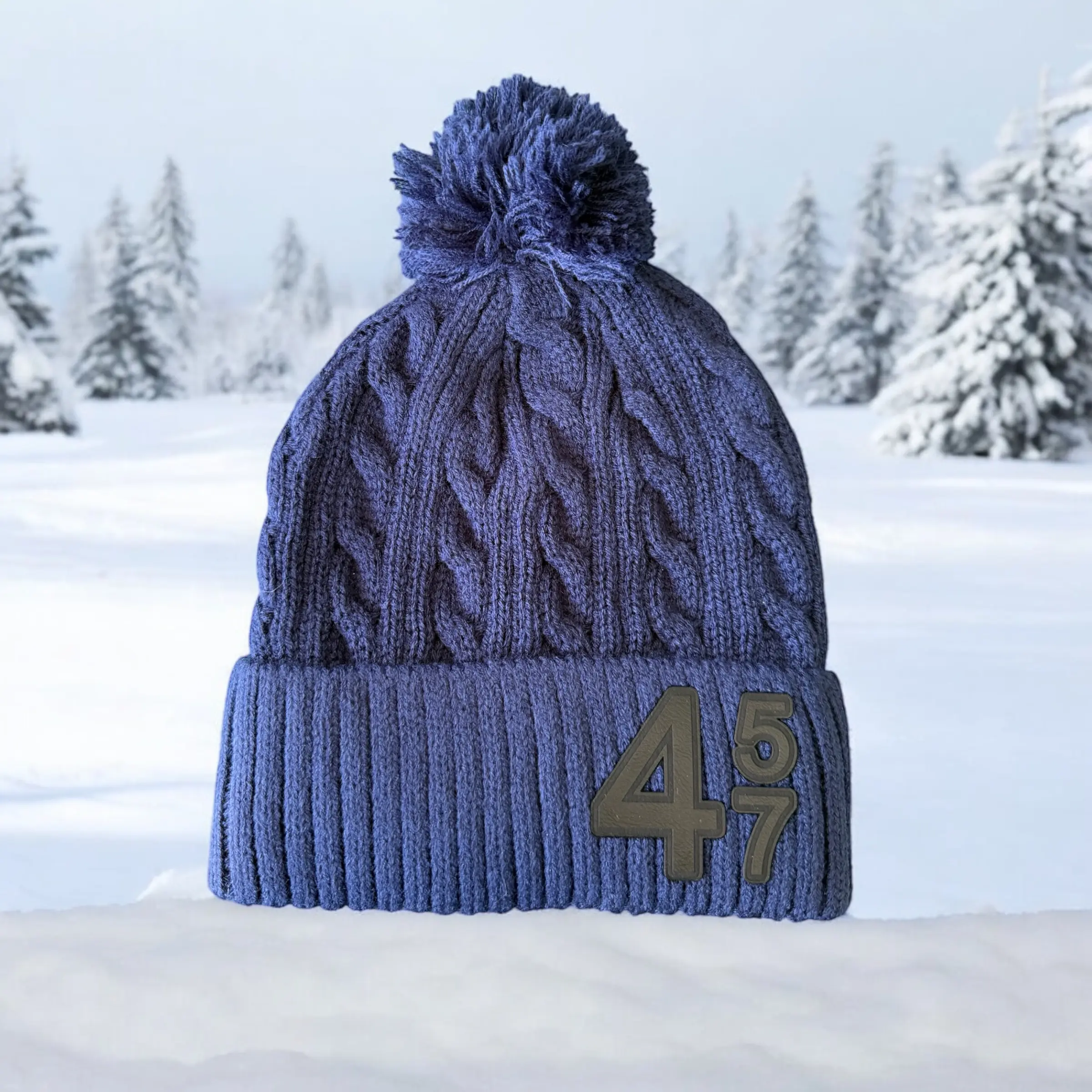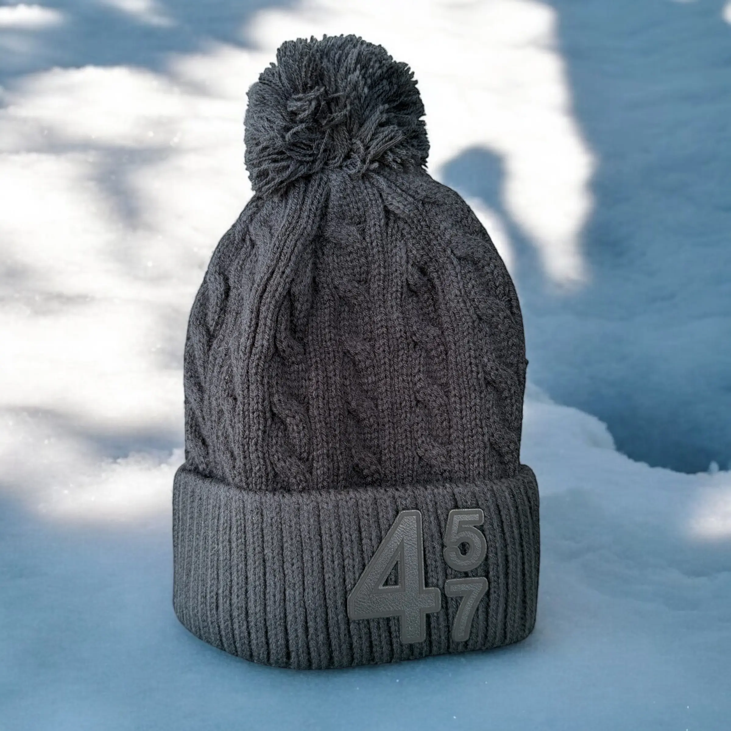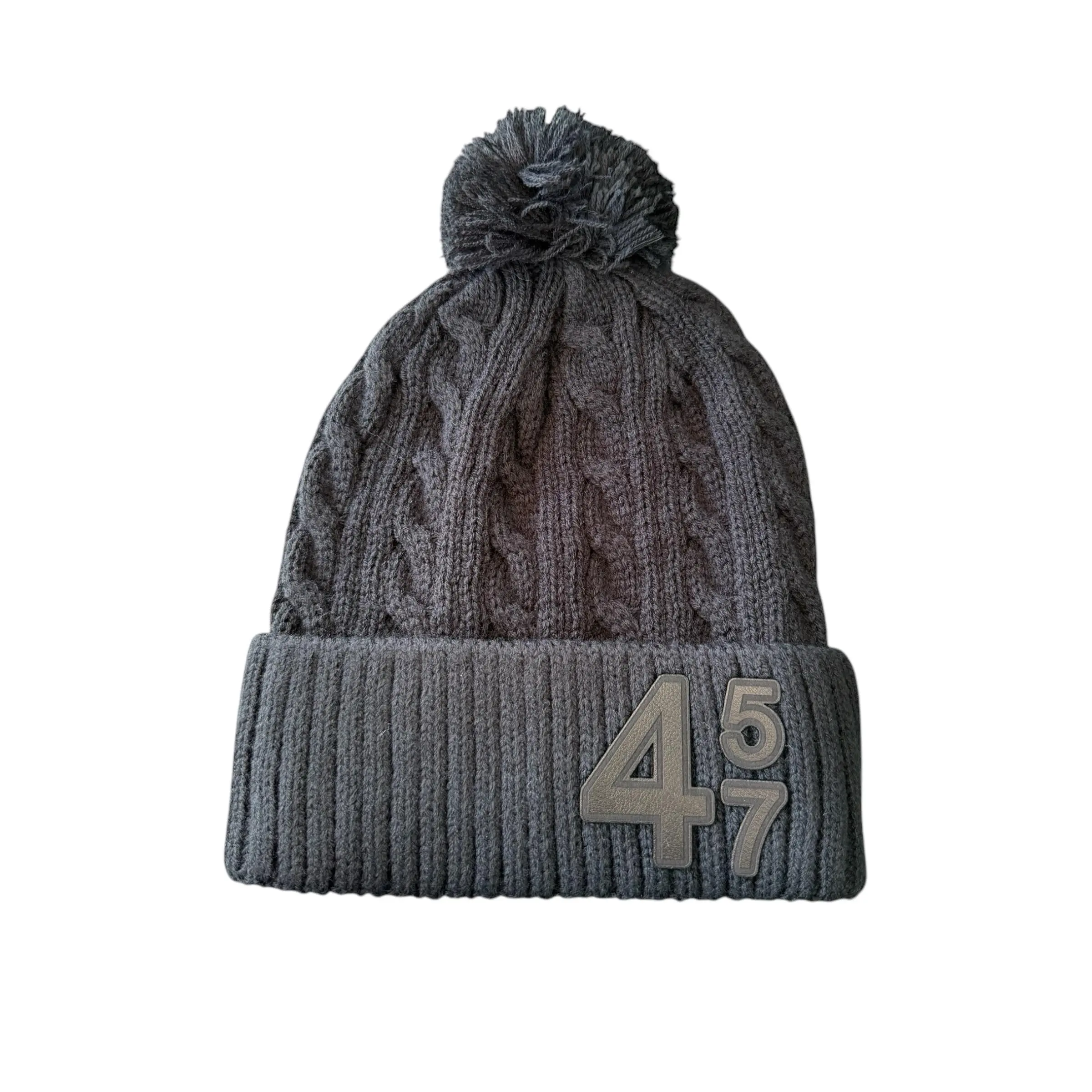 Trump 45 47 Acrylic Cable Knit Beanie with Pom Pom in Black and Navy for Men and Women