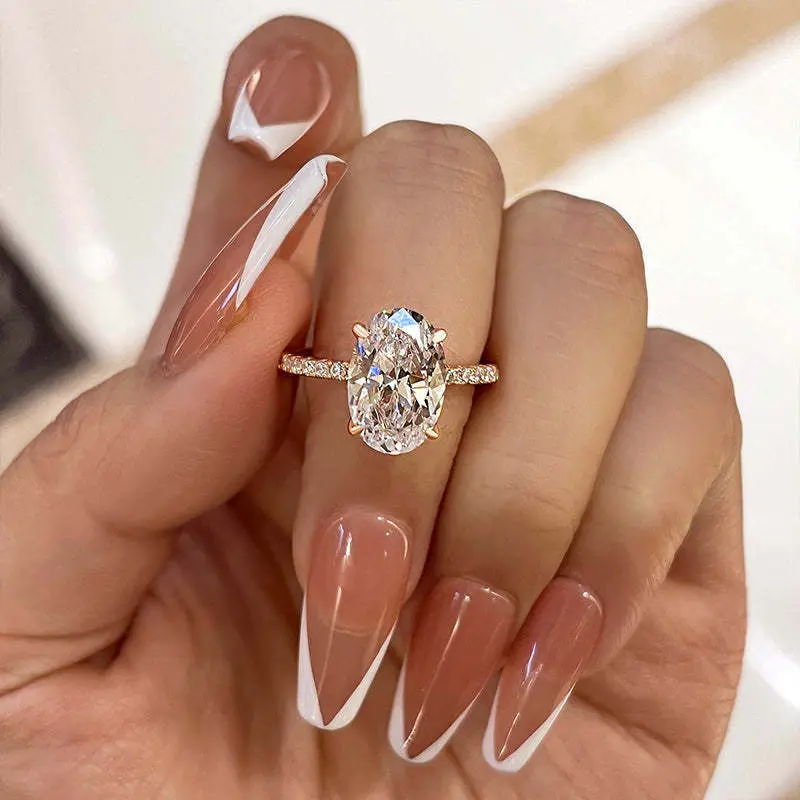 Timeless and elegant, the Maxine Classic Engagement Ring features a stunning 3.5ct oval-cut center stone, expertly set to enhance its radiant brilliance. The sleek band and sophisticated design make it the perfect choice for those seeking a classic yet striking engagement ring that symbolizes lasting love.
