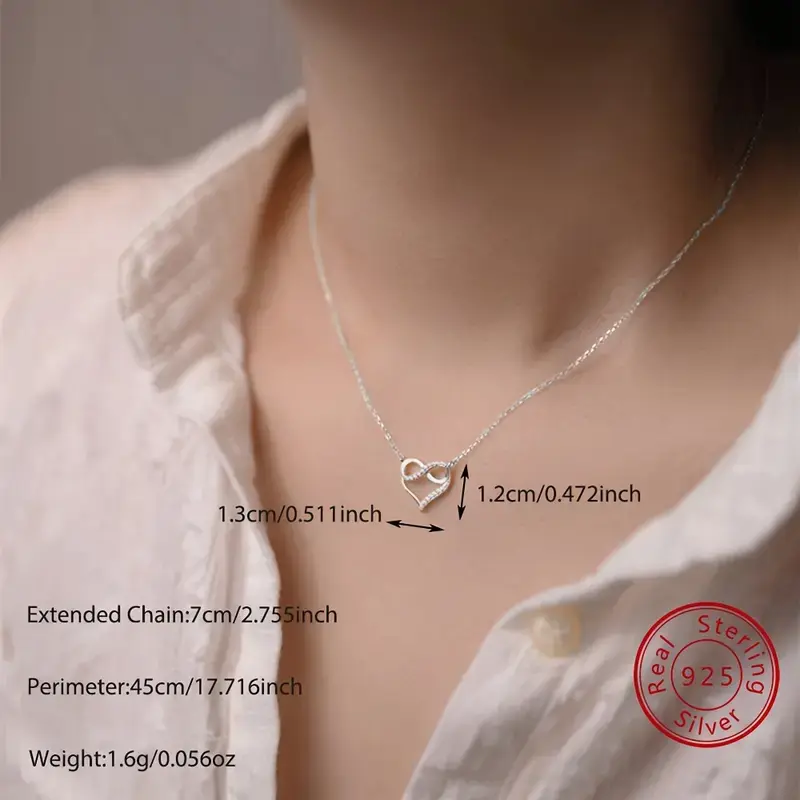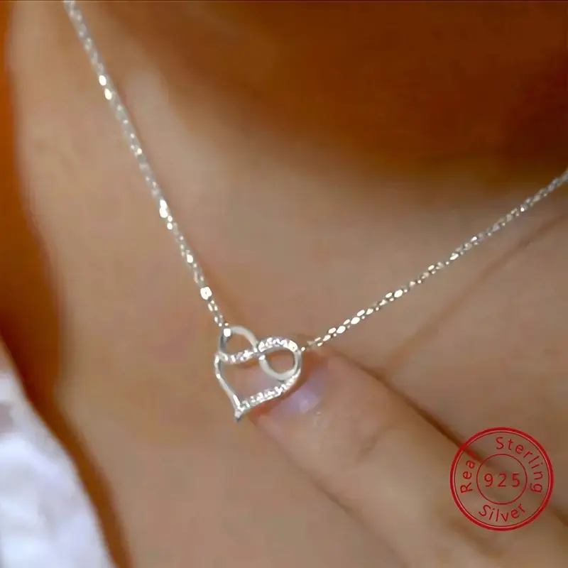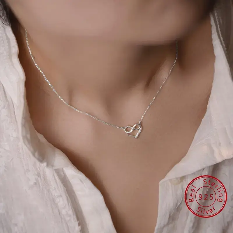 Elegant S925 Sterling Silvery Love Heart & Infinity Symbol Pendant Necklace with Cubic Zirconia - Perfect Gift for Her