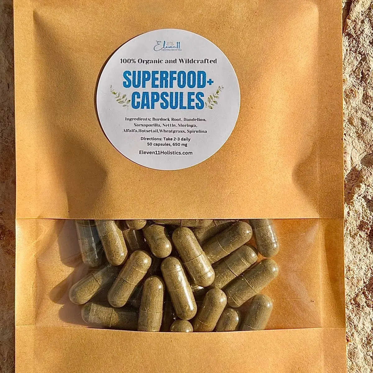 Fuel your body with Superfood Vitality Capsules, a nutrient-rich blend of greens, roots, and more designed to support energy, detoxification, and overall vitality.