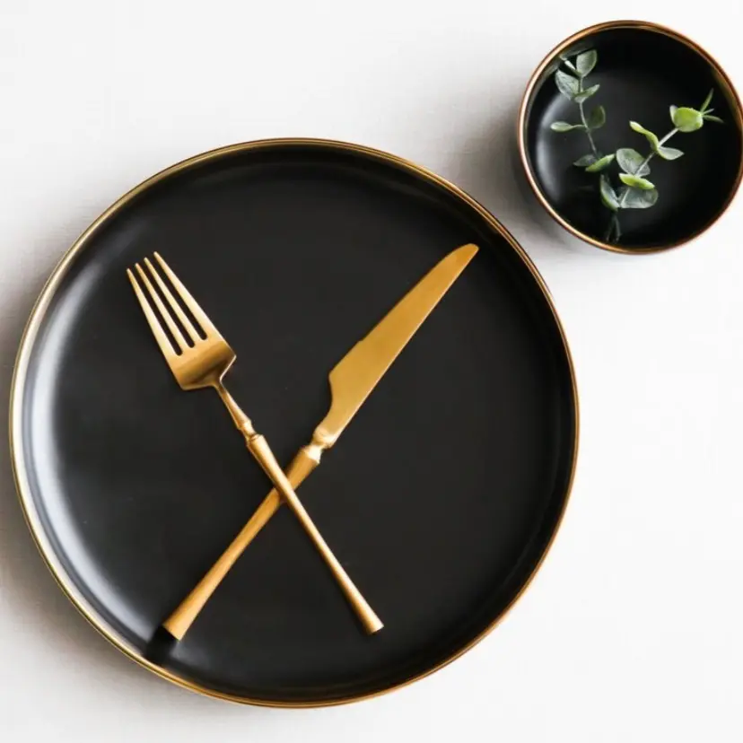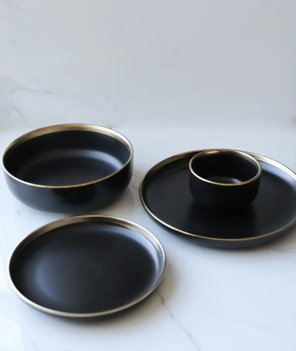 Dine with elegant style when using our Luxury Ceramic Black Dish Set. These plates are ideal for breakfast, lunch, and dinner! Our dishes are crafted for higher quality/heavier feel when holding. Add to your collection with other Marcel Ardani products for a full dining experience.