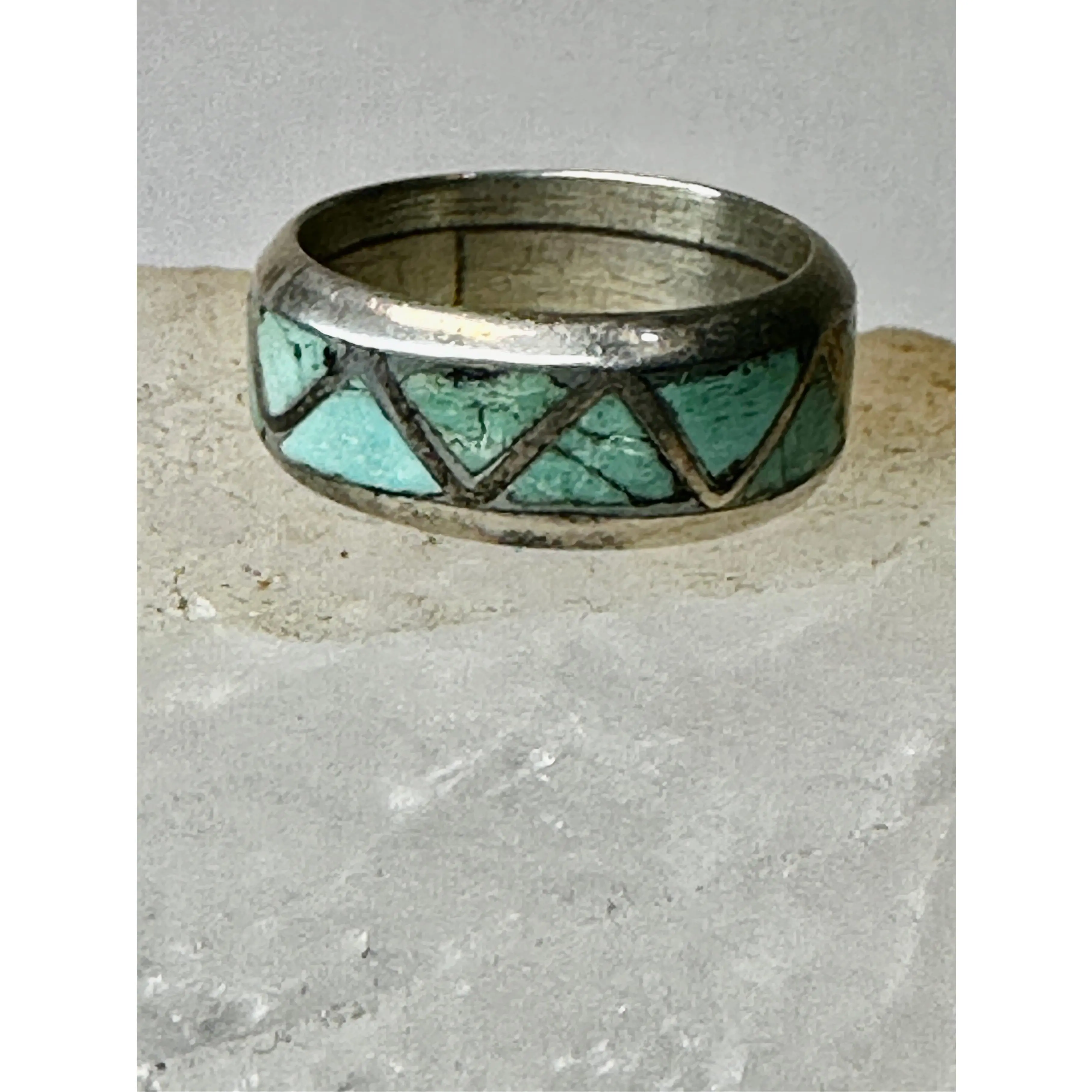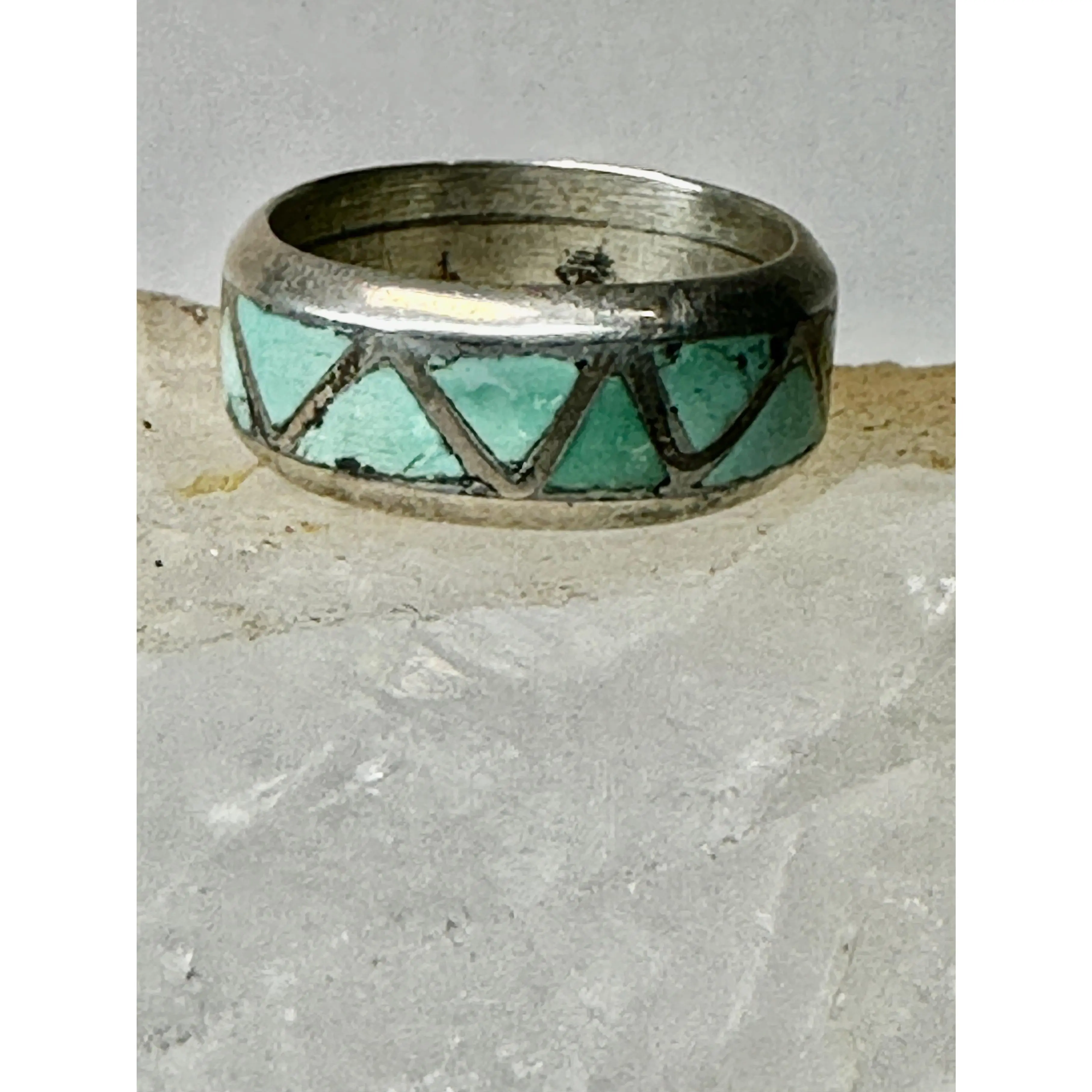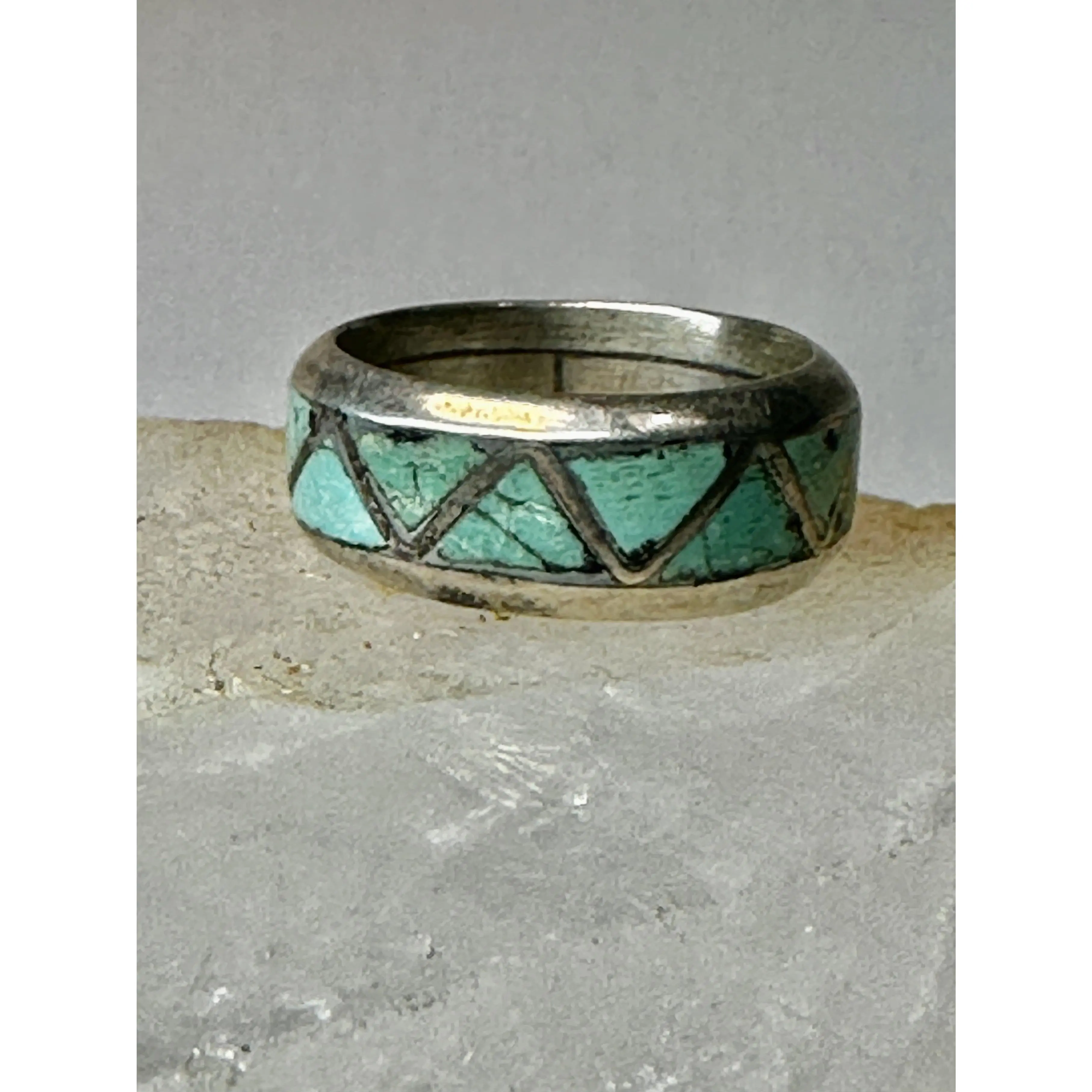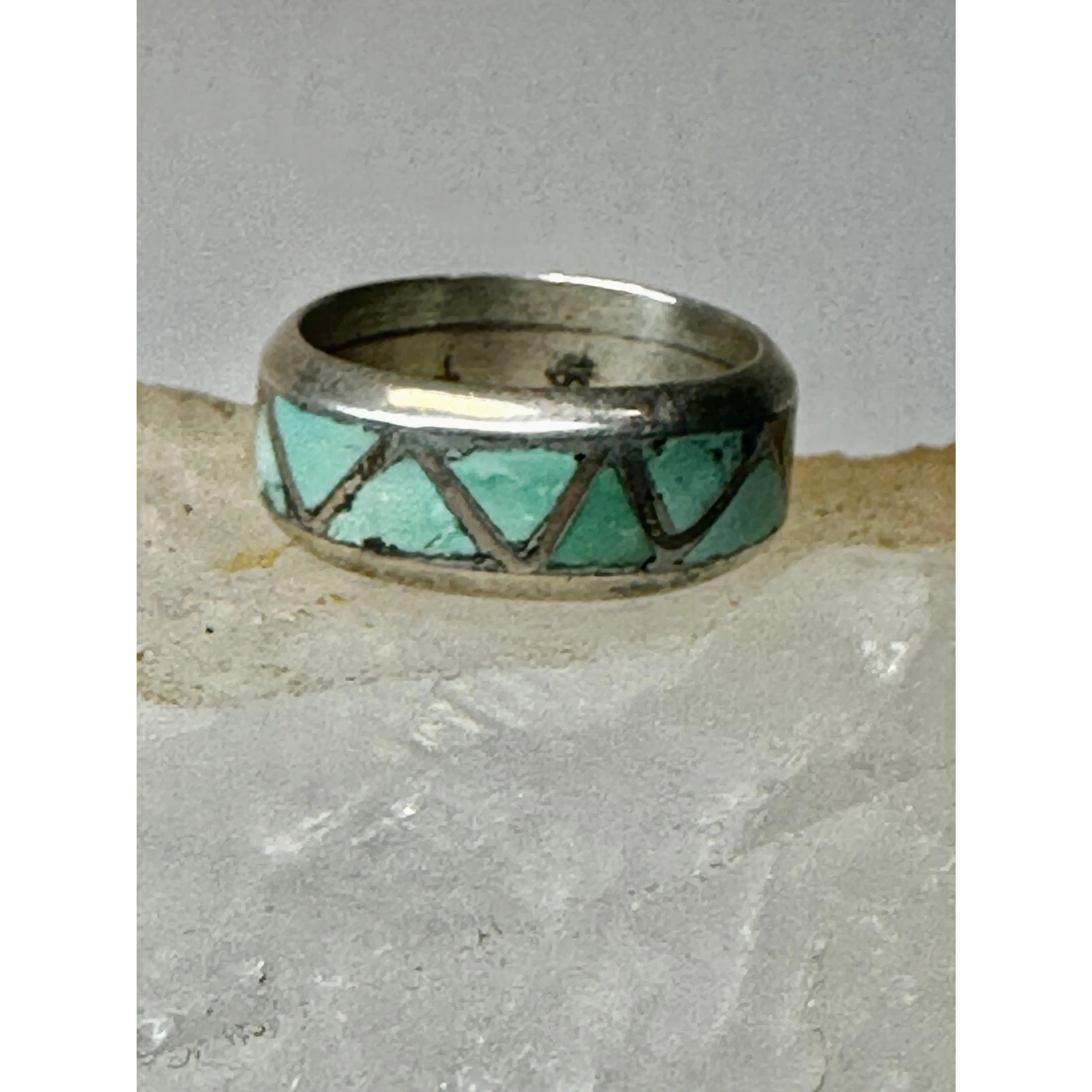 Zuni ring Turquoise wedding band size 6 sterling silver women men