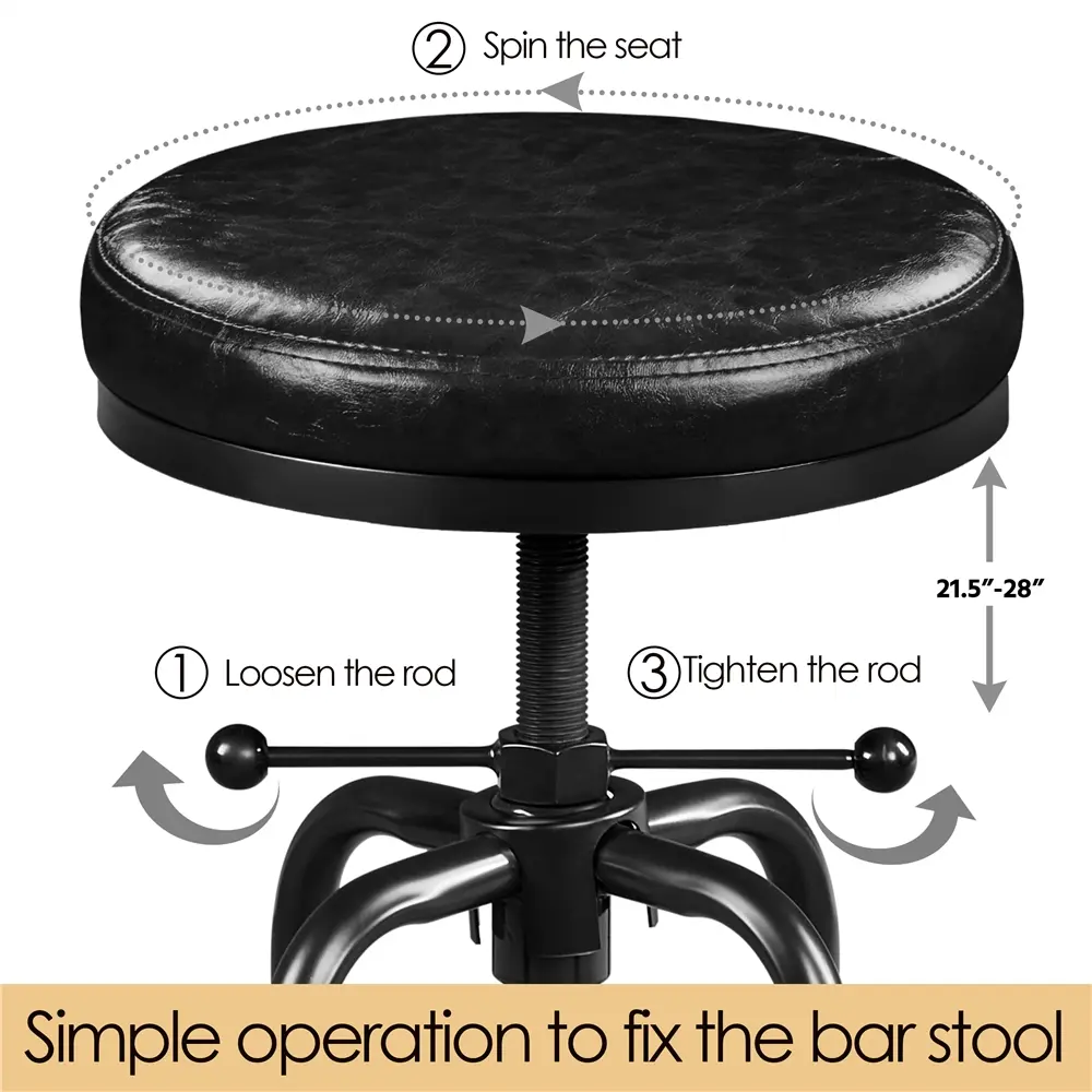 Free & Easy Height Adjustment: Just simple operation to adjust and fix this round bar stool with a lockable rod under the seat. Loosen the rod first, spin the seat by your desired height between 21.5-28″, and then tighten the lockable rod