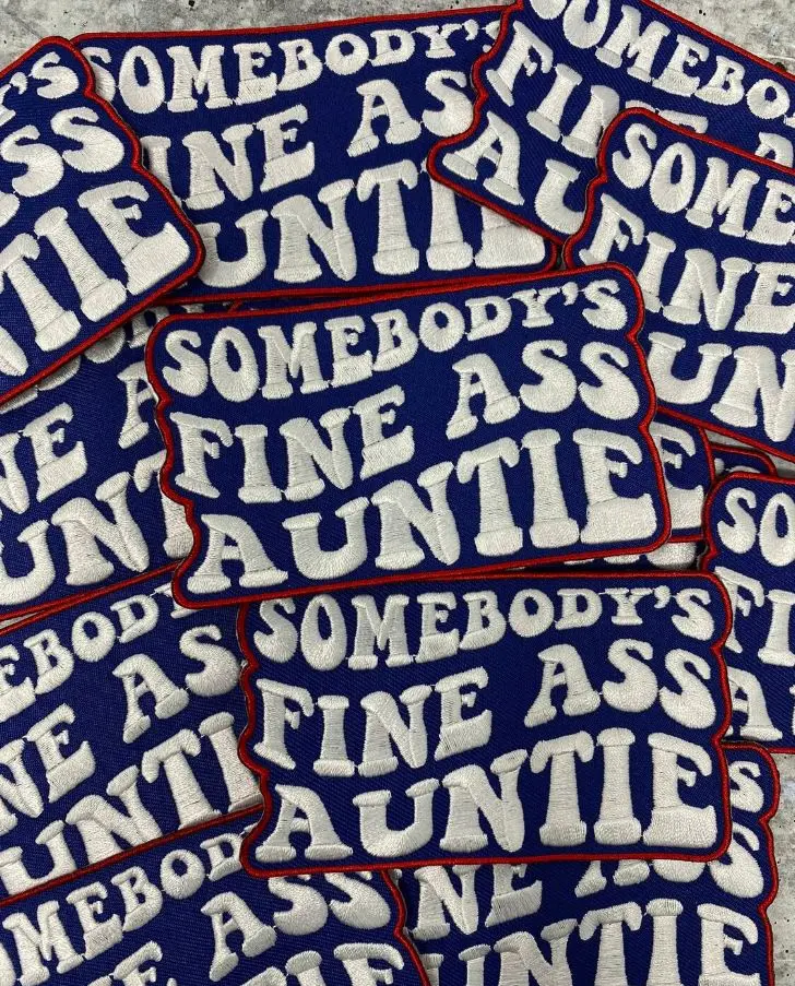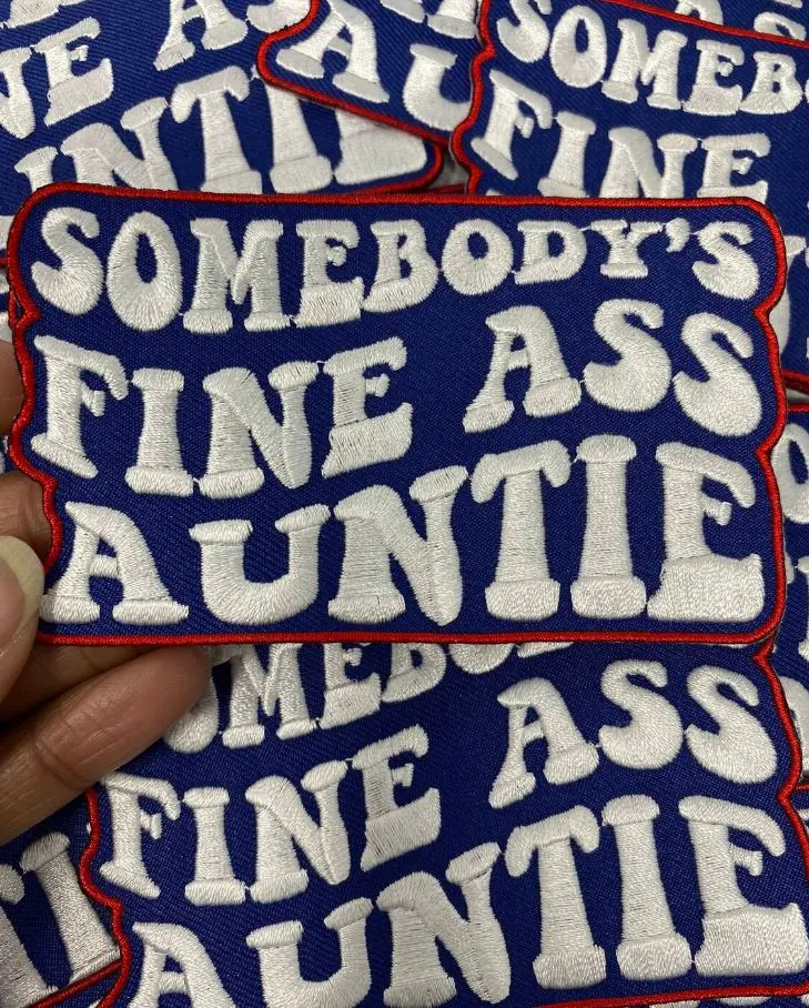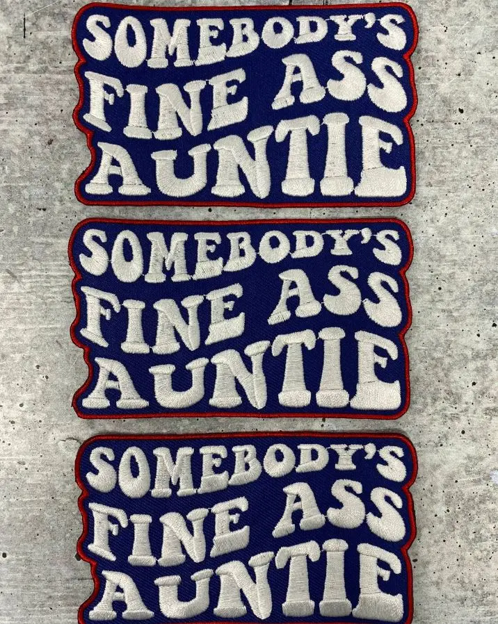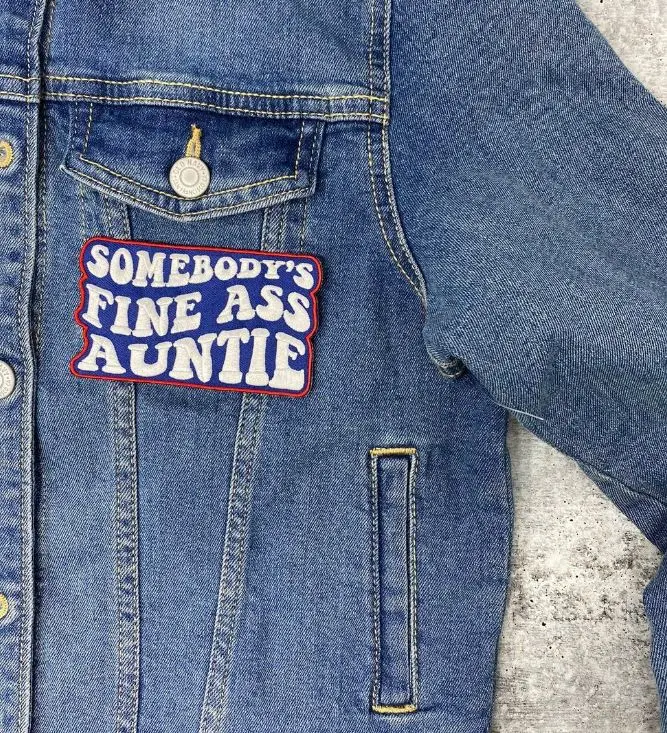 Are you somebody's fine ass auntie? well, this patch is definitely for you! Add it to a hat, camo, crocs, or denim jacket! You'll definitely stand out!! Patch has adhesive on the back and is ready to be sealed with your heat press or iron (without steam). Enjoy! Thanks so much for stopping by!