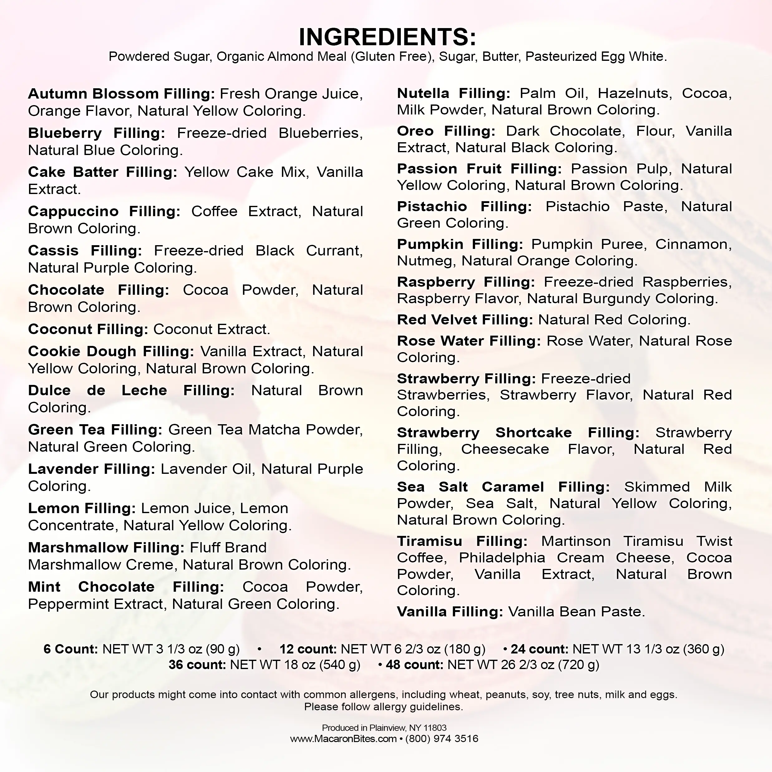 Elevate your gatherings and treat your guests to an experience they will cherish forever. Try our Macaron Bites - Pumpkin French Macarons today! Please review our list of ingredients to confirm that our products align seamlessly with your preferences.