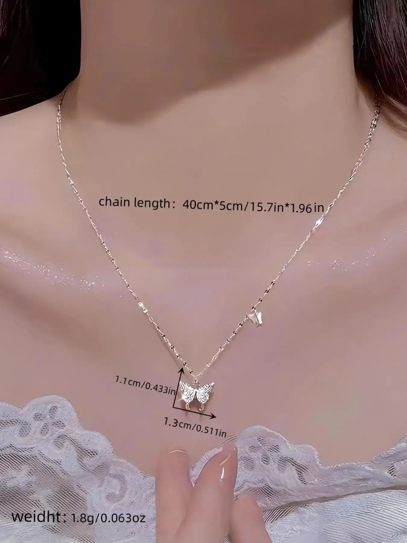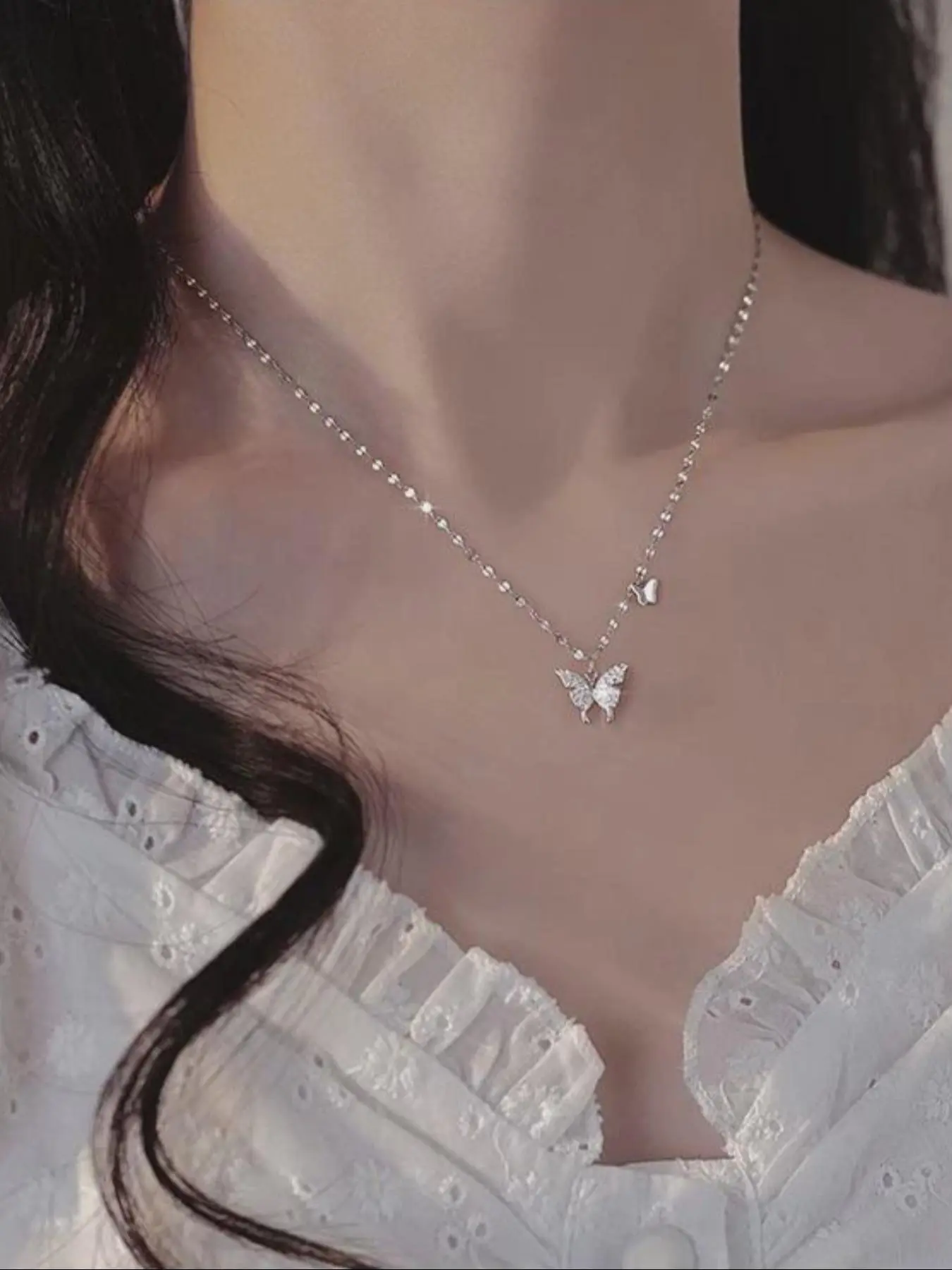 925 Sterling Silver Butterfly Design Pendant Necklace, Fashion Rhinestone Decor Necklace for Party, Daily Decor, Trendy All-match & Exquisite Jewelry for Birthday Gift