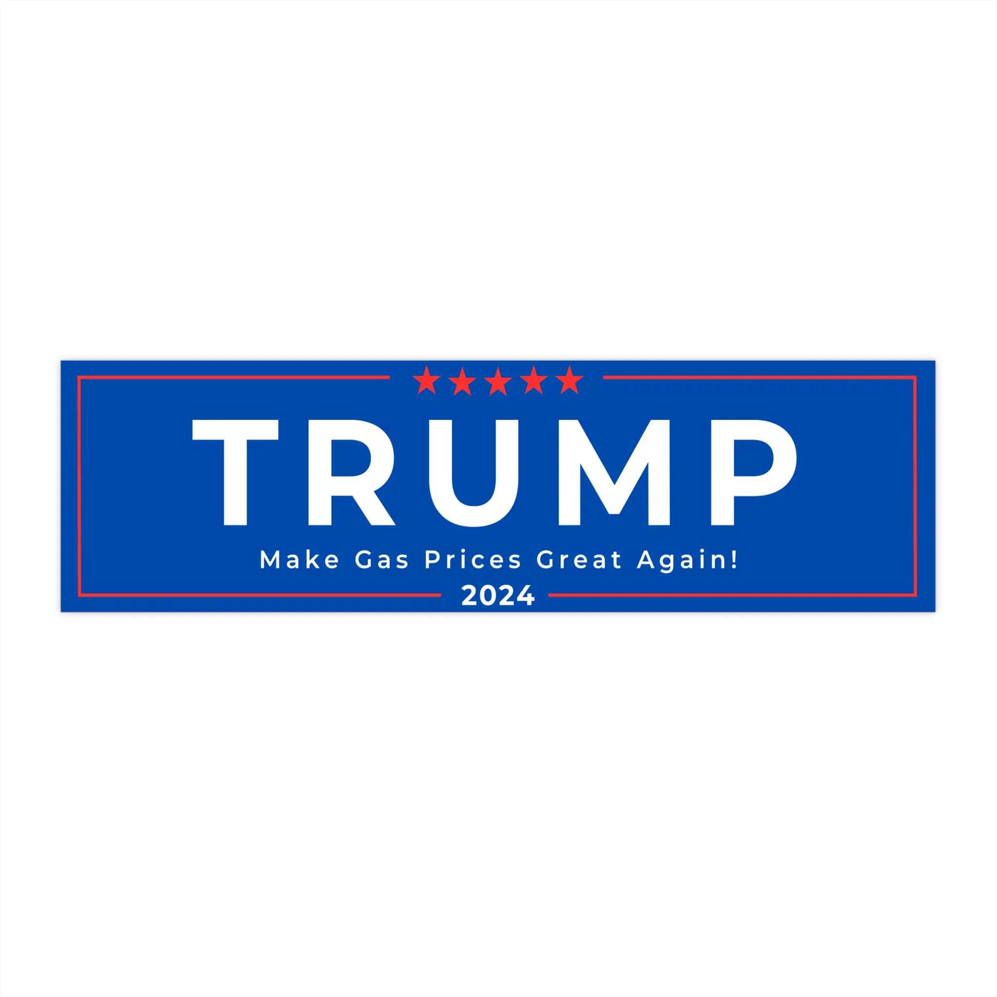 Bring attention to your message with this premium "Make Gas Prices Great Again" bumper sticker! Perfect for cars, windows, or any smooth surface, this promotional sticker is designed for durability and style. The bold "Trump" branding in blue with white lettering ensures your statement stands out wherever you display it.
