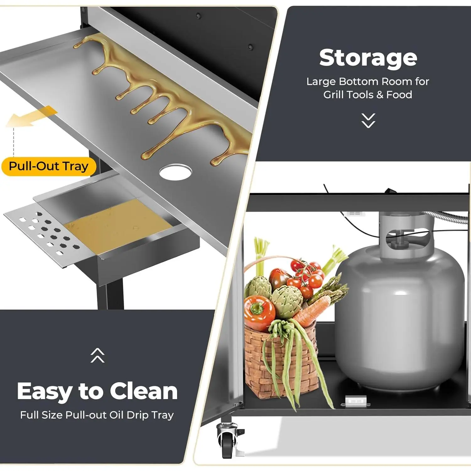 ·Stay Organized: With a spacious bottom cabinet, convenient side shelves, and a built-in bottle opener, this grill keeps all your grilling essentials within reach.