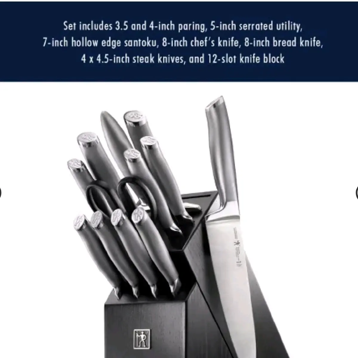 Introducing the 13-piece knife block set, a must-have for any kitchen. This set includes a 8-inch chef's knife, a 5-inch serrated utility knife, a hollow edge santoku, and a set of knives that are perfect for chopping herbs and dicing onions. The set is also equipped with a 5-inch serrated utility knife that is perfect for slicing through crusty sourdough.