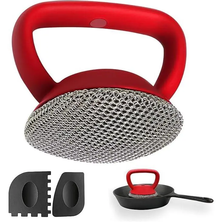 Cast Iron Scrubber, Cast Iron Skillet Cleaner+2 Pan Grill Scrapers Chain Mail to Clean Cast Iron Chain Mail Scrubber Cast Iron Chainmail Scrubber for Cast Iron Skillet (Red) Shantell Harris LLC