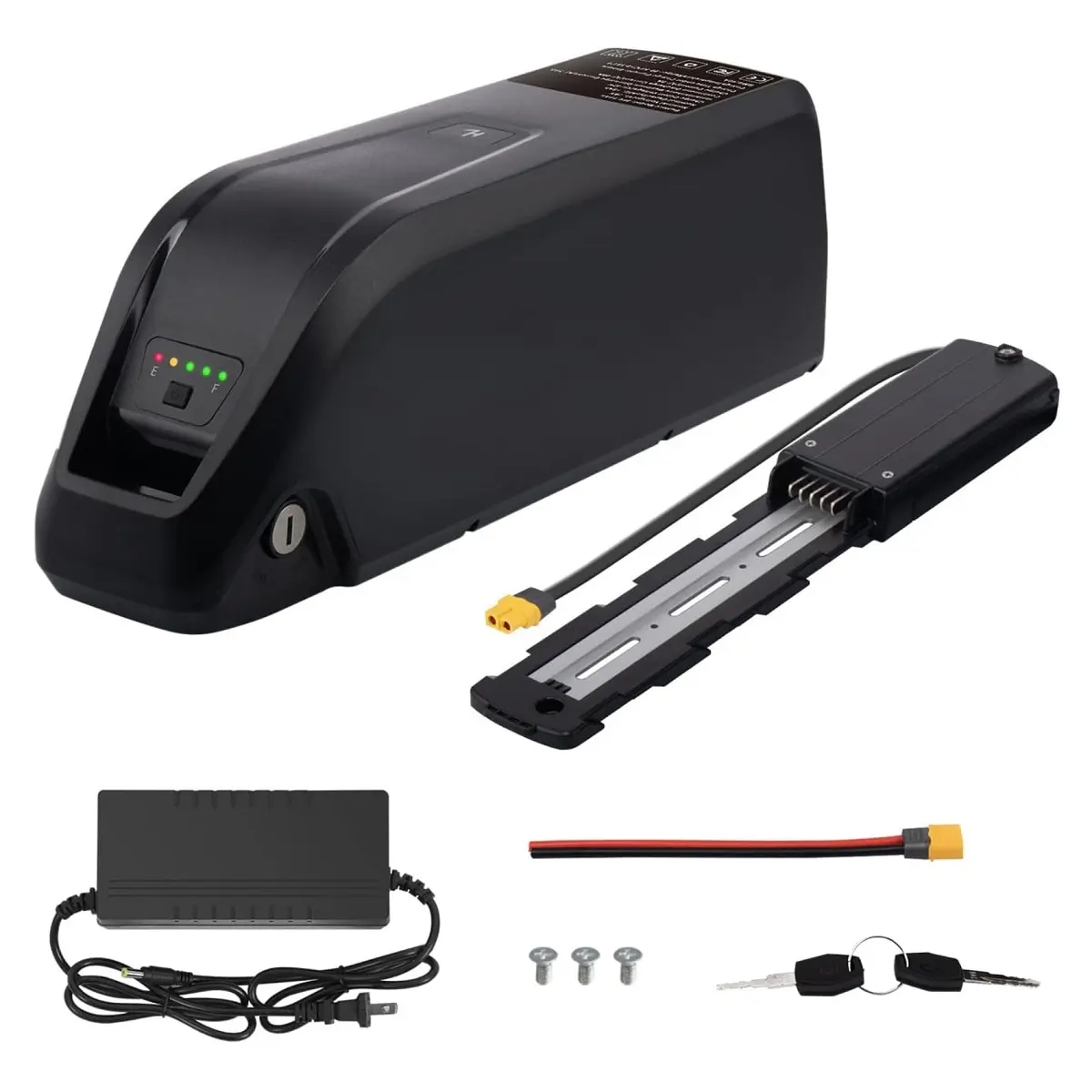 ·PACKAGES:1 x 36V 15AH Ebike Replacement Battery1 x 5-Pin Battery Holder Mounting Plate1 x 2A Rapid Charger2 x Security Lock Keys1 x Male XT-60 Discharge Connector3 x Screws