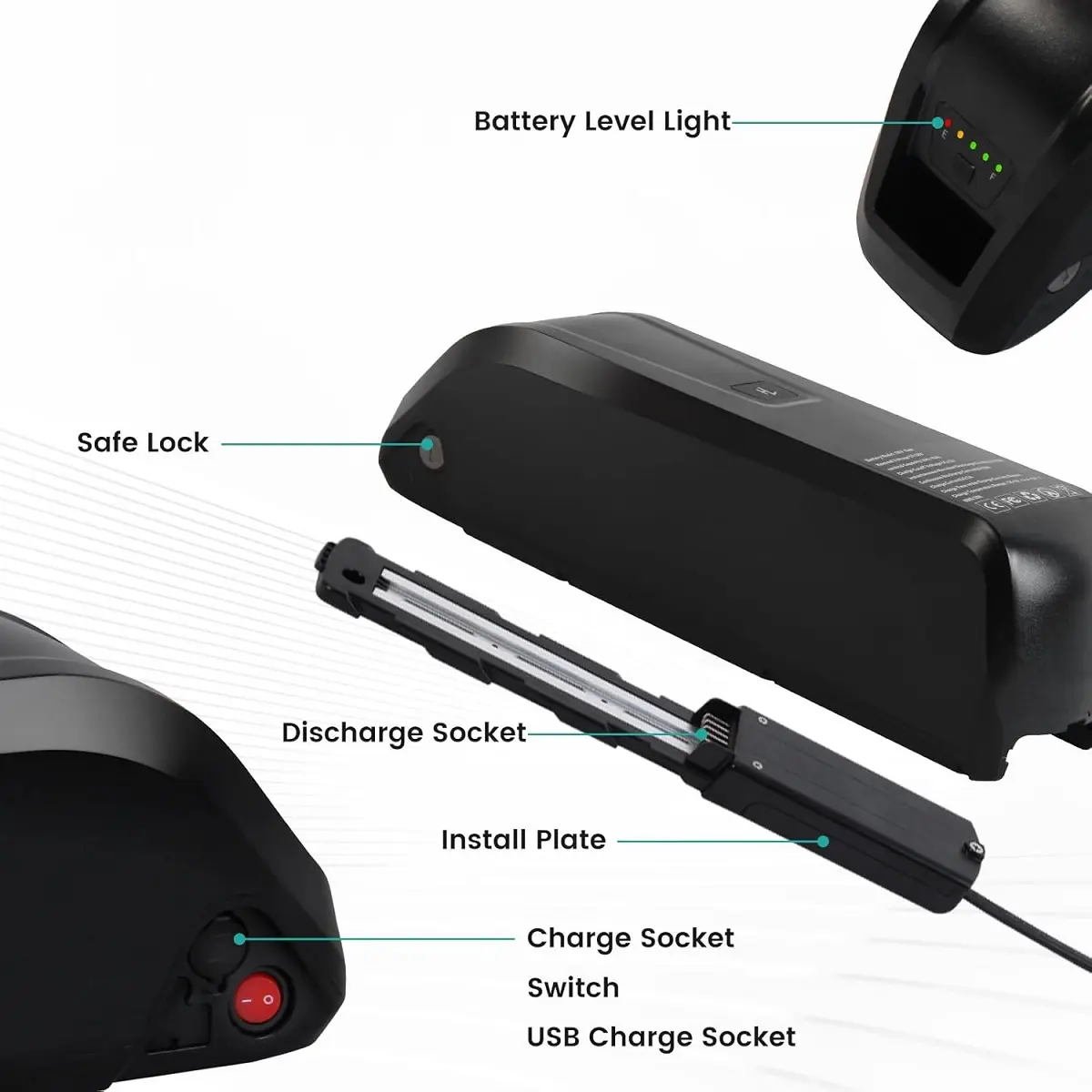 ·UNIQUE DESIGN:Equipped with a USB port for multi-functional needsLED battery indicator for real-time battery level indicationSecurity lock to prevent battery theft