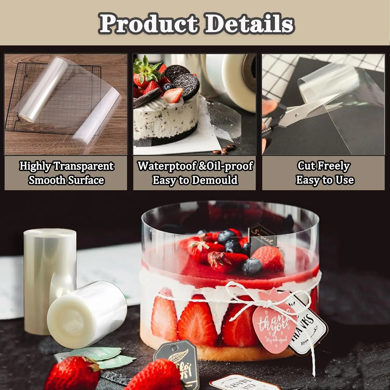 ·EASY TO USE ---- Tear the acetate roll cake sheet, cut it to the desired length according to your needs, and wrap around the edges of the cake. The non-stick and smooth surface facilitates easy moving. The rolls help keep the cake intact and achieve flawless edges.