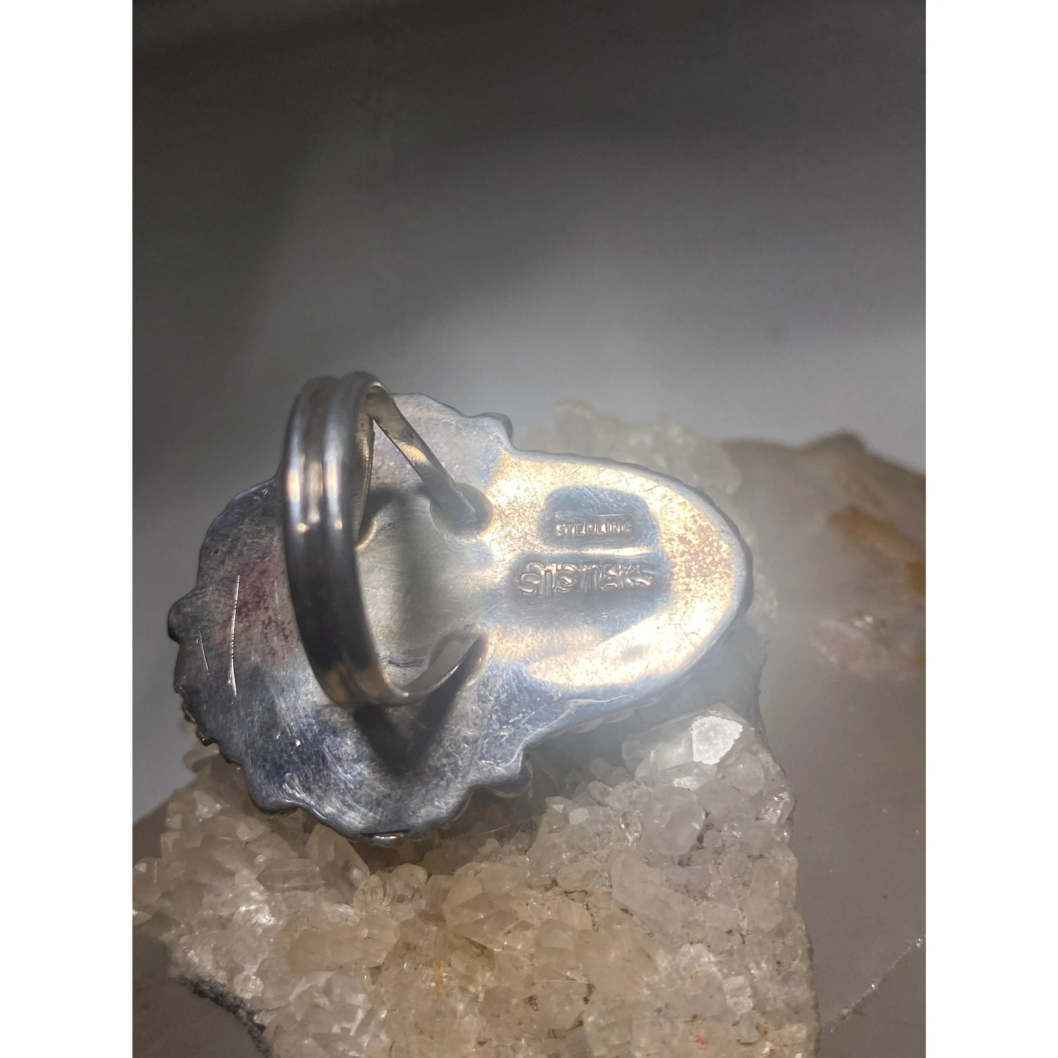 Navajo ring Turquoise cigar band leaves size 9 sterling silver women men