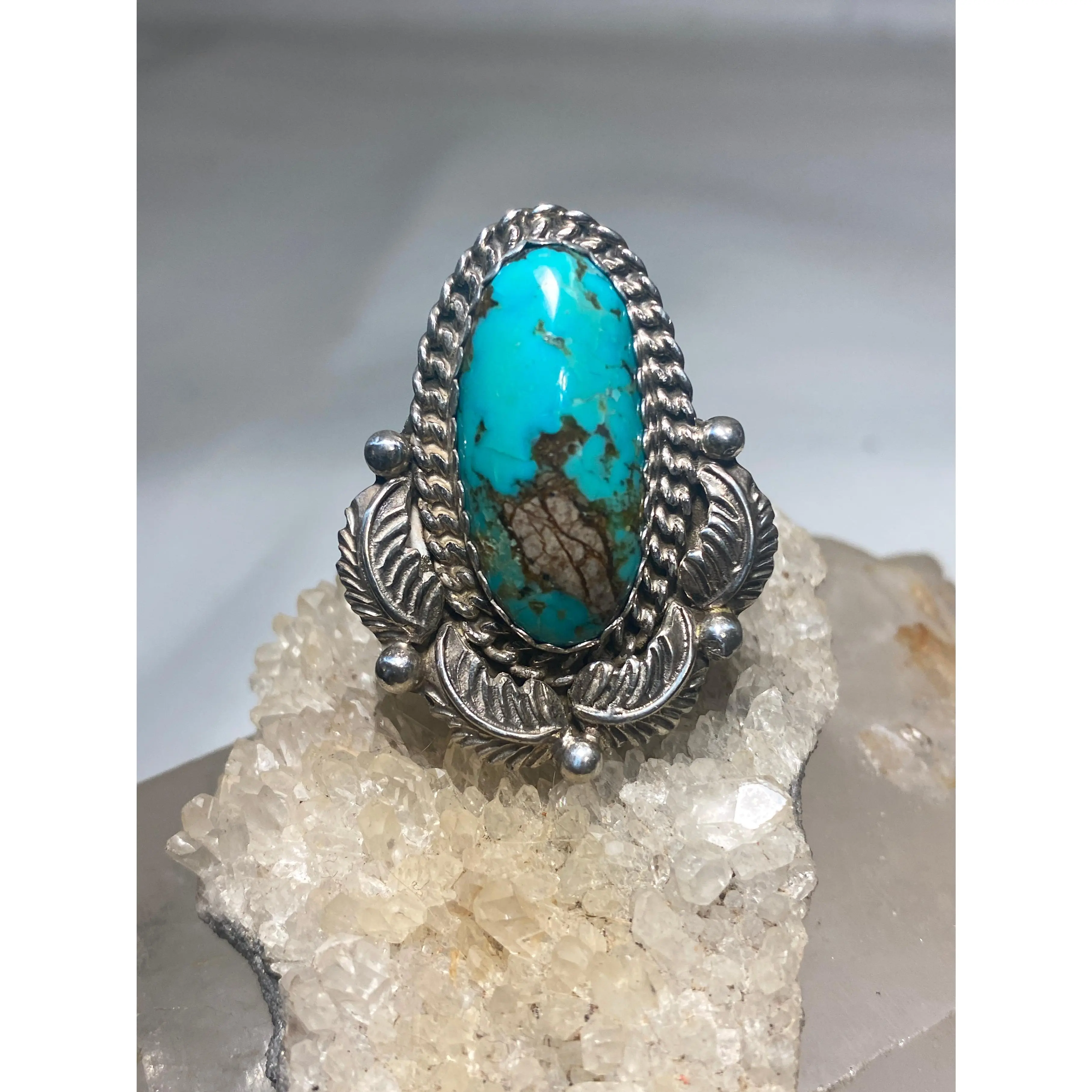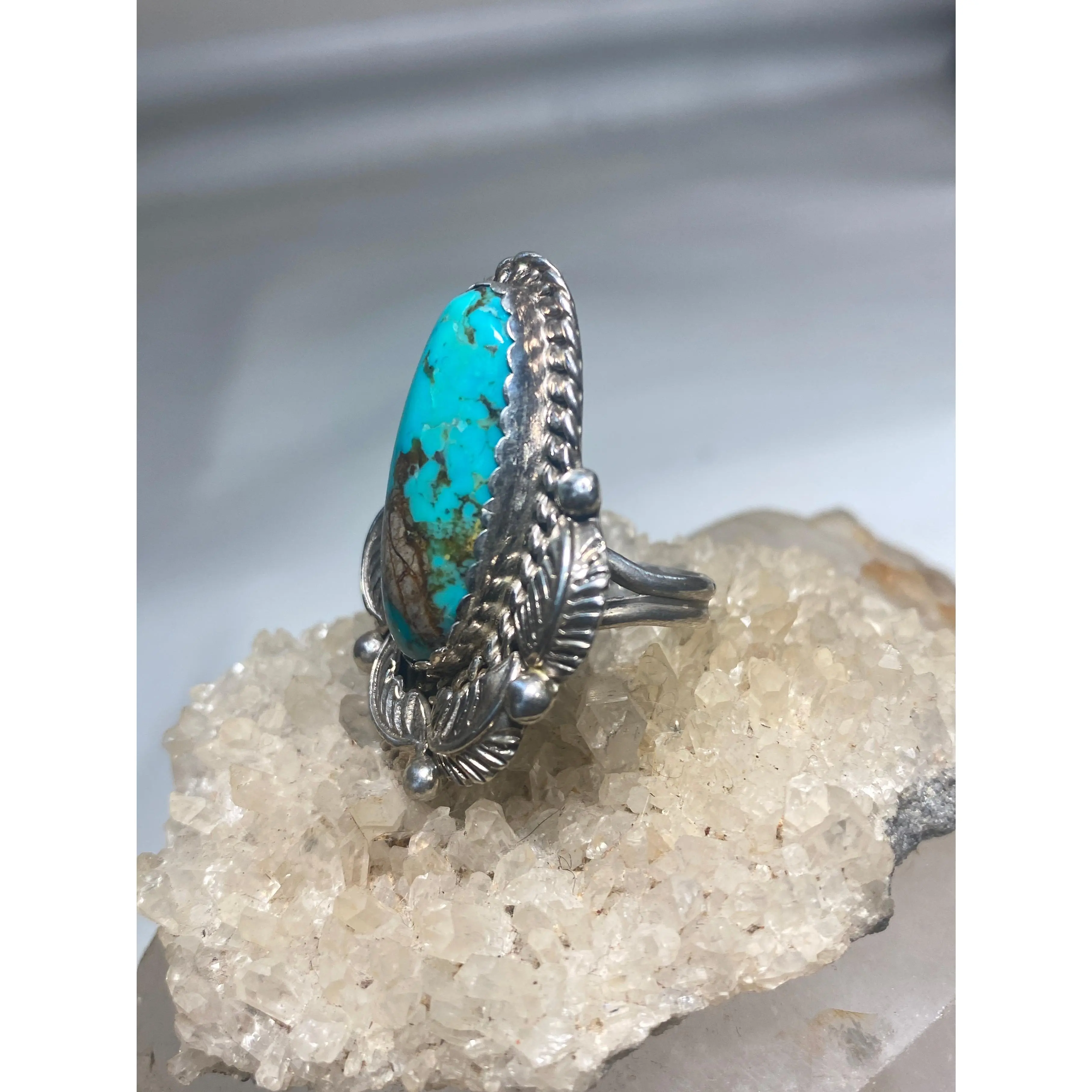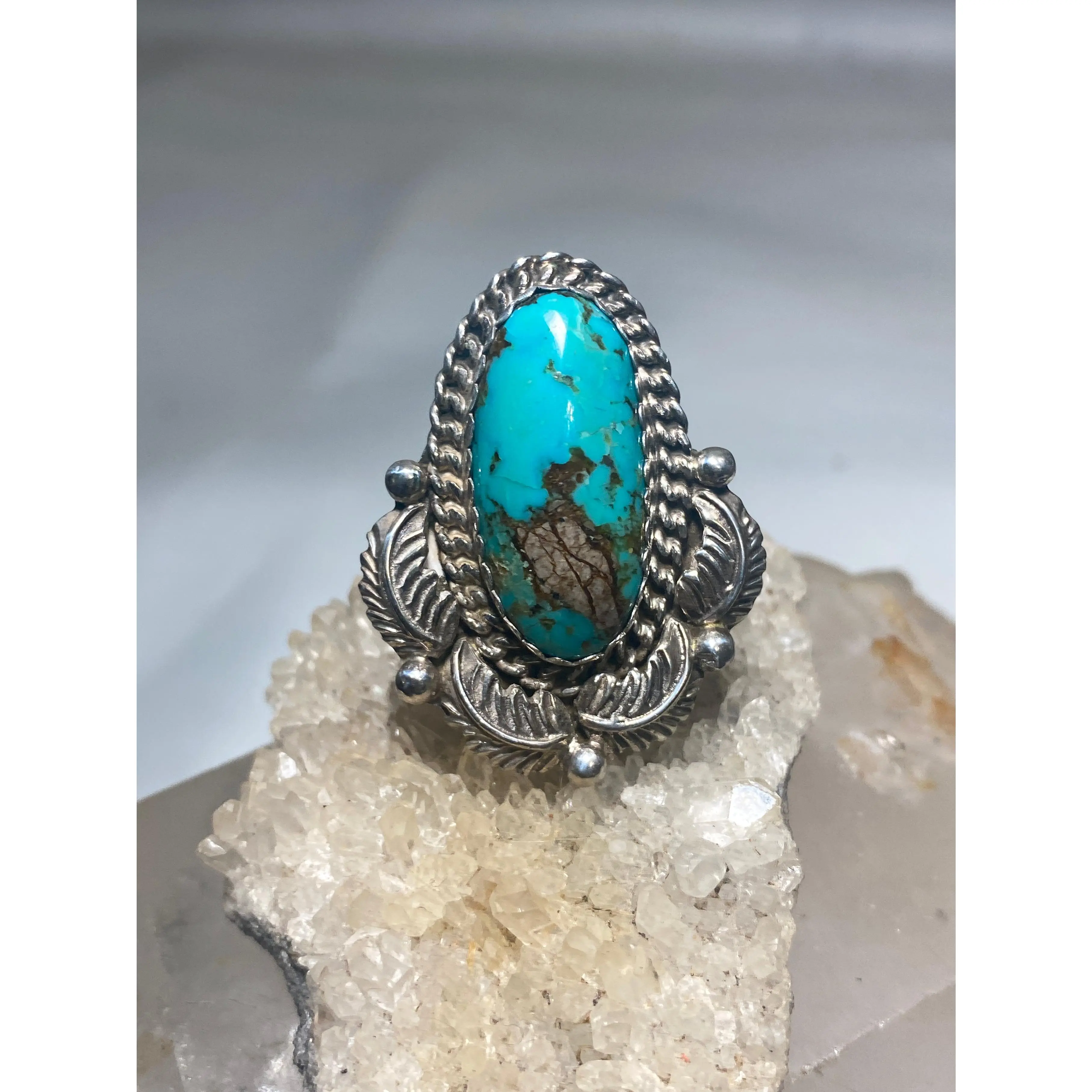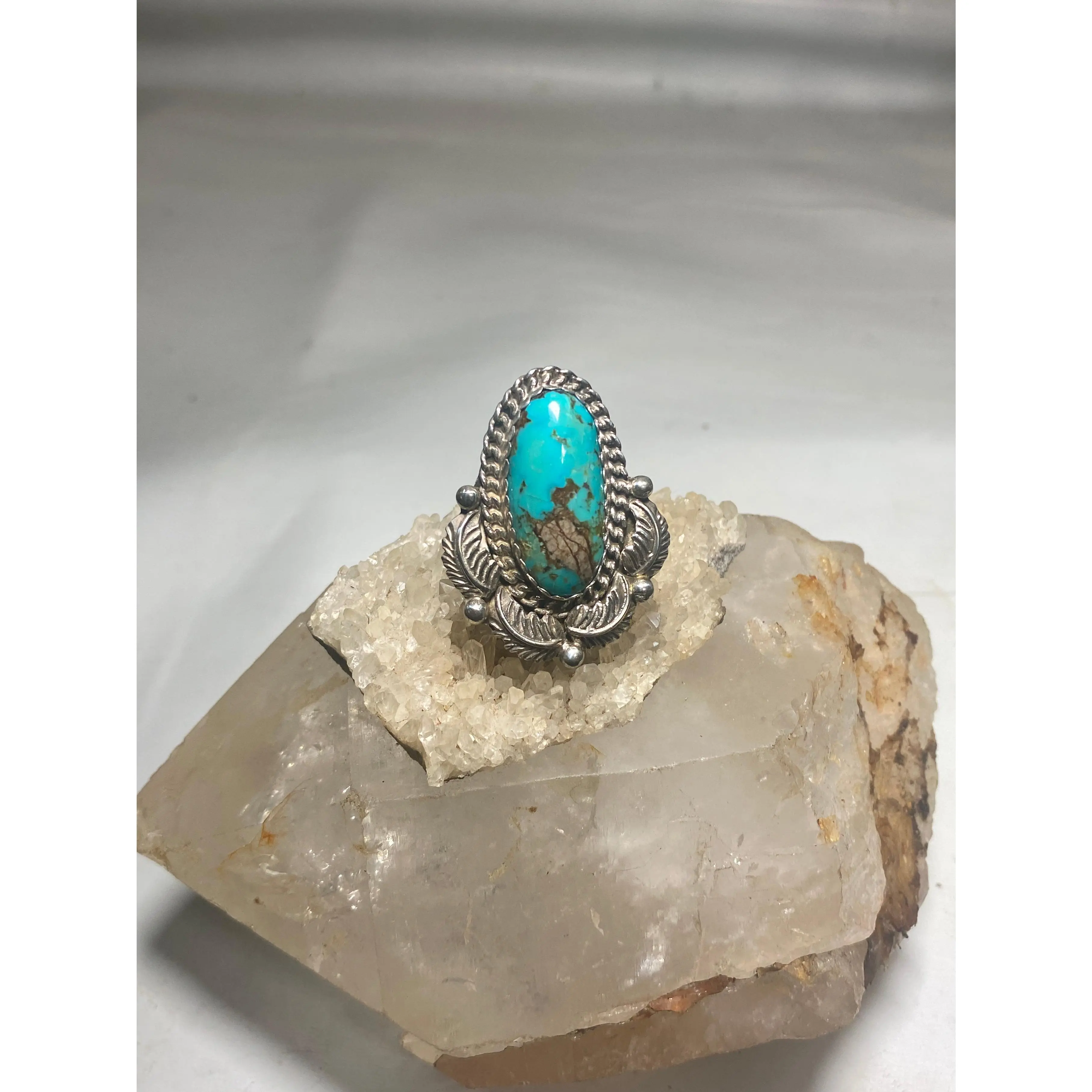 Turquoise ring long Navajo feathers band sterling silver women girls