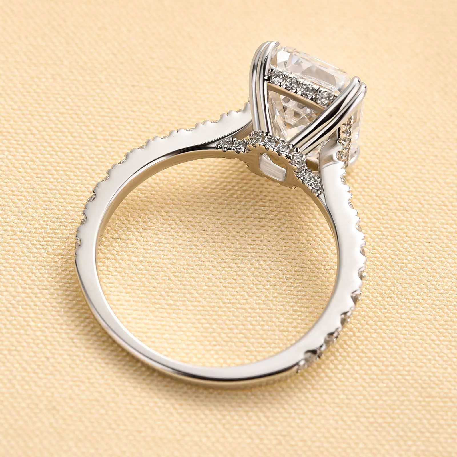 PAVOI 14K Gold Plated 3.5CT Square Radiant Cubic Zirconia Engagement and Promise Ring for Women - Hidden Halo Ring