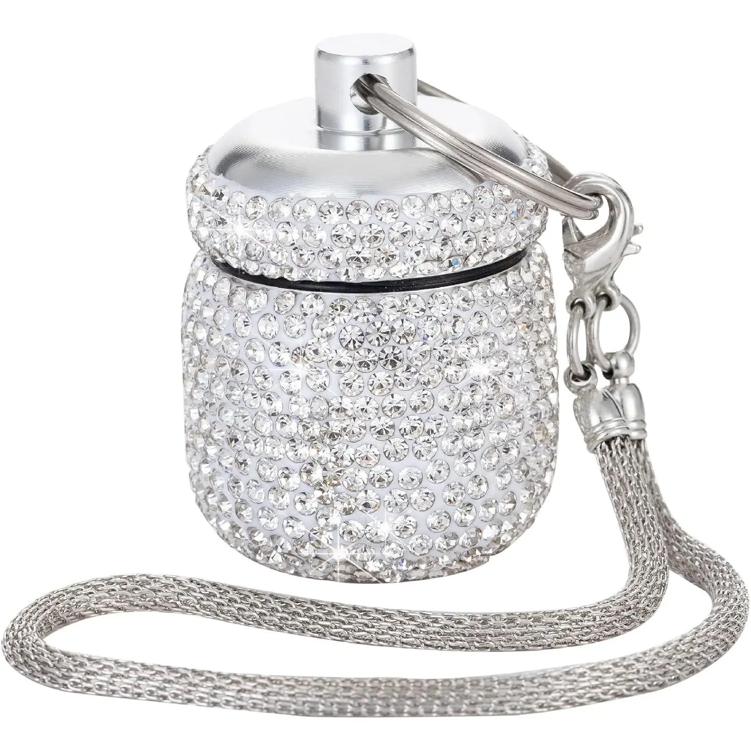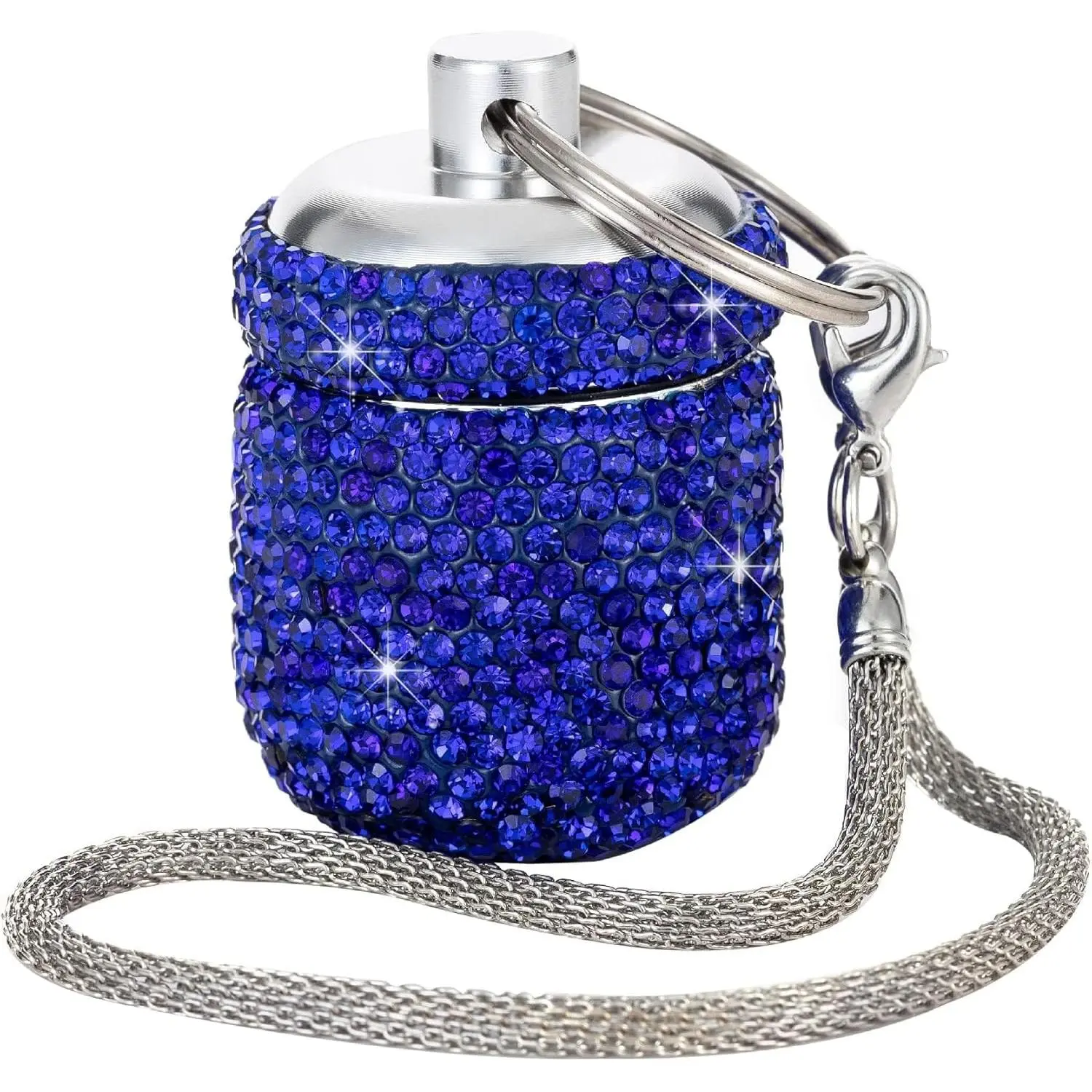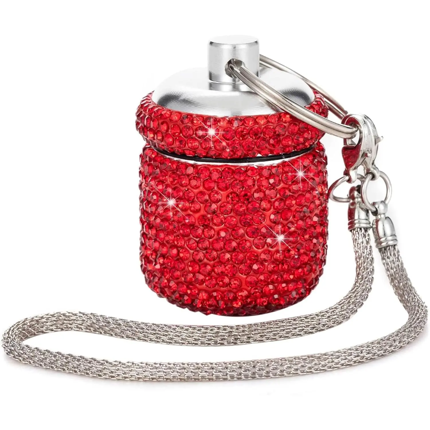 Keychain Pill Holder Bling Small Pill Box for Purse Portable Pill Case Organizer Cute Key Chain Pill Container Bottle for Capsule Vitamin Supplement