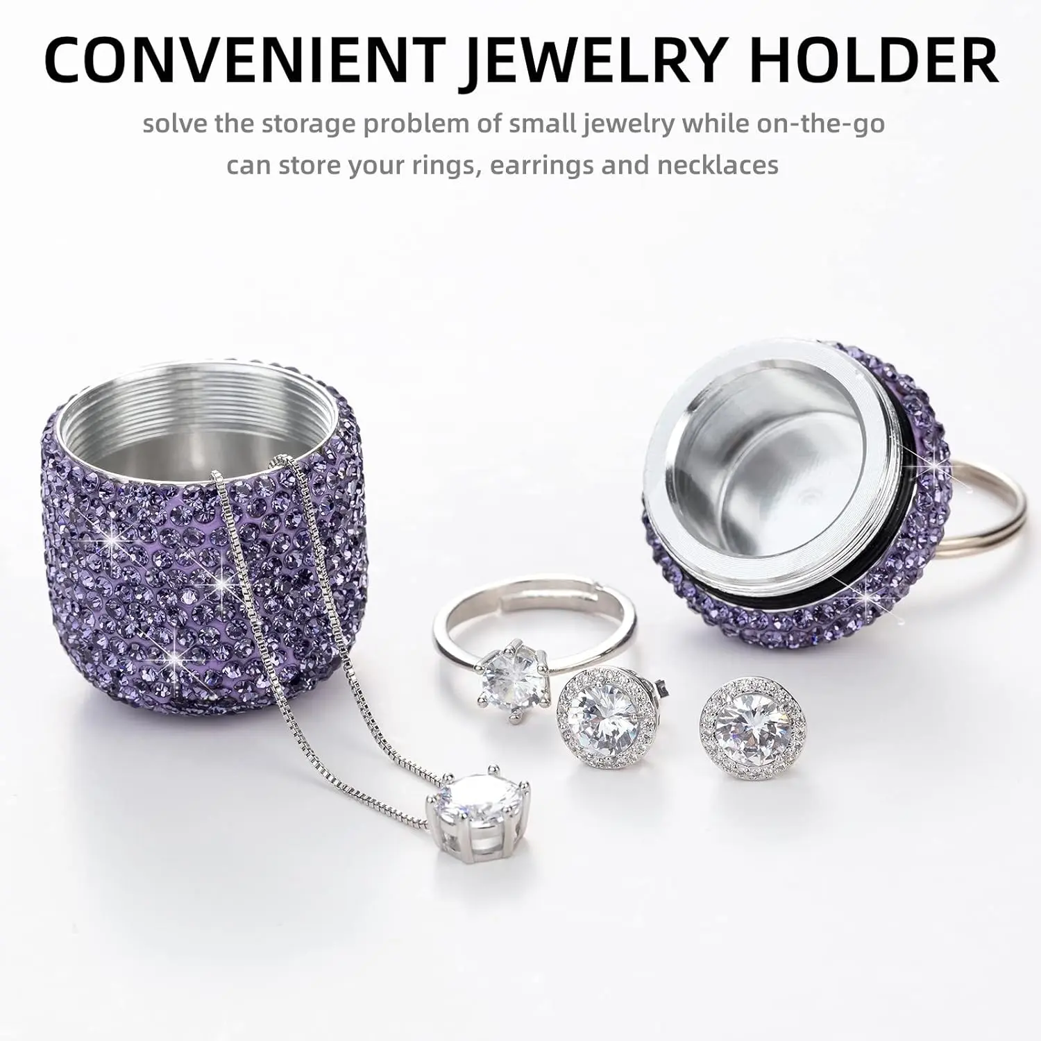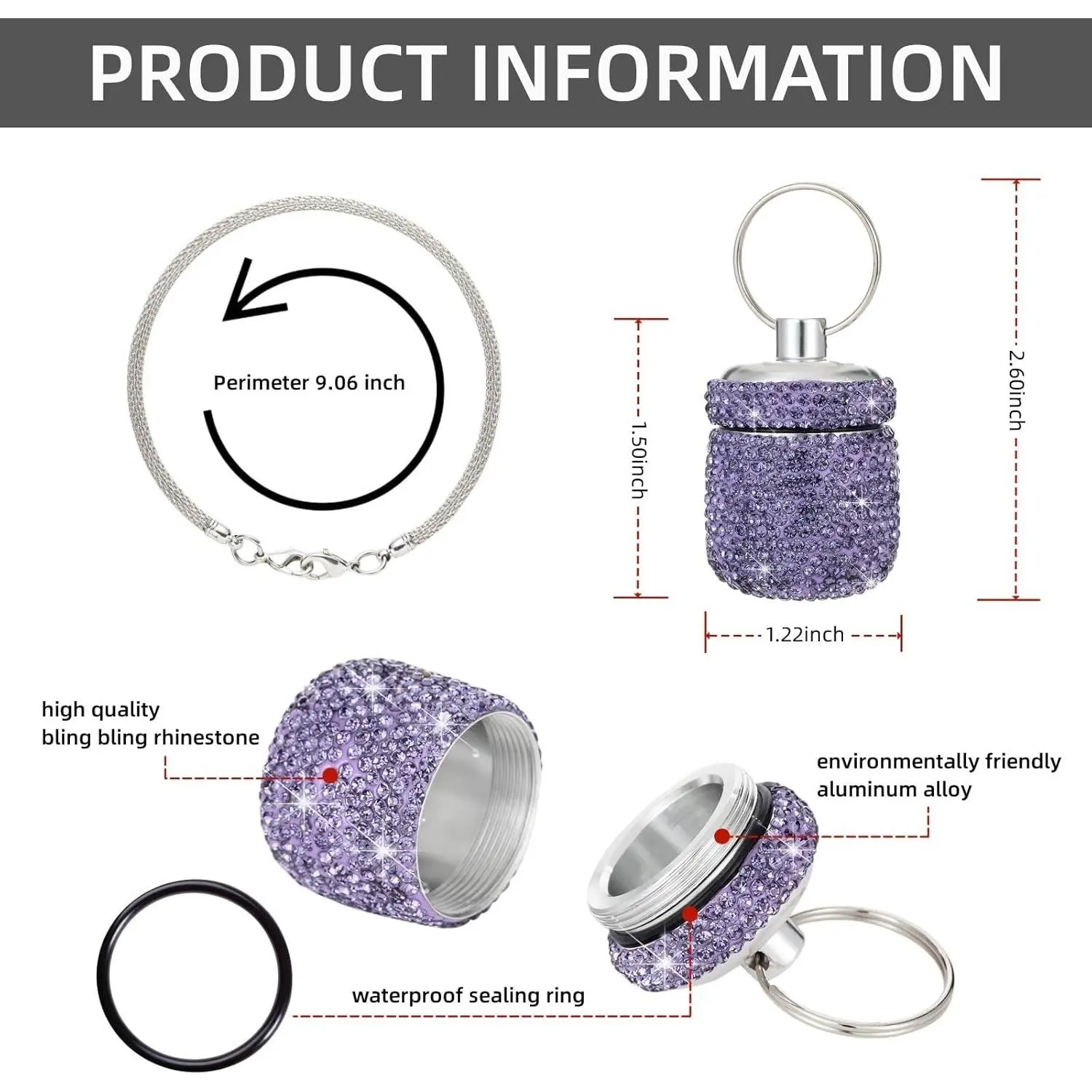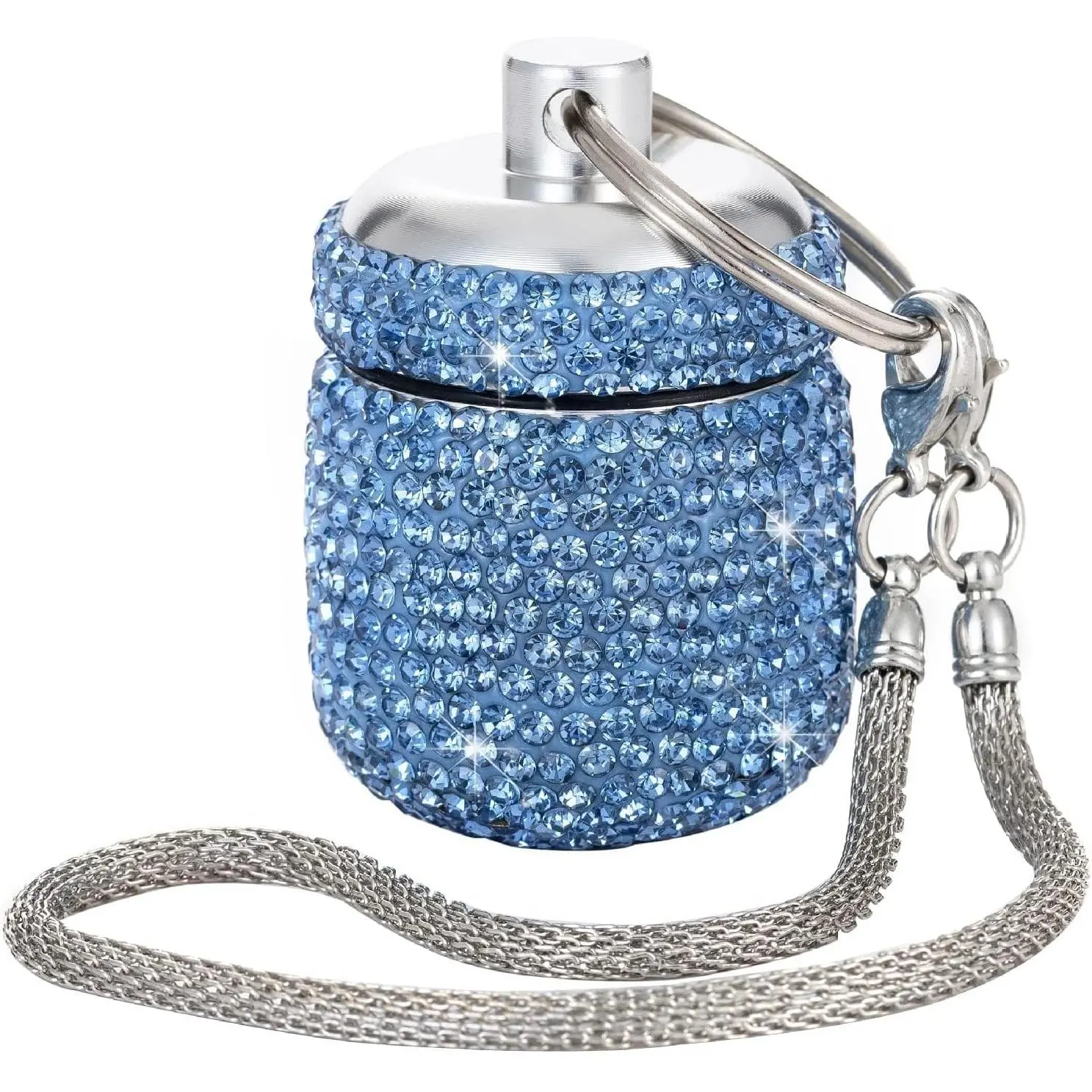 Keychain Pill Holder Bling Small Pill Box for Purse Portable Pill Case Organizer Cute Key Chain Pill Container Bottle for Capsule Vitamin Supplement