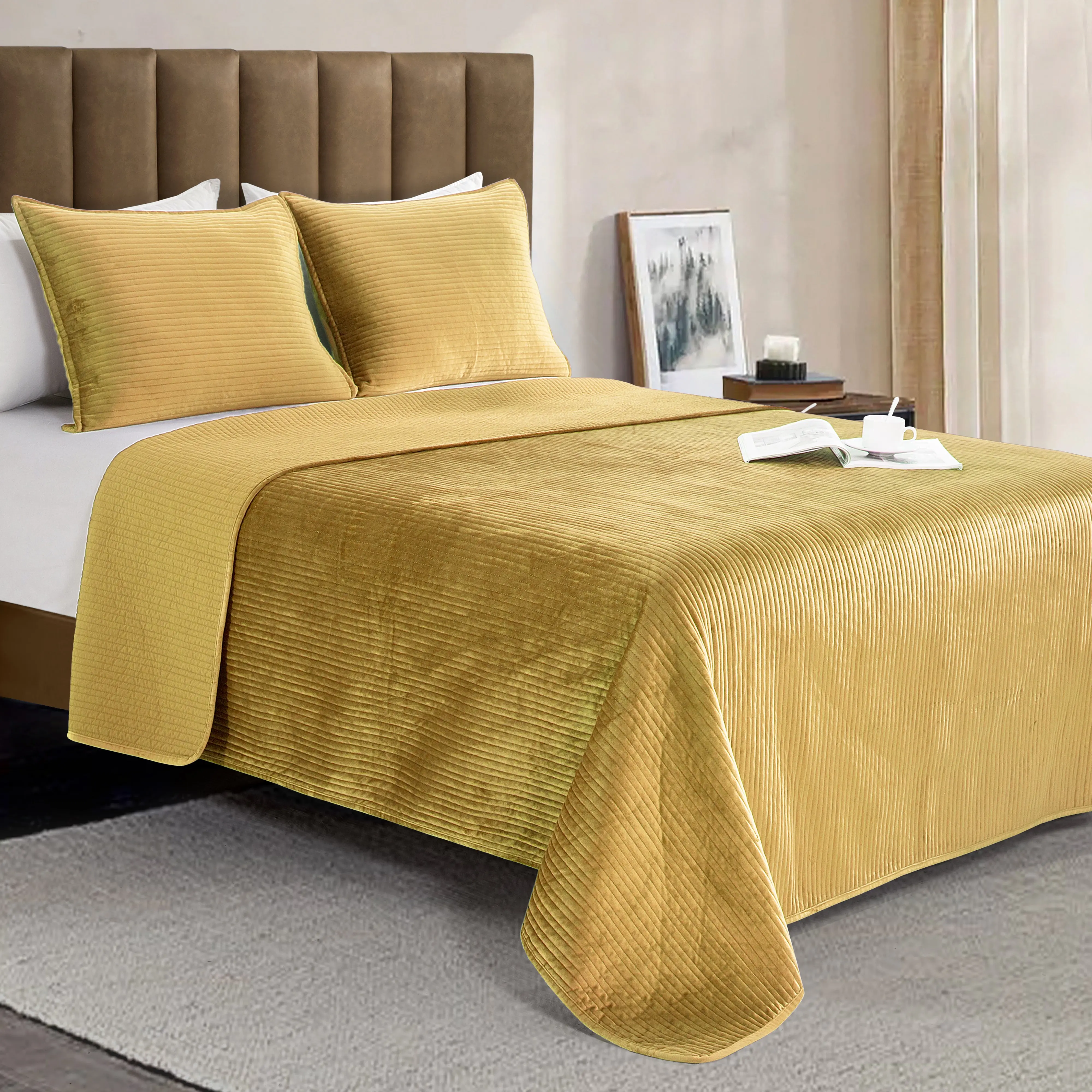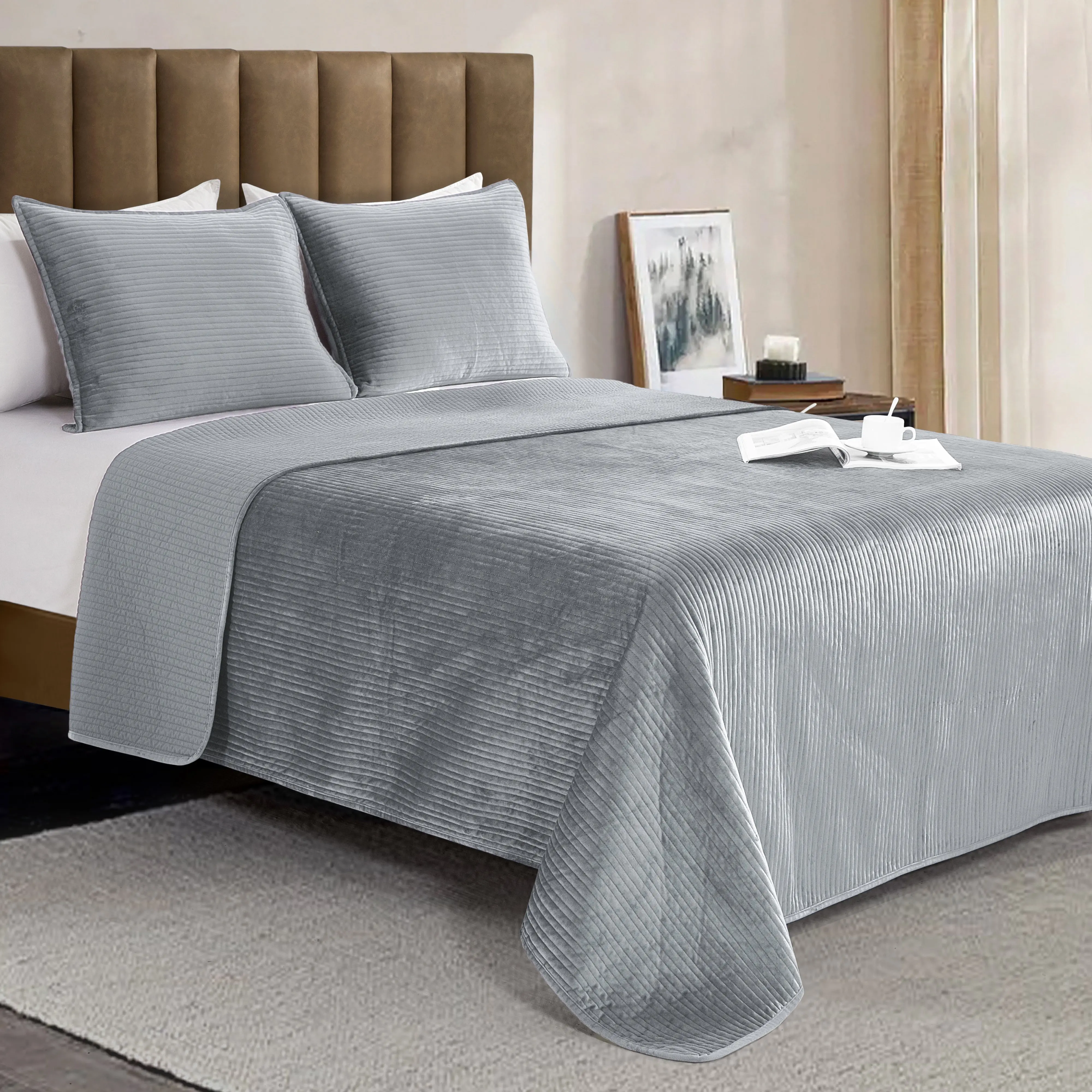 Elegant Comfort 3-Piece Velvet Corduroy Stripe Quilted Bedspread Coverlet Set