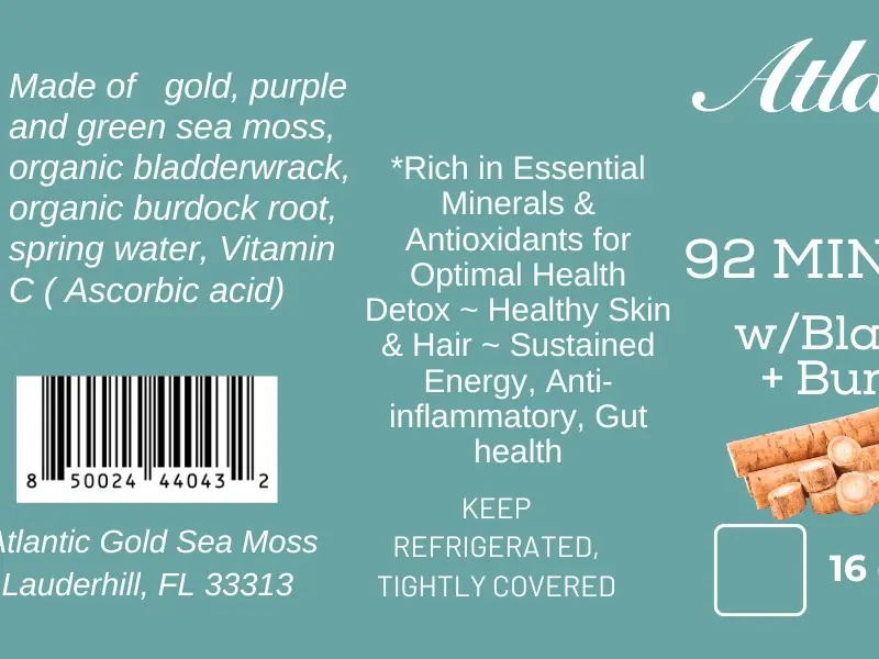 Experience the power of nature with our 92 Minerals Sea Moss Gel. It is made with Gold, Purple and Green sea moss, and infused with Bladderwrack and Burdock Root.