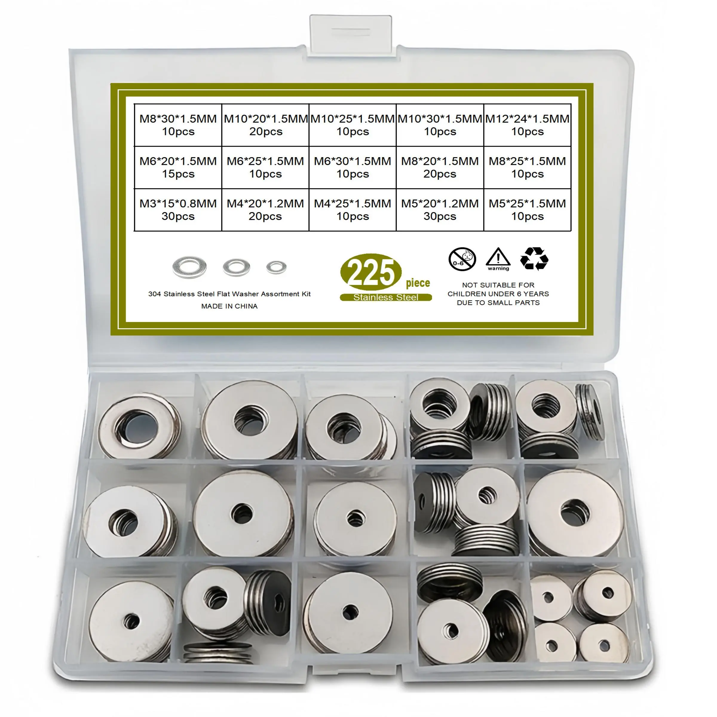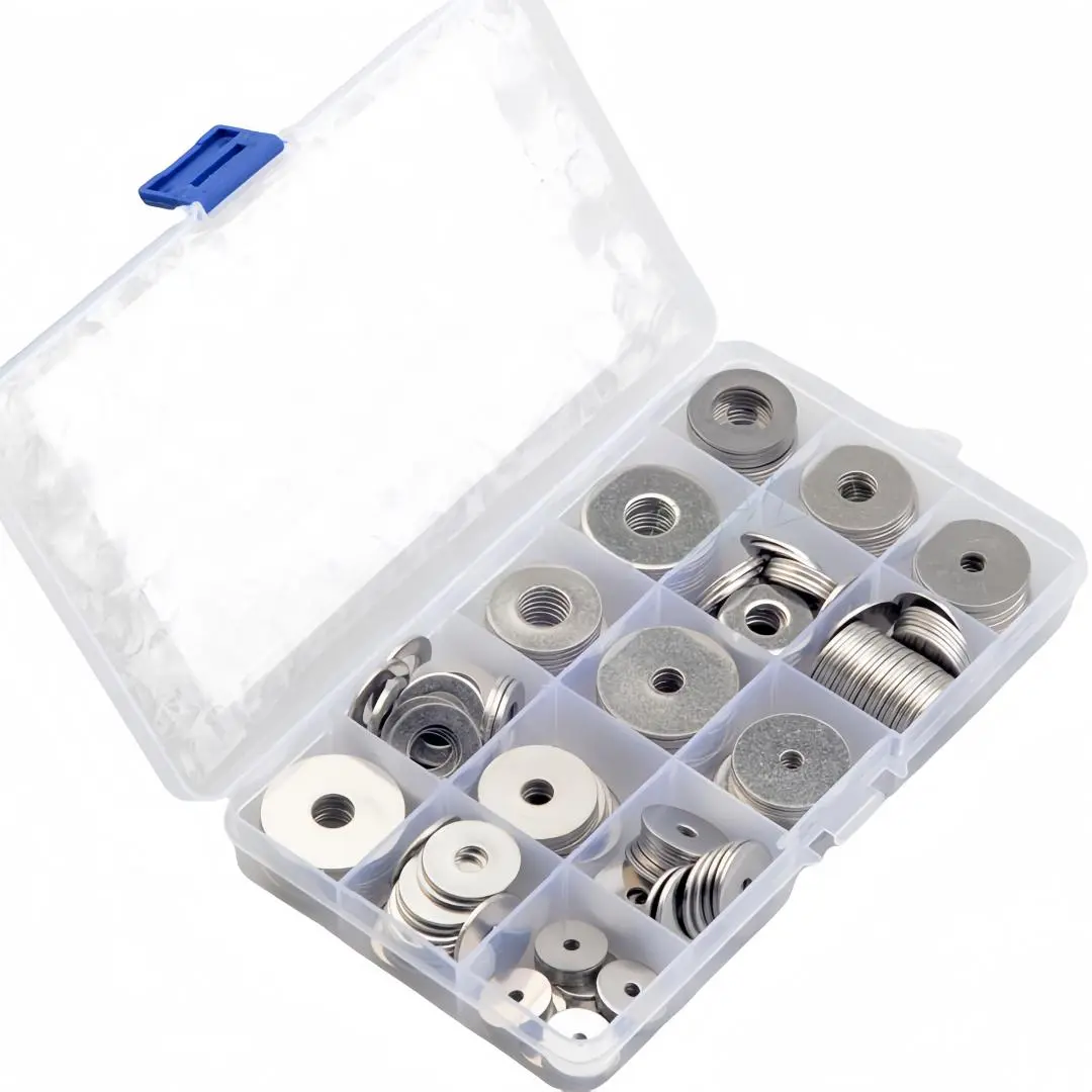 Stainless Steel Flat Washer, Mixed Size Flat Washer Set, Durable and Sturdy Flat Washer Assortment Kit for Home and Industrial Use, Heavy Duty