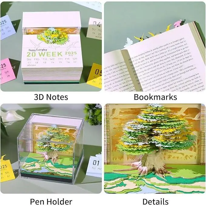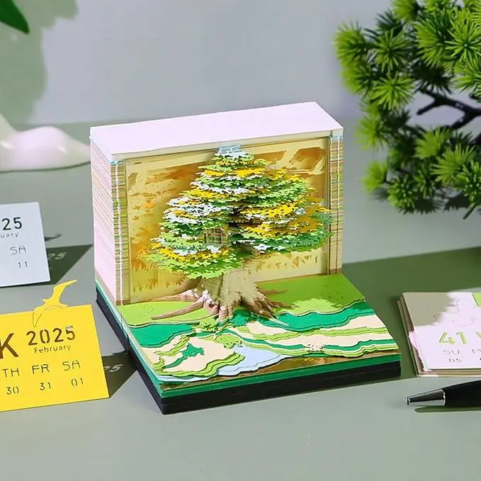 3D Art Calendar 2025,3D Memo Pad Creative Time Piece Calendar Magic Tree Rip Away Paper Carving Multi-color DIY Note