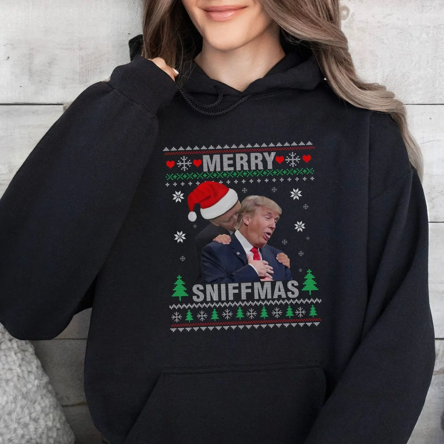 Funny Joe Biden Sniffing Trump Ugly Christmas Sweater, Trump Christmas Shirt, Joe Biden Ugly Christmas Hoodie