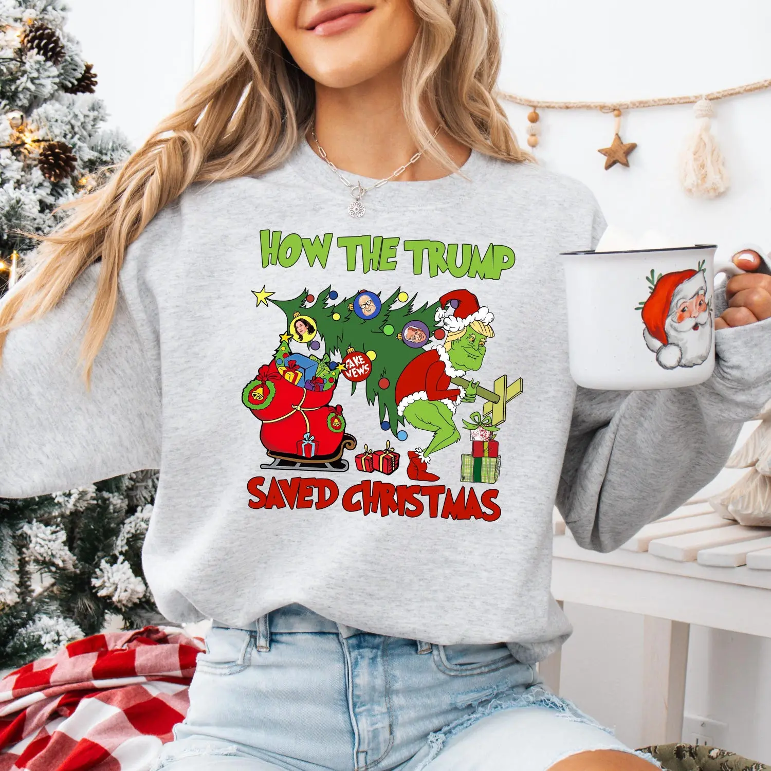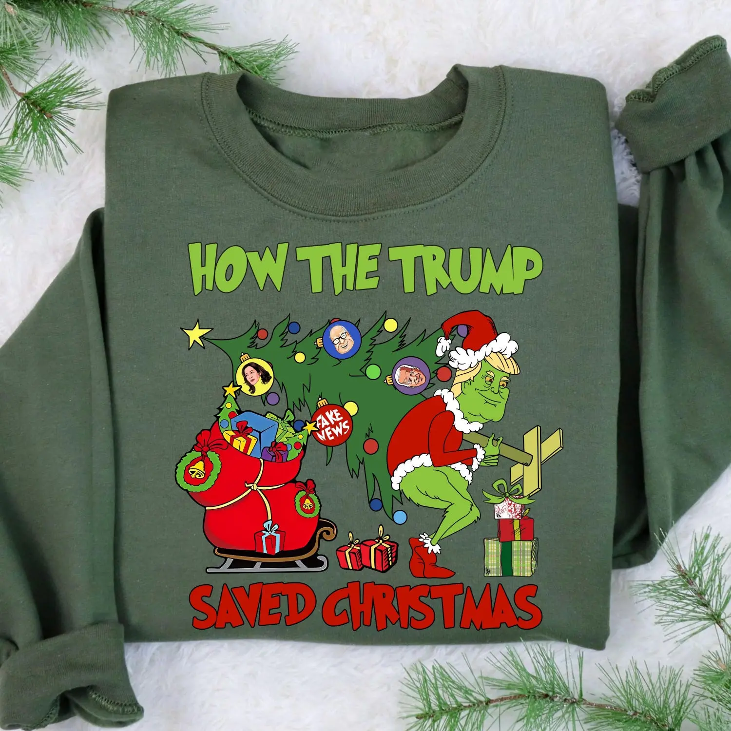 5. How The Trump Saved Christmas Sweatshirt, Funny Trump Christmas Sweater, Green Trump Hoodie, Funny Political Sweater, Trump Victory Hoodie
