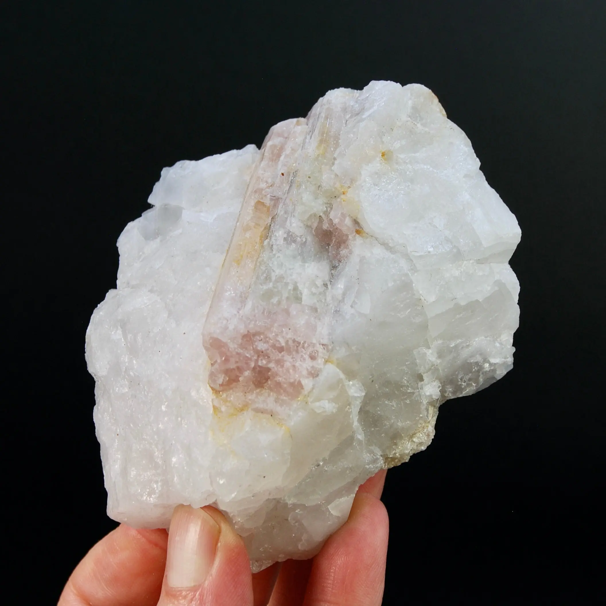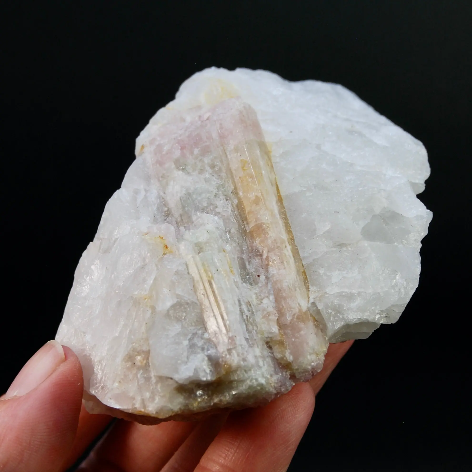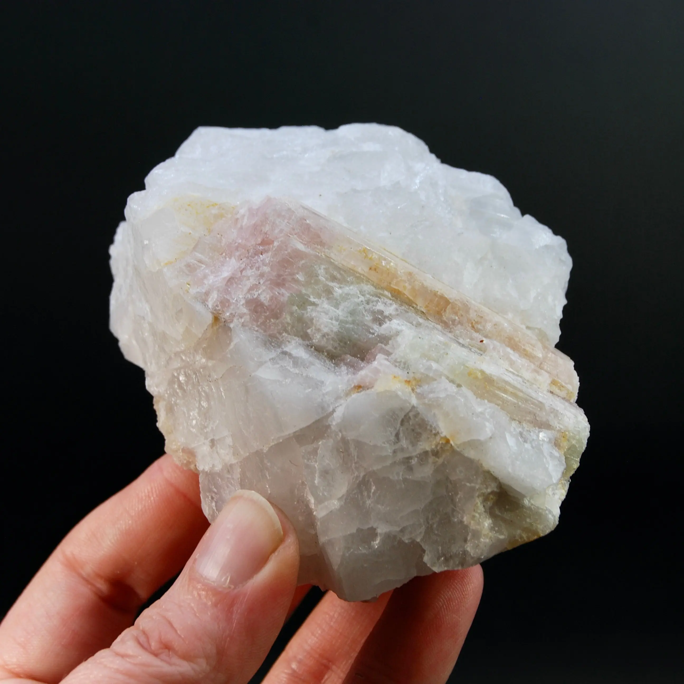3.8in 327g Raw Tricolor Tourmaline Lepidolite Crystal on Quartz Matrix, Brazil