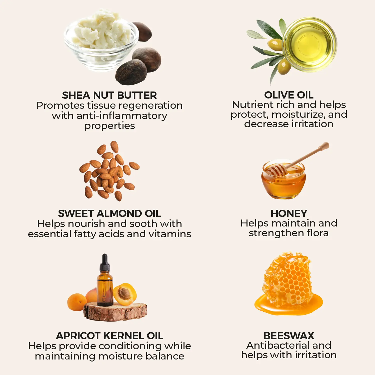 ·PROVIDES SUPPORT FOR FEMININE CARE: Harnesses the power of natural ingredients like Beeswax in a magical salve, providing holistic feminine care. A product for various needs such as itch relief and lubrication. For dryness, discomfort, and menopausal symptoms such as Vaginal Atrophy.