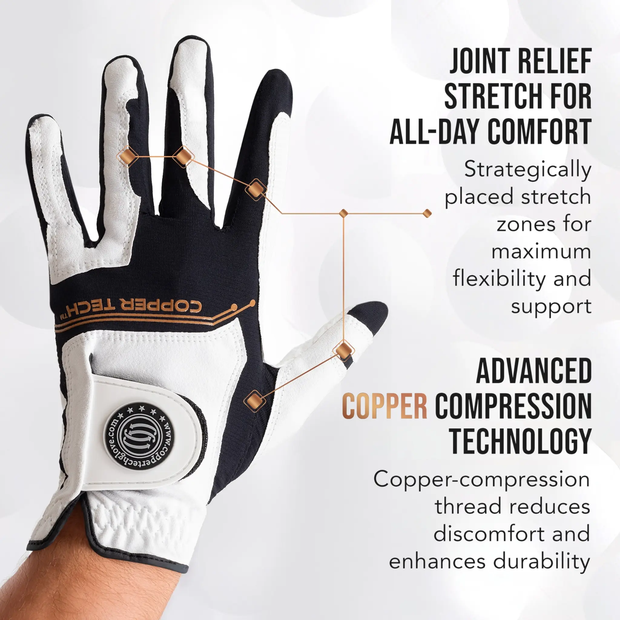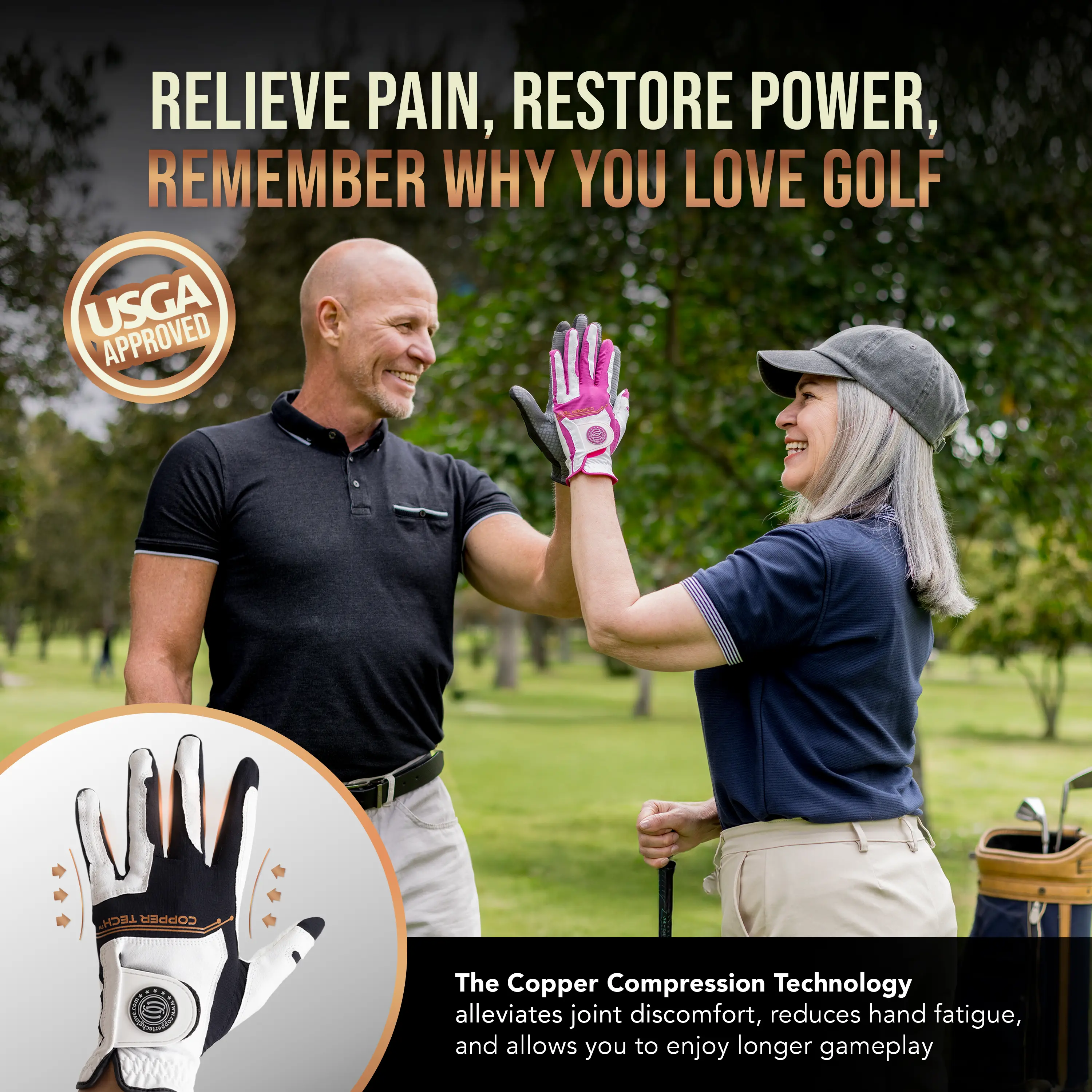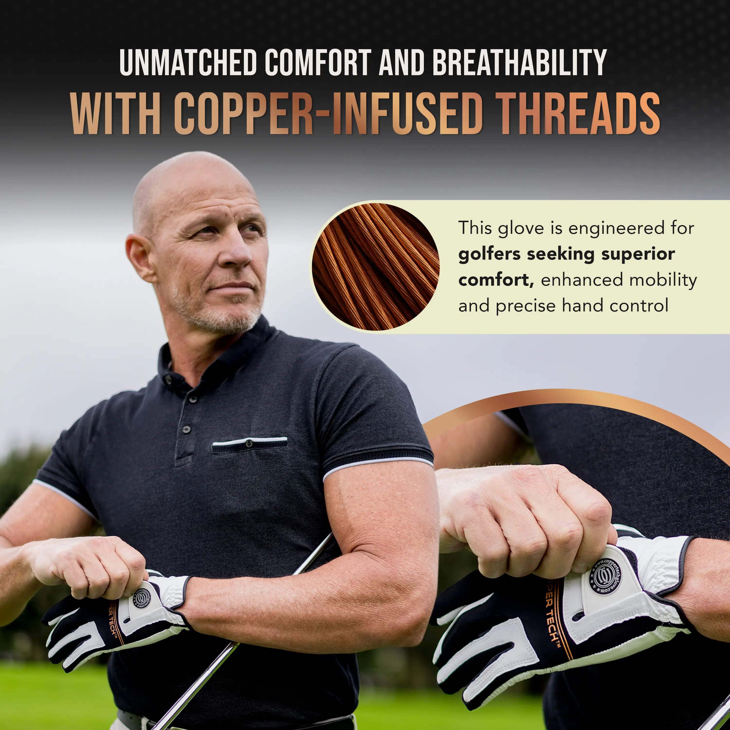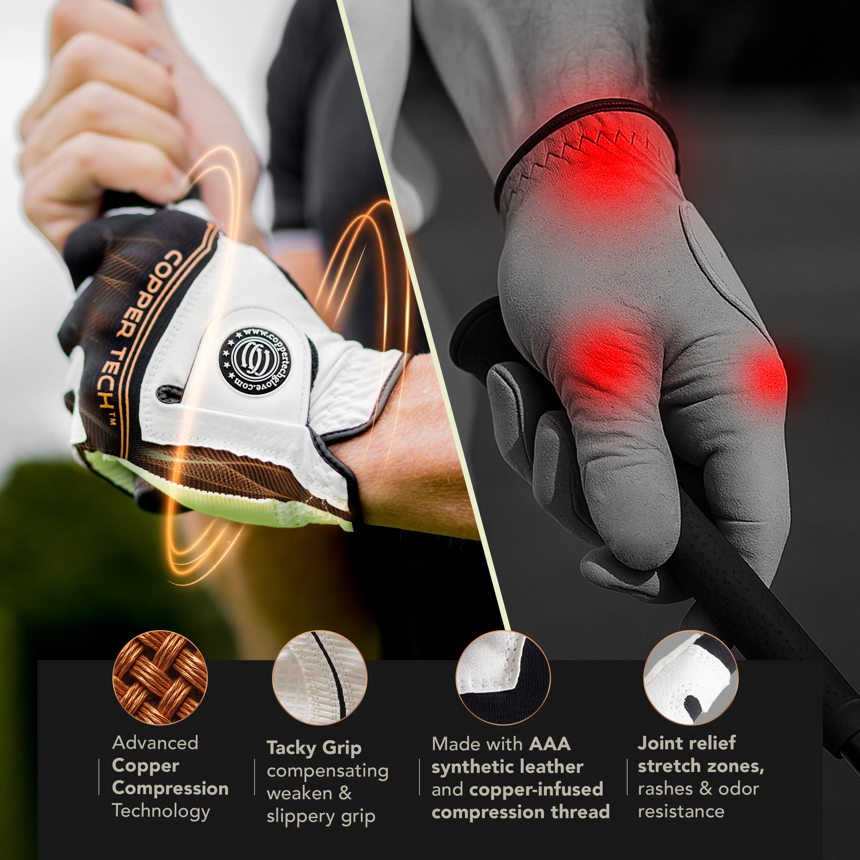 I like the glove's material - somewhat tacky which helps to grip the club. Too early to tell if the copper helps with muscle strain. I only received the gloves about a week ago and used one for one round of golf. The weather has been extremely hot here in the Southeast - my hands perspire a lot and I noted the glove did not breath as well as others. I'm sure the gloves will be great as soon as the weather cools off.
