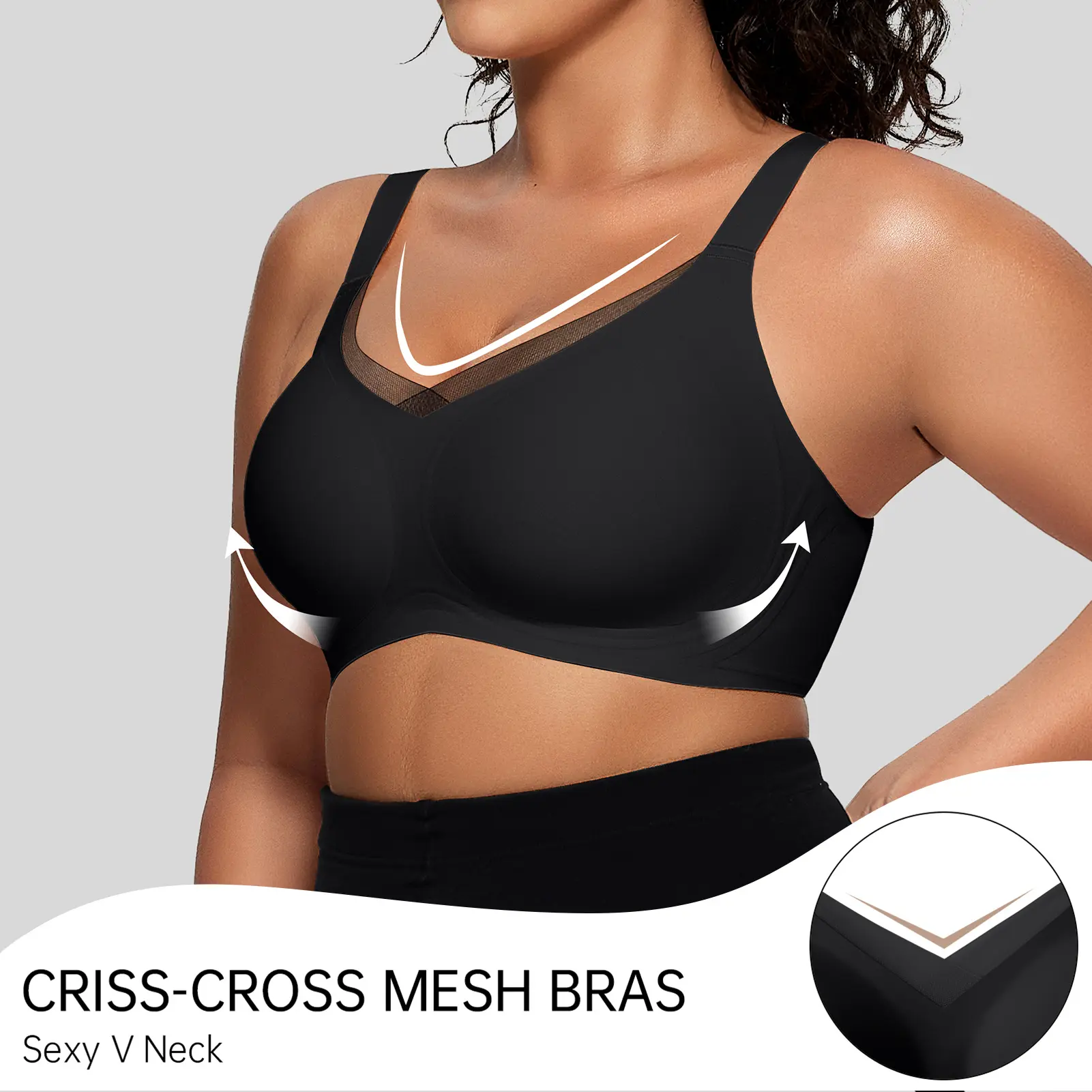 V-Neck & Cross Lace Design – Sweet, sexy, and secure! The lace detail reduces visible lines under clothes, perfect for any outfit.