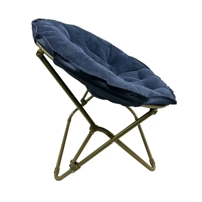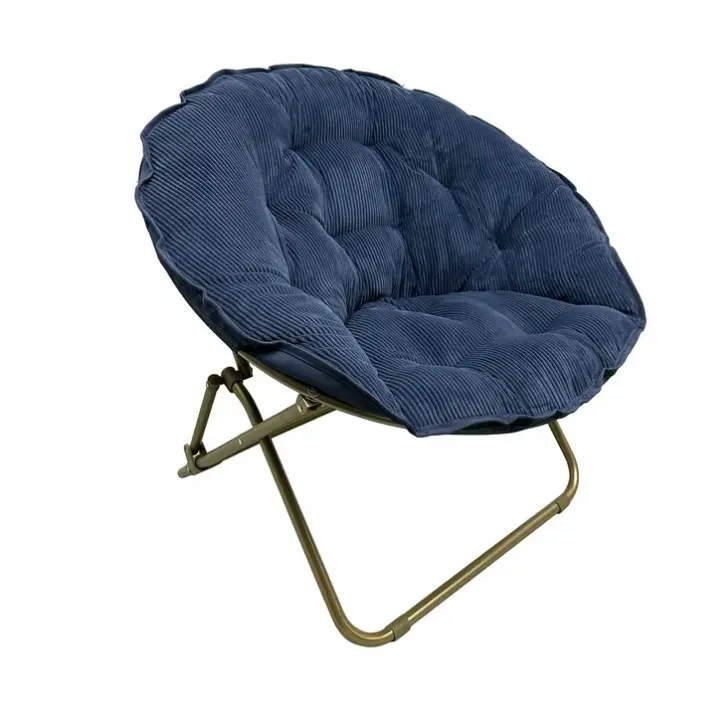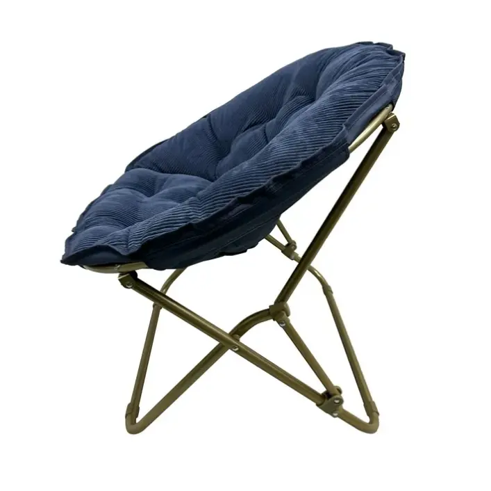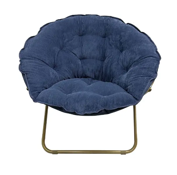 Product Specification: Corduroy Saucer Chair with Gold Legs, Washed Indigo