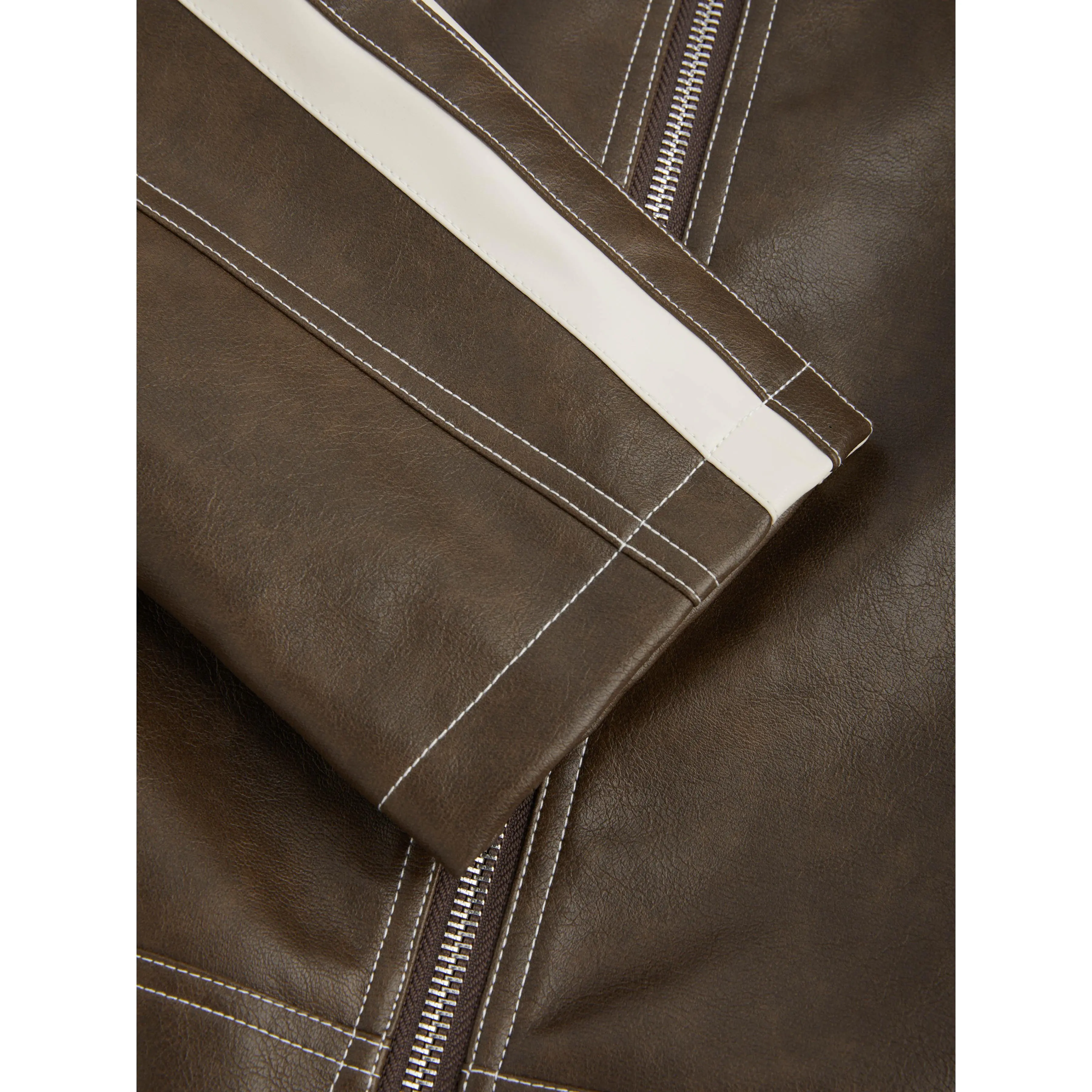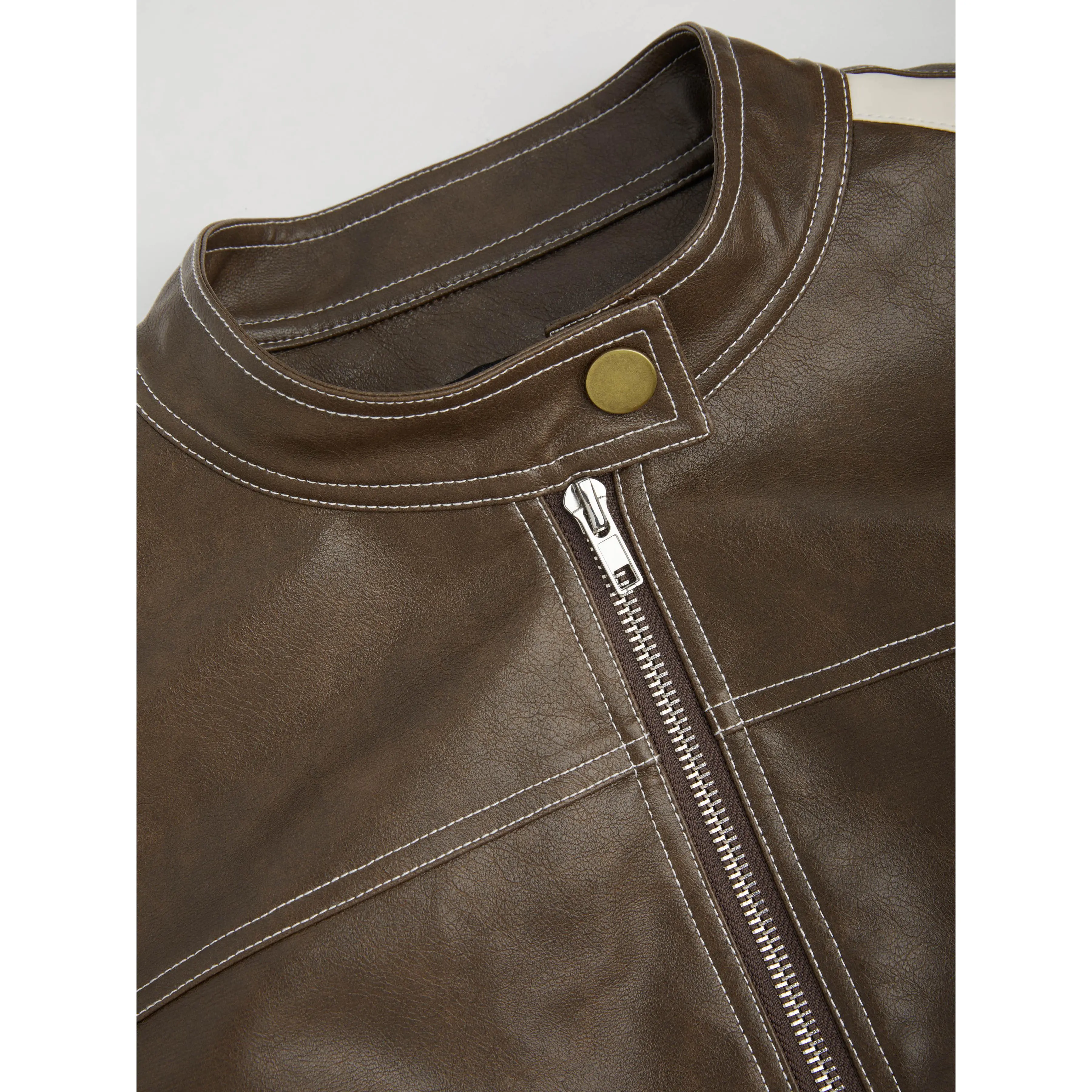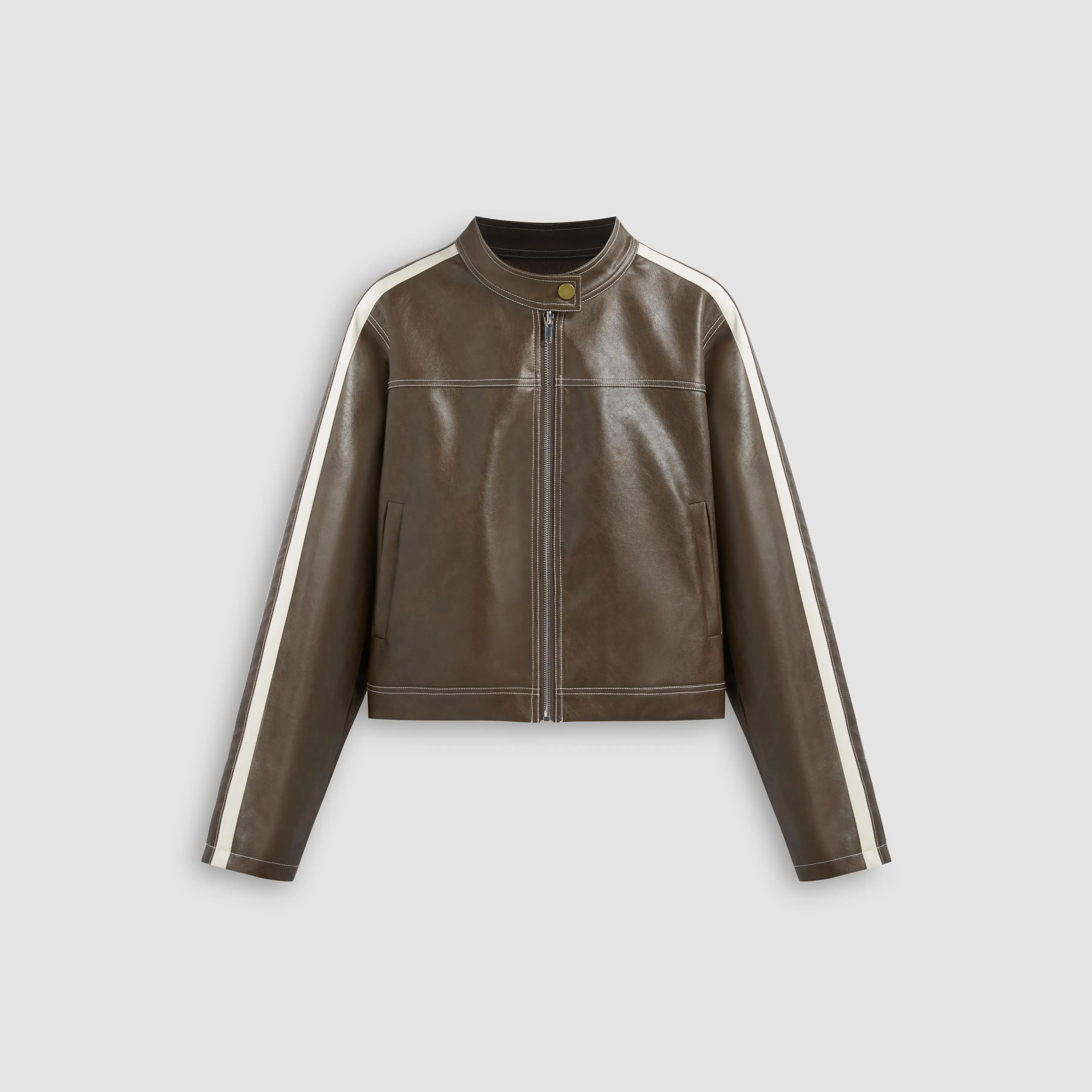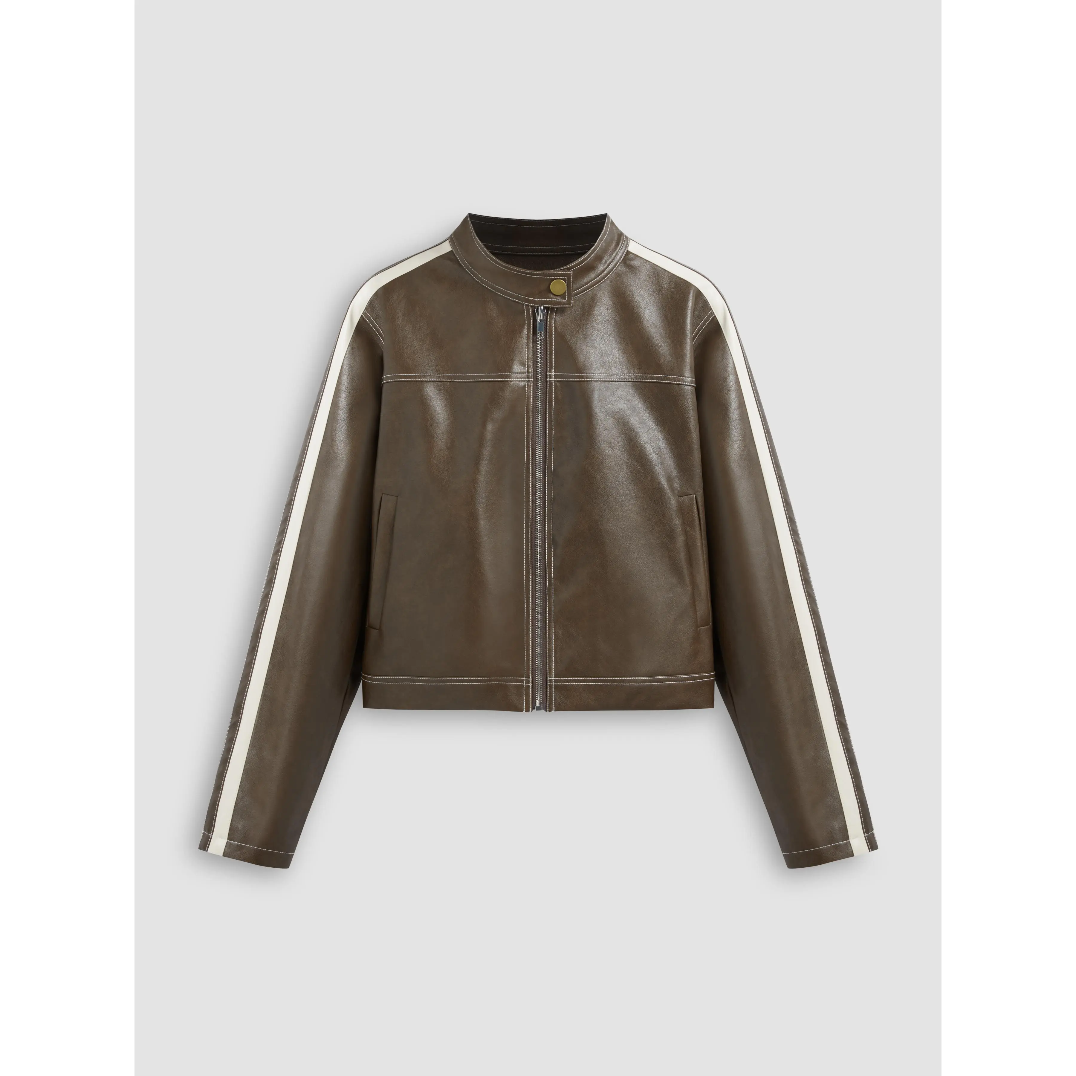 5. Cider [size 0-10] Faux Leather Stand Collar Side Stripe Pocket Zipper Jacket